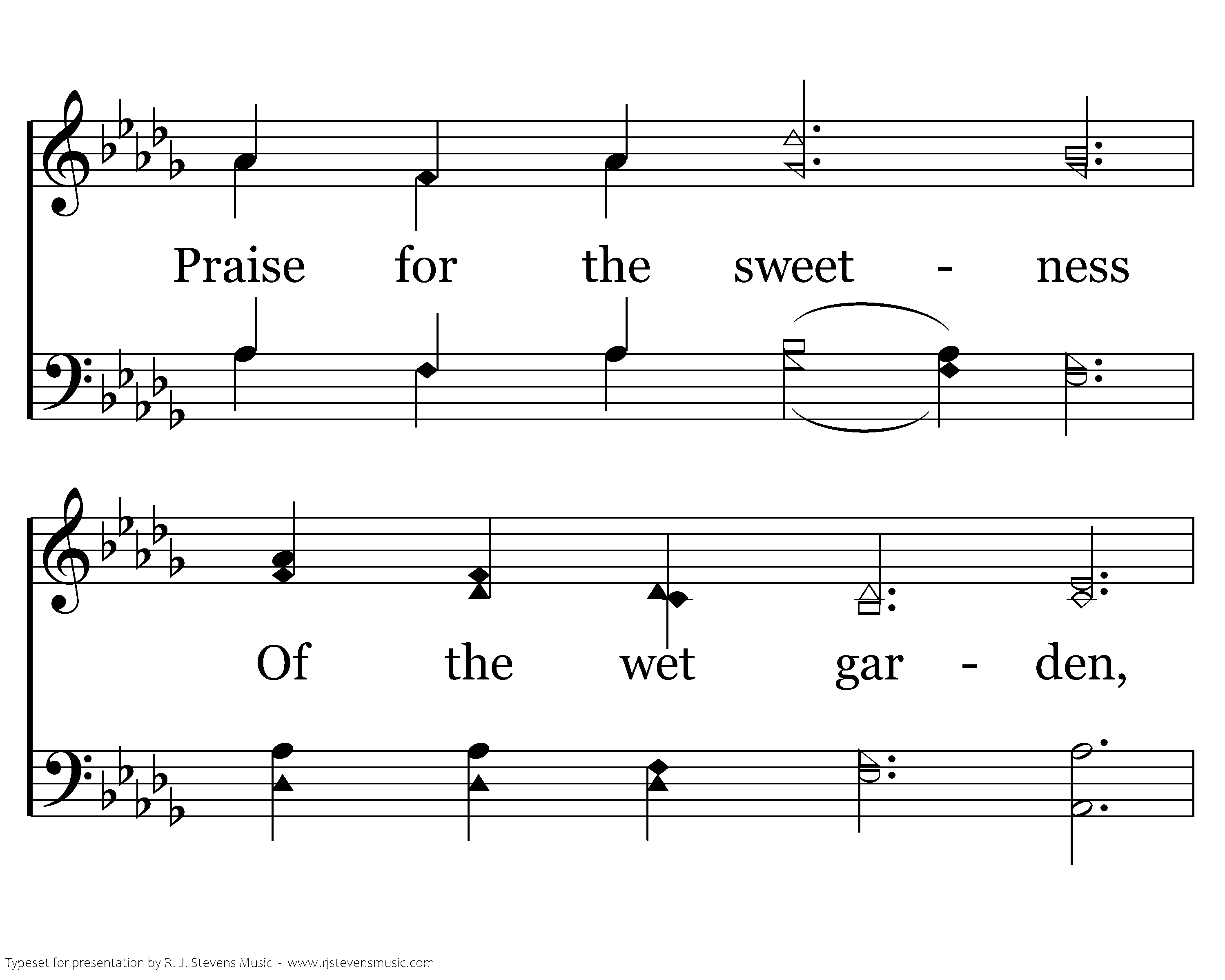 Sweet the rain's new fall Sunlit from heaven, Like the first dewfall On the first grass. Praise for the sweetness Of the wet garden, Sprung in completeness Where His feet pass.