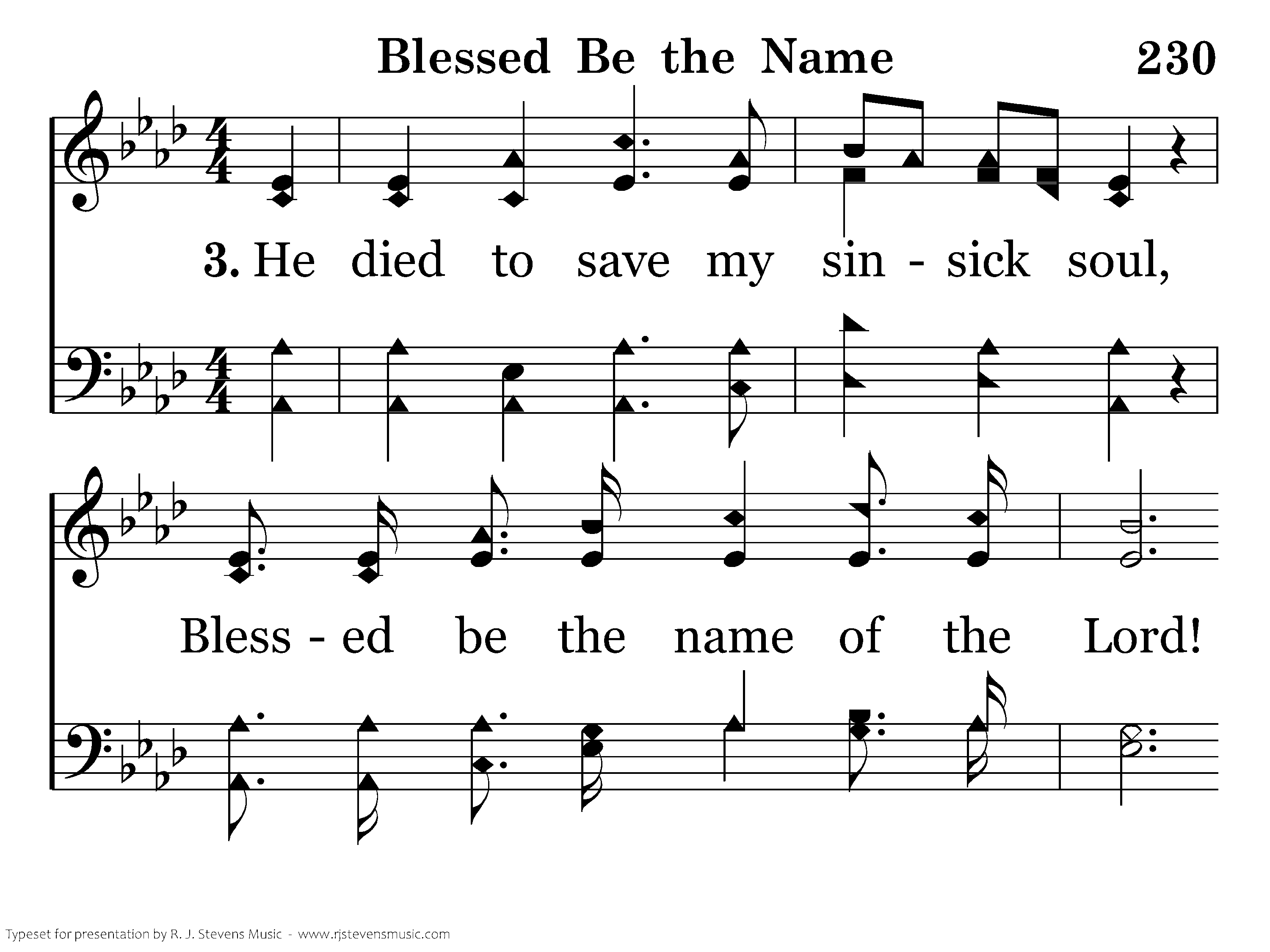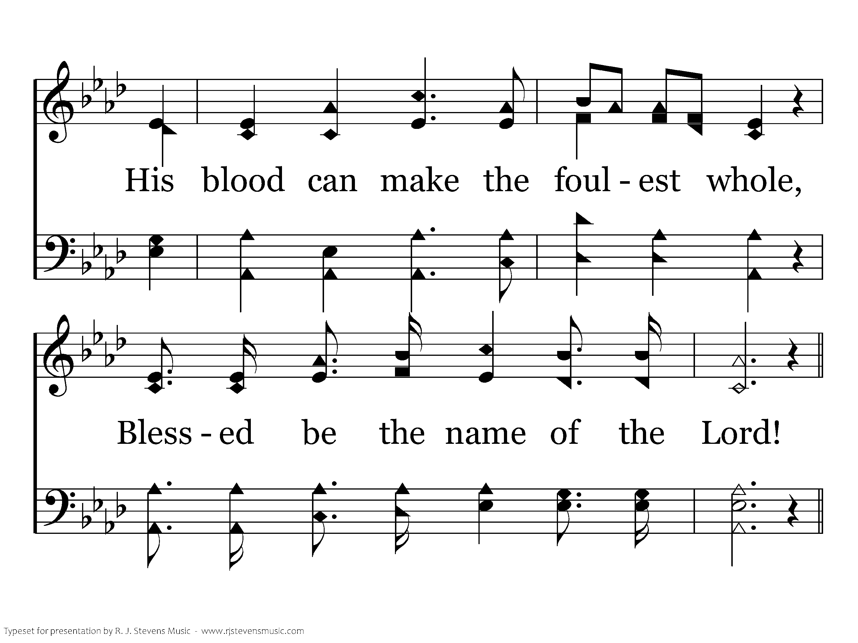 He died to save my sinsick soul, Blessed be the name of the Lord! His blood can make the foulest whole, Blessed be the name of the Lord!