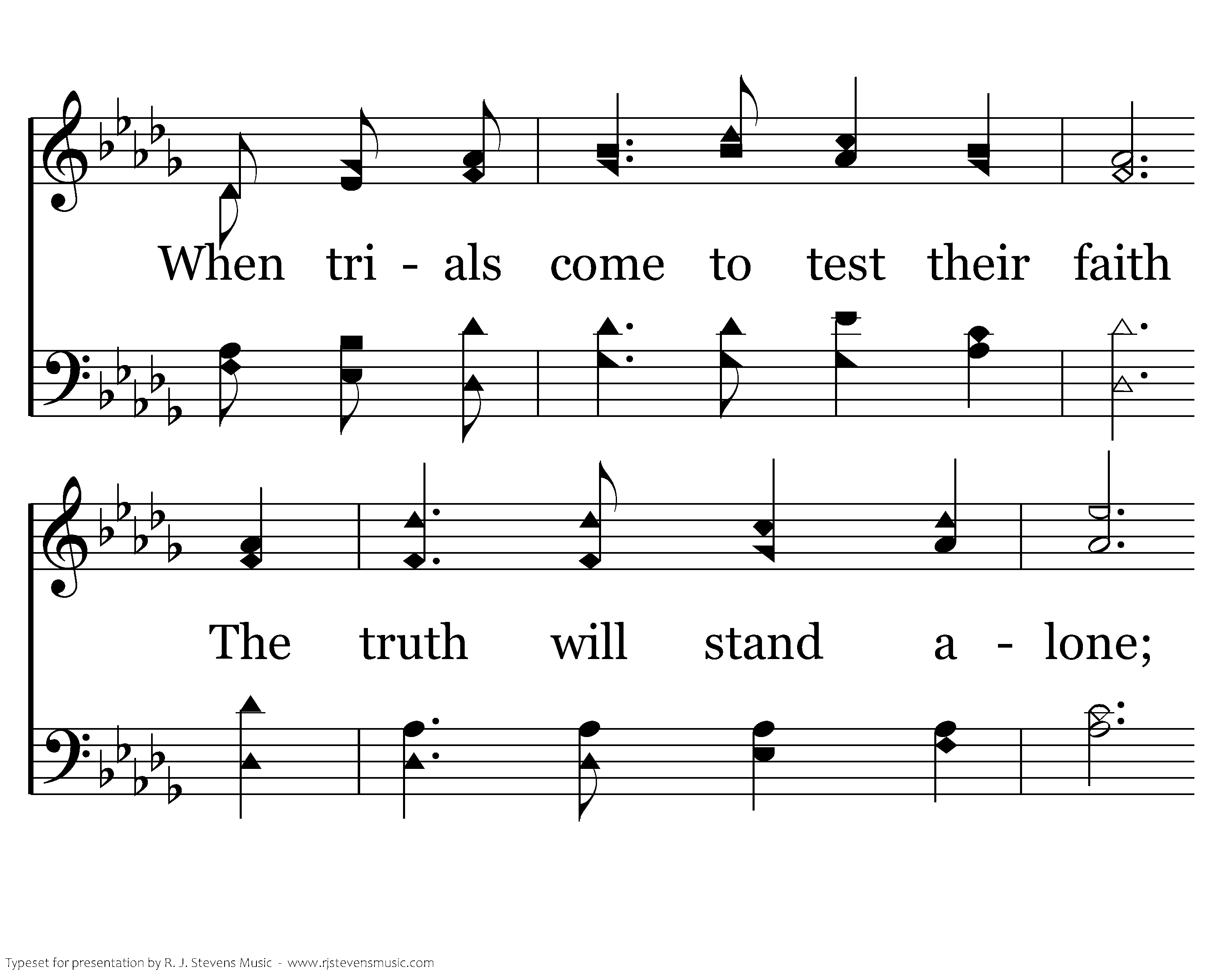 We train our young to know God's word, And teach them as they grow; To search the scriptures day by day For precepts they must know. When know. trials come to test their trials come to test their faith The truth will stand alone; Their hearts and minds will grow into A faith to call their own.