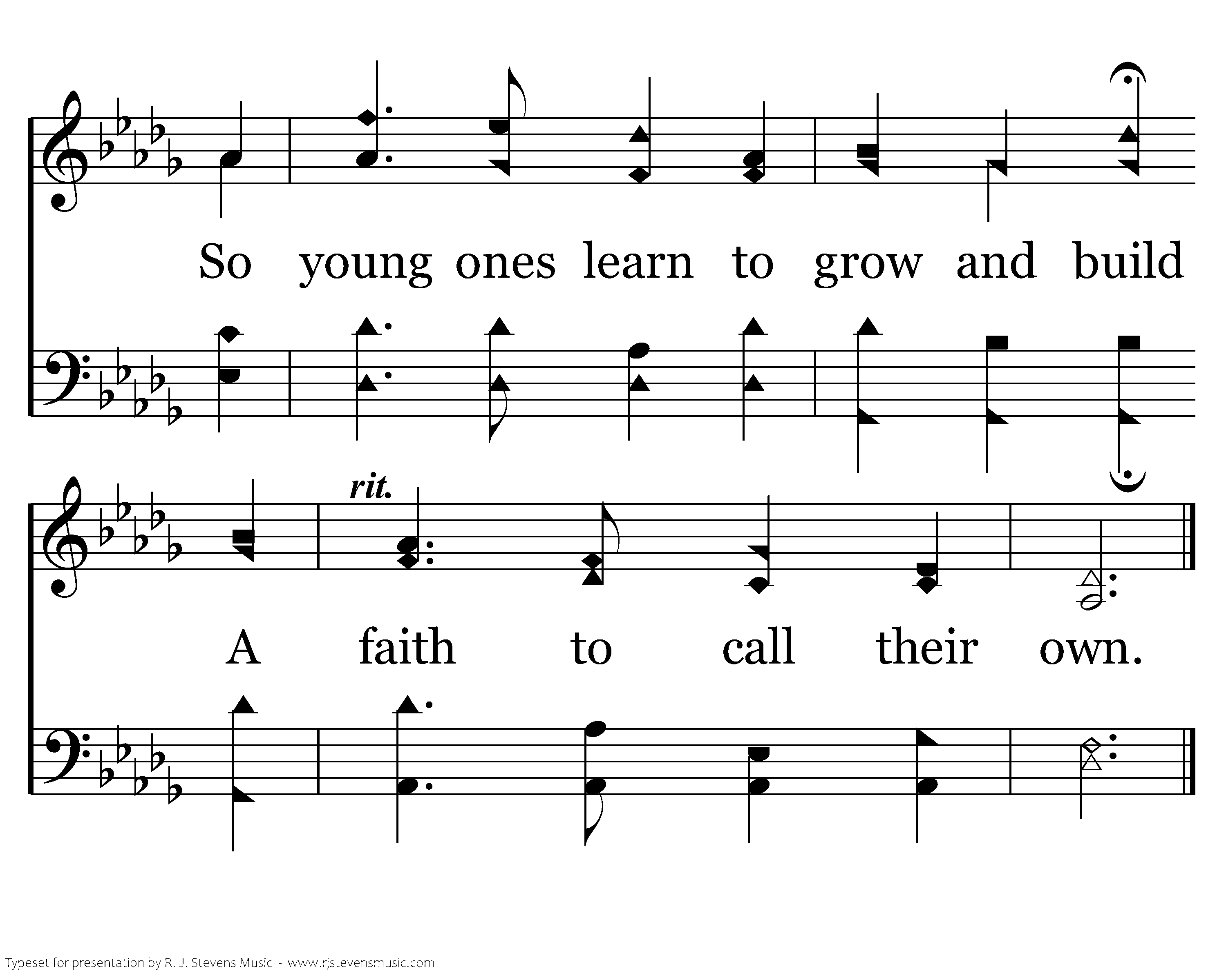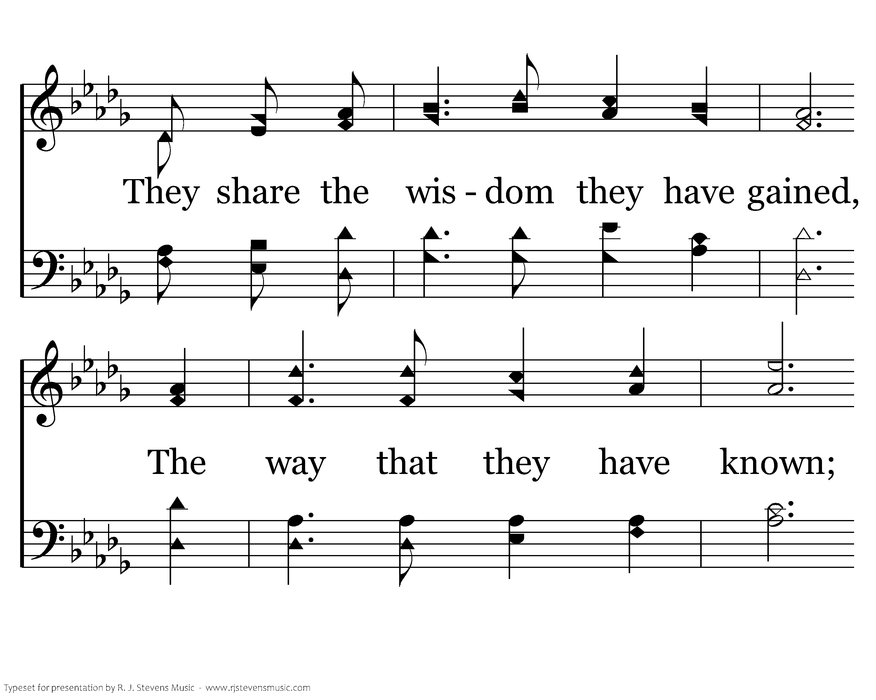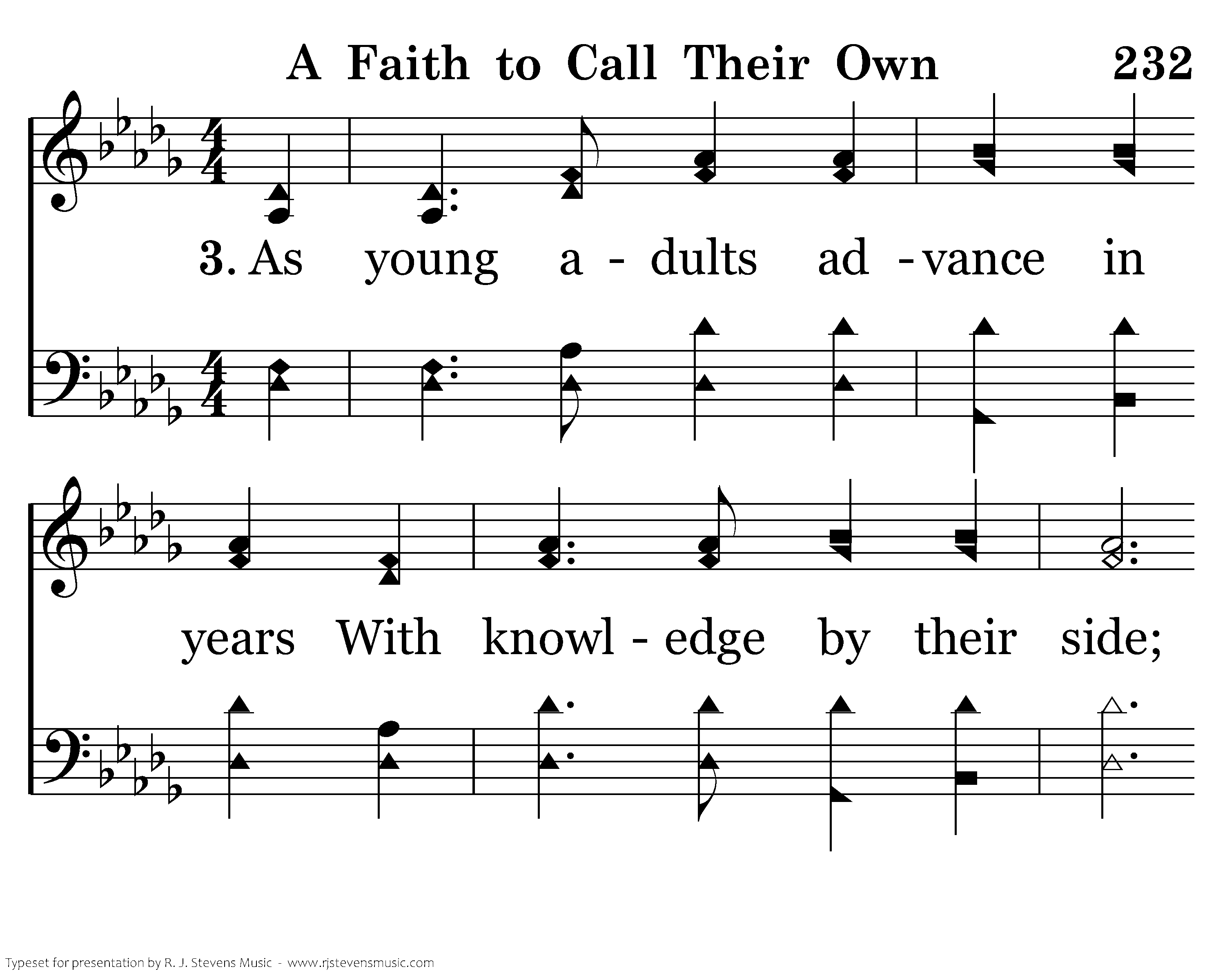 As young adults advance in years With knowledge by their side; They teach the young to know their God, For Him to be their Guide. They Guide. share the wisdom they have share the wisdom they have gained, The way that they have known; So young ones learn to grow and build A faith to call their own.