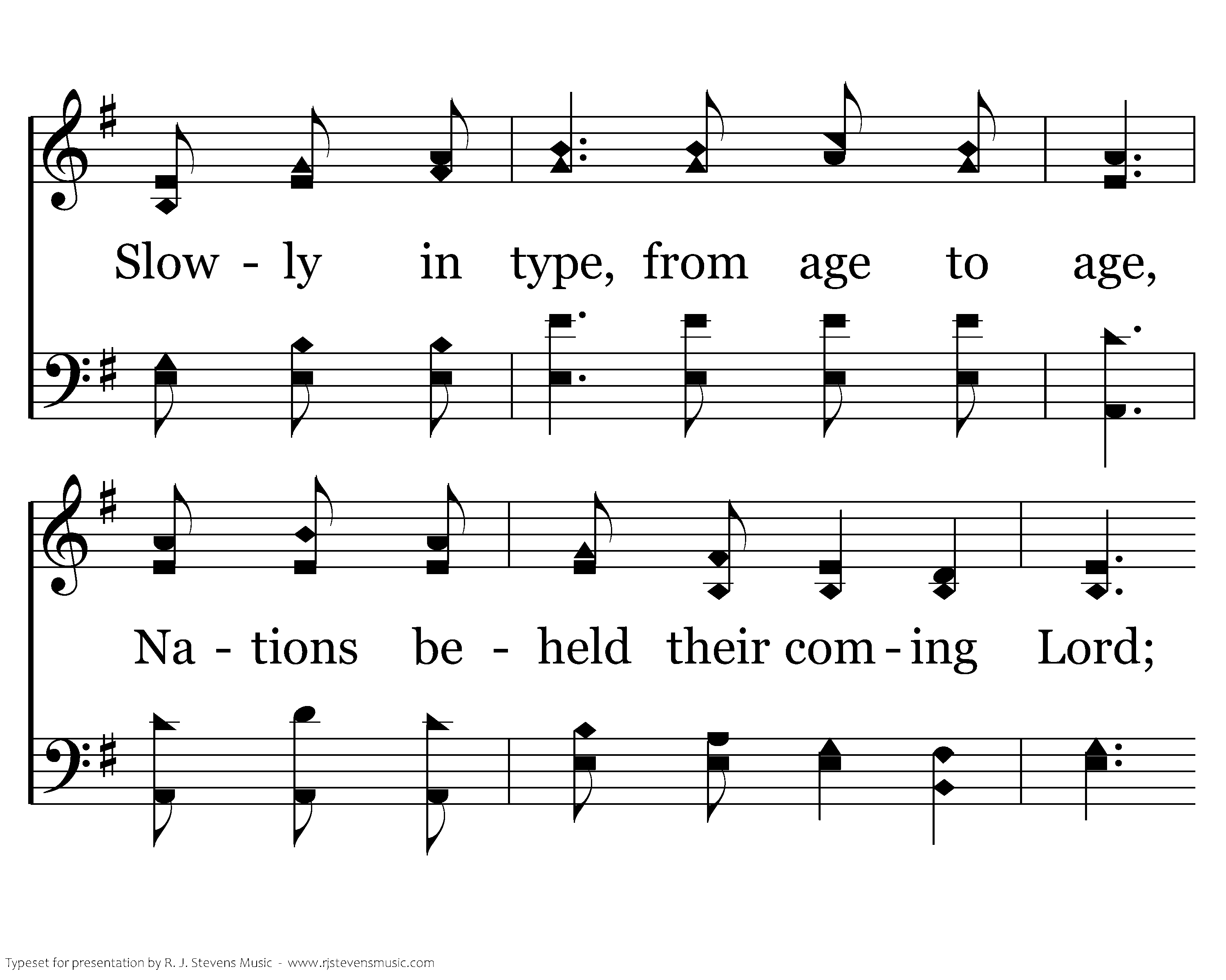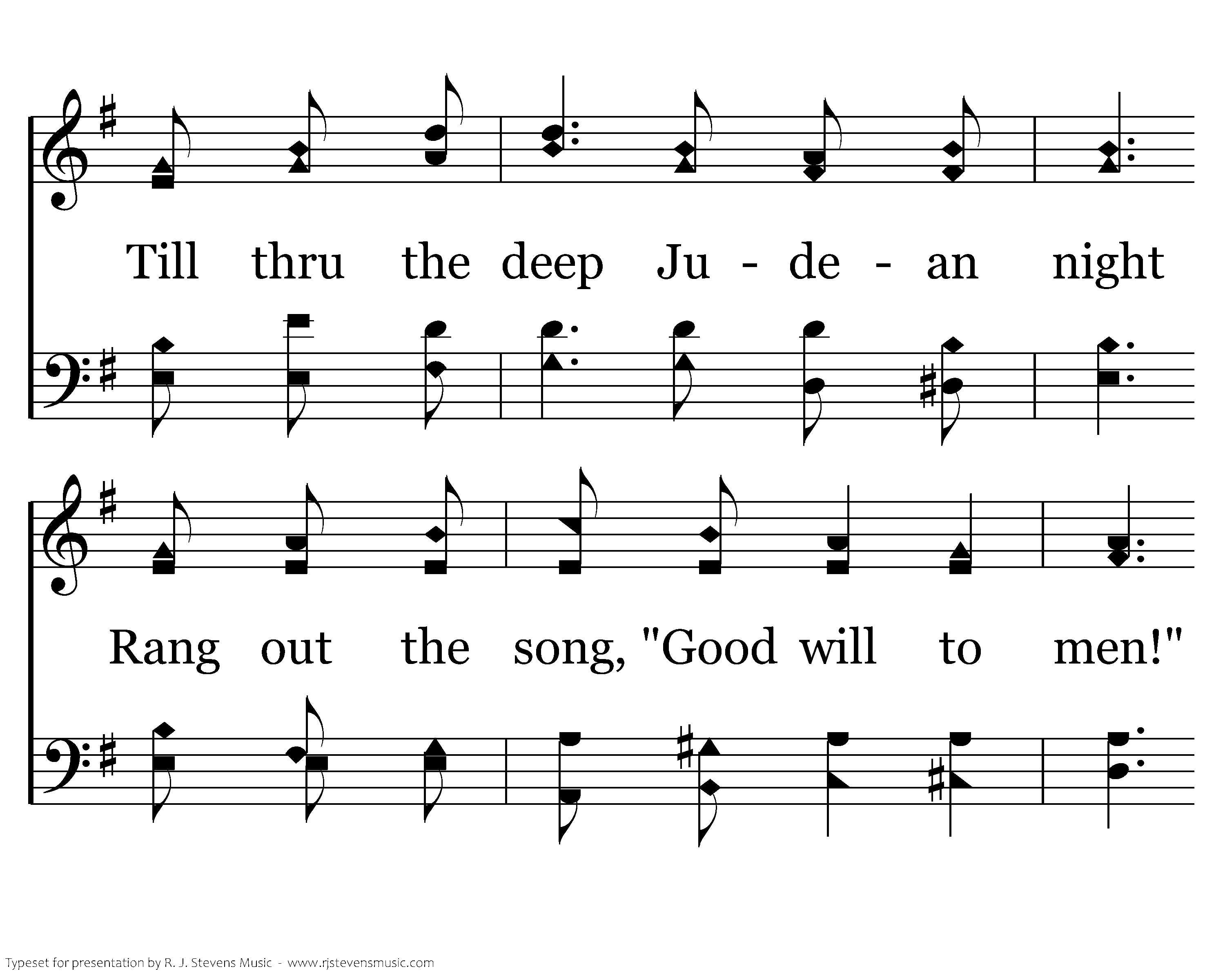 Deep in the prophet's sa-cred page, Grand in the Spiritgiven word, Slowly in type, from age to age, Nations beheld their coming Lord; Till thro' the deep Judean night Rang out the song, "Good will to men! "Hymned by the firstborn sons of light, Reechoed now, "Good will!" Amen!