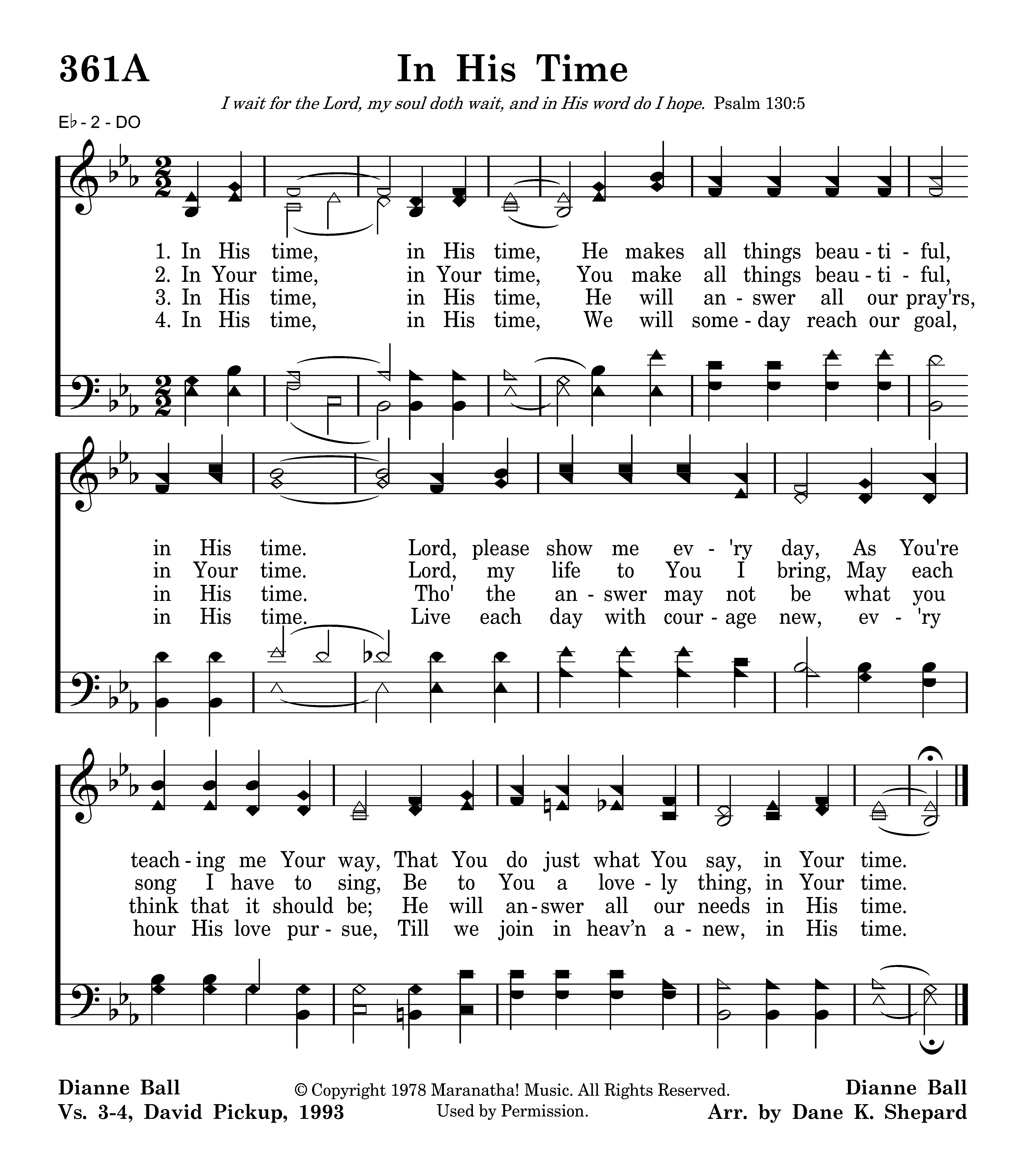 In His time, in His time, he makes all things beautiful, in His time. Lord, please show me ev'ry day, As You're teaching me Your way, That You do just what You say, in Your time.