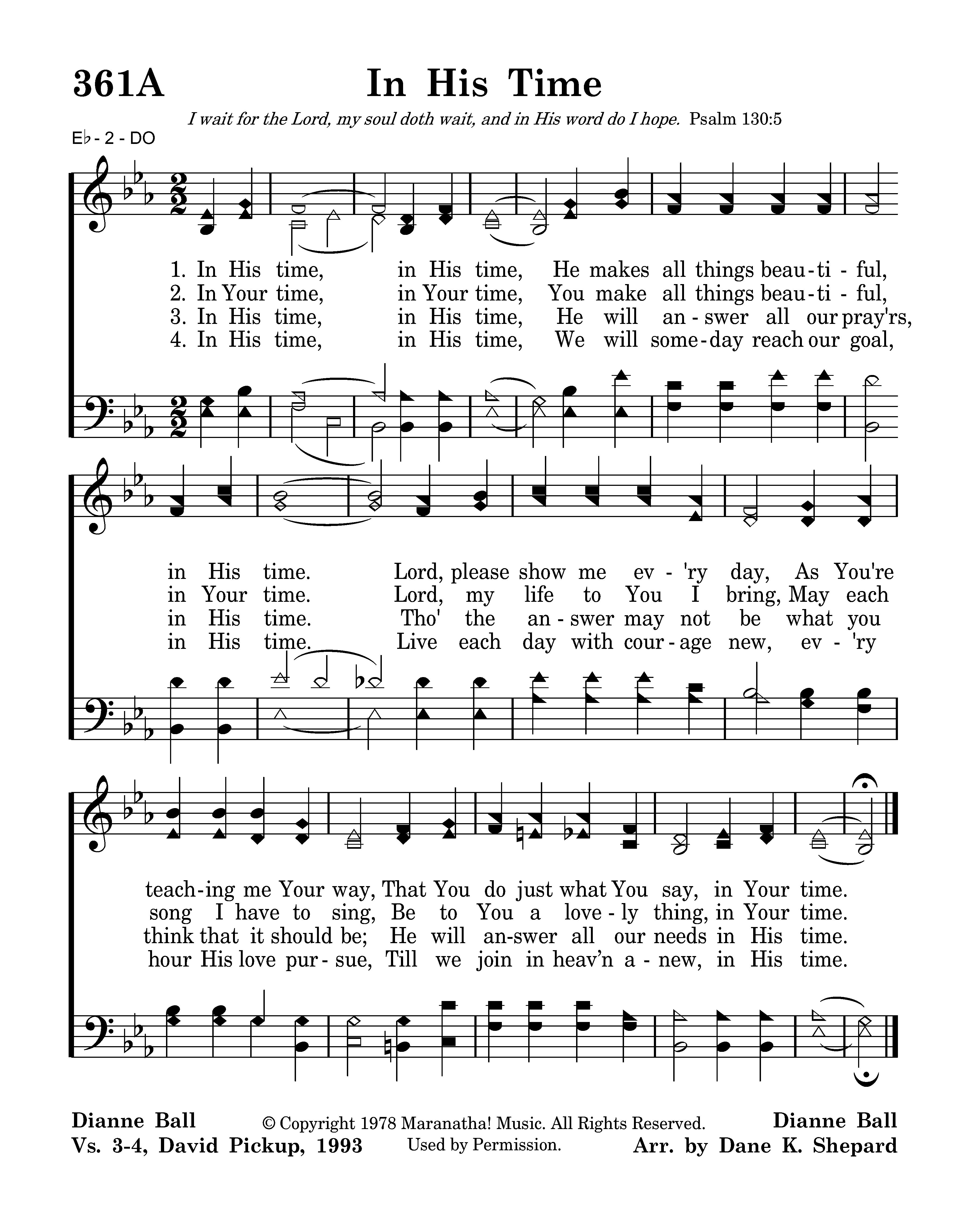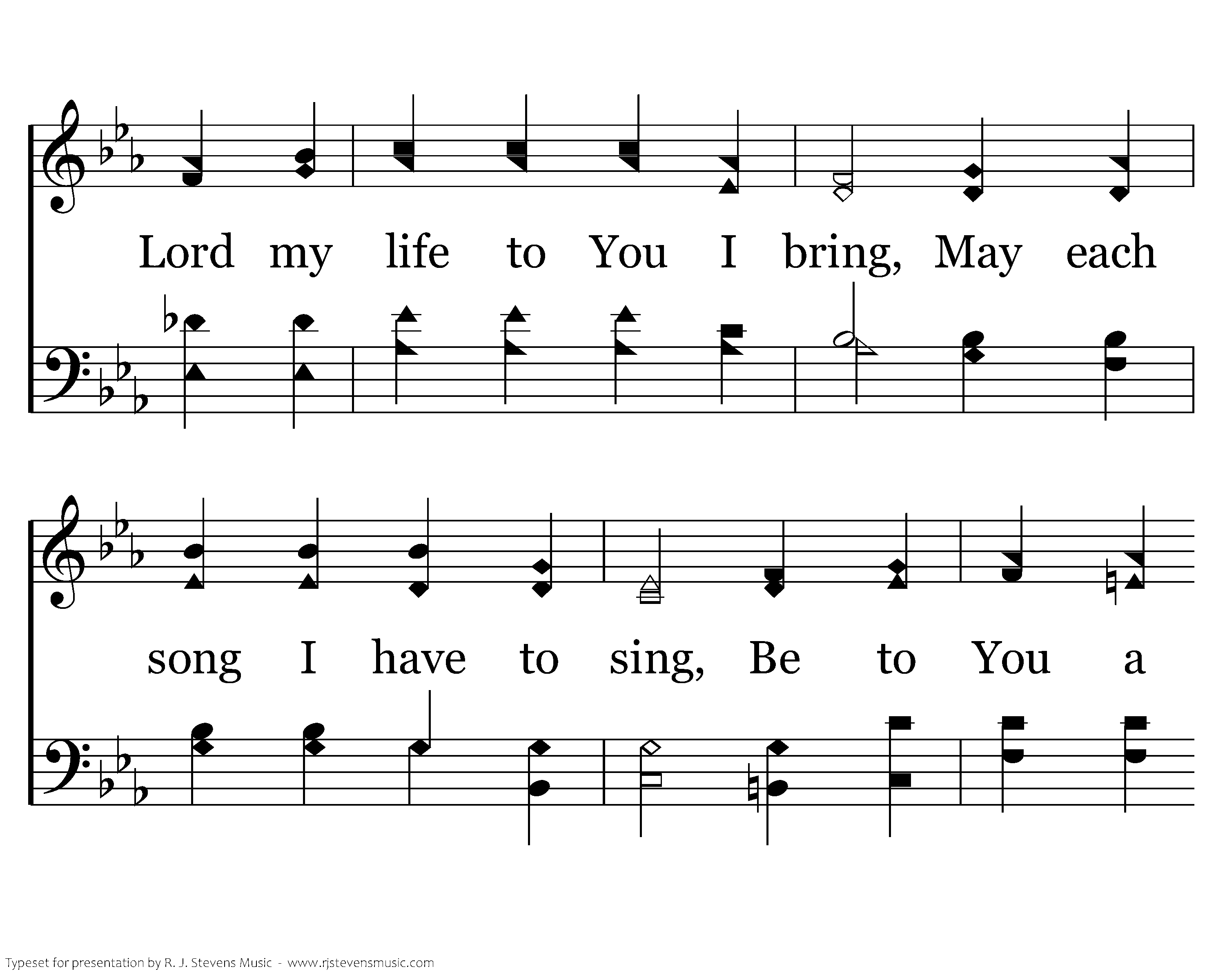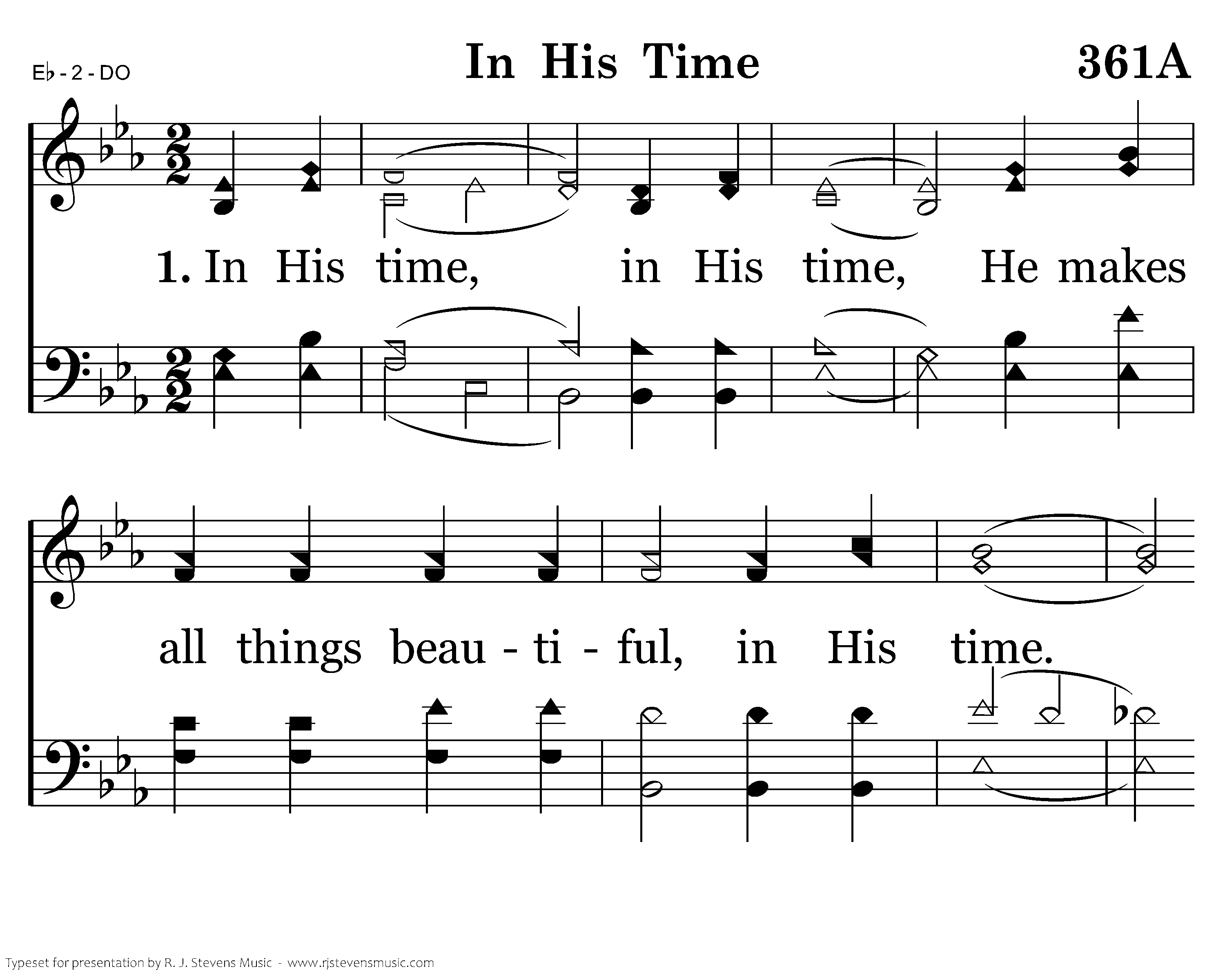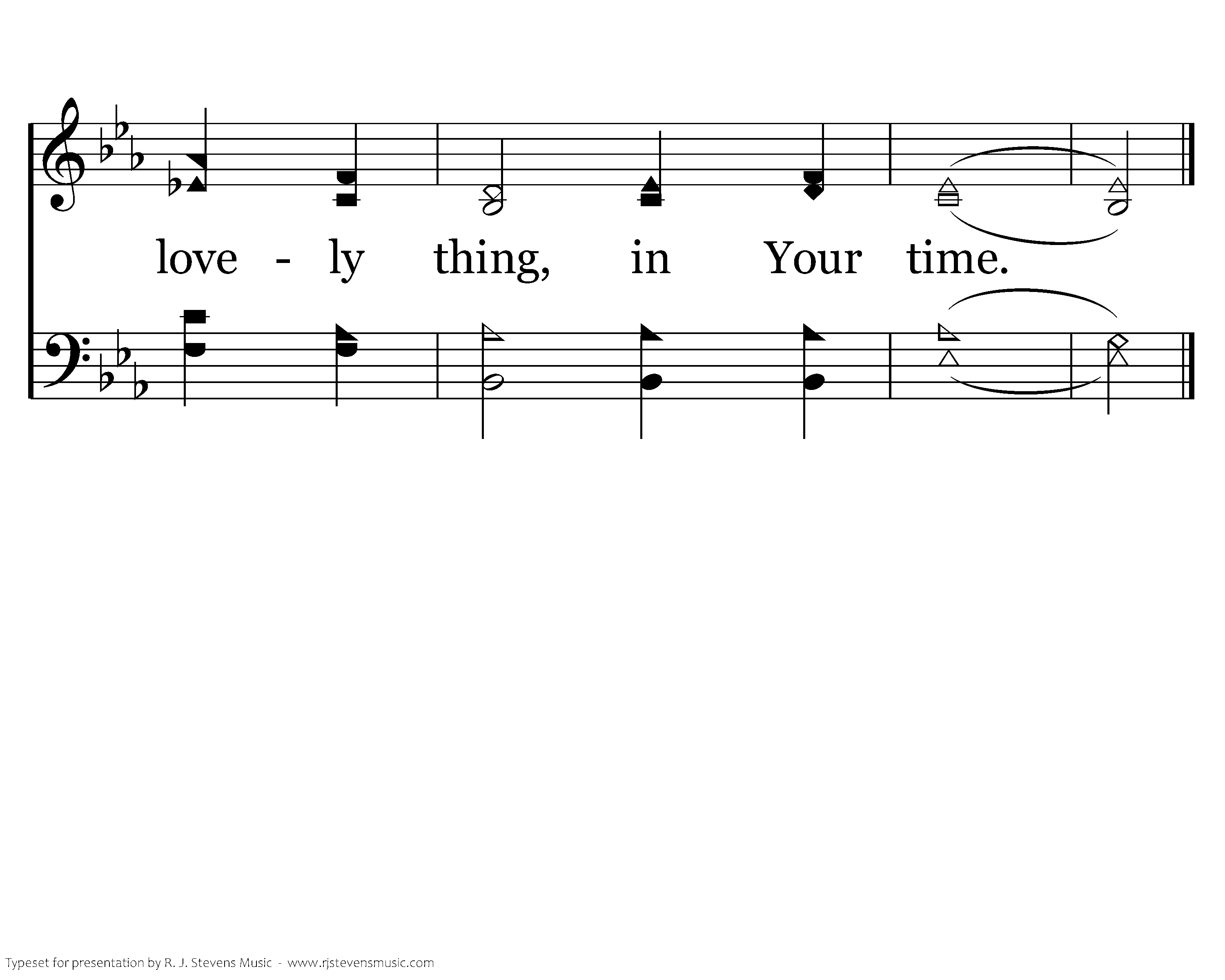 In Your time, in Your time, You make all things beautiful, in Your time. Lord, my life to You I bring, May each song I have to sing, Be to You a lovely thing, in Your time.
