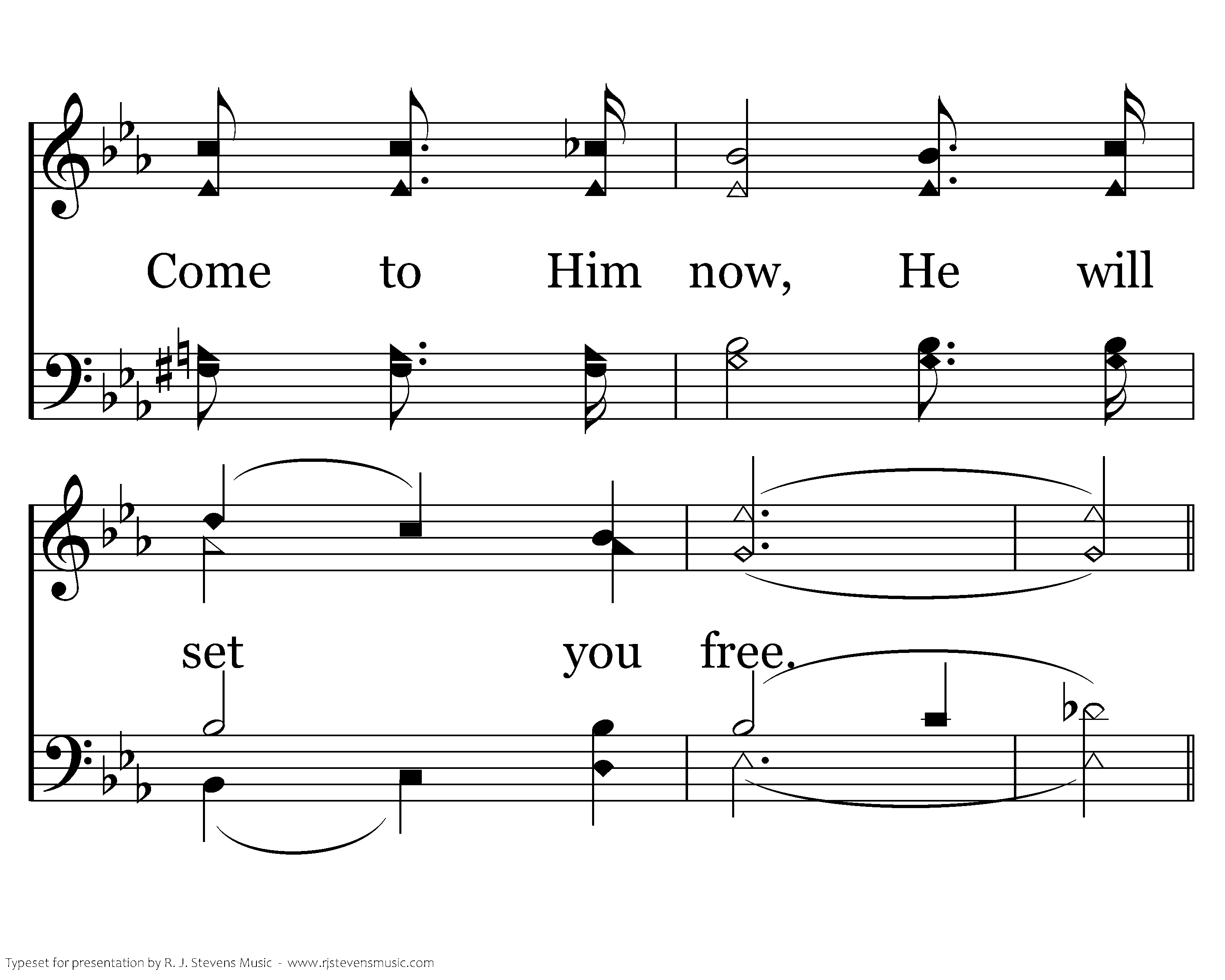 As He hung on the tree, Our Savior died for you and me. Come to him now, He will make you now.