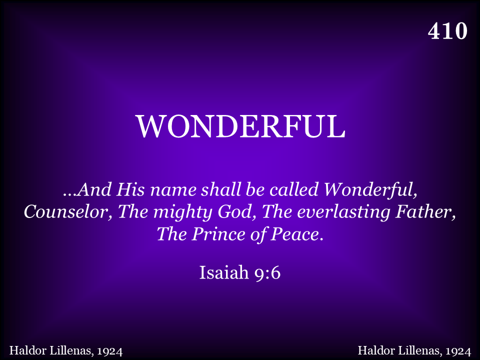 Wonderful, Jesus to me! Counselor, Prince of Peace, Mighty God is He, Saving me keeping me from all sin and shame.