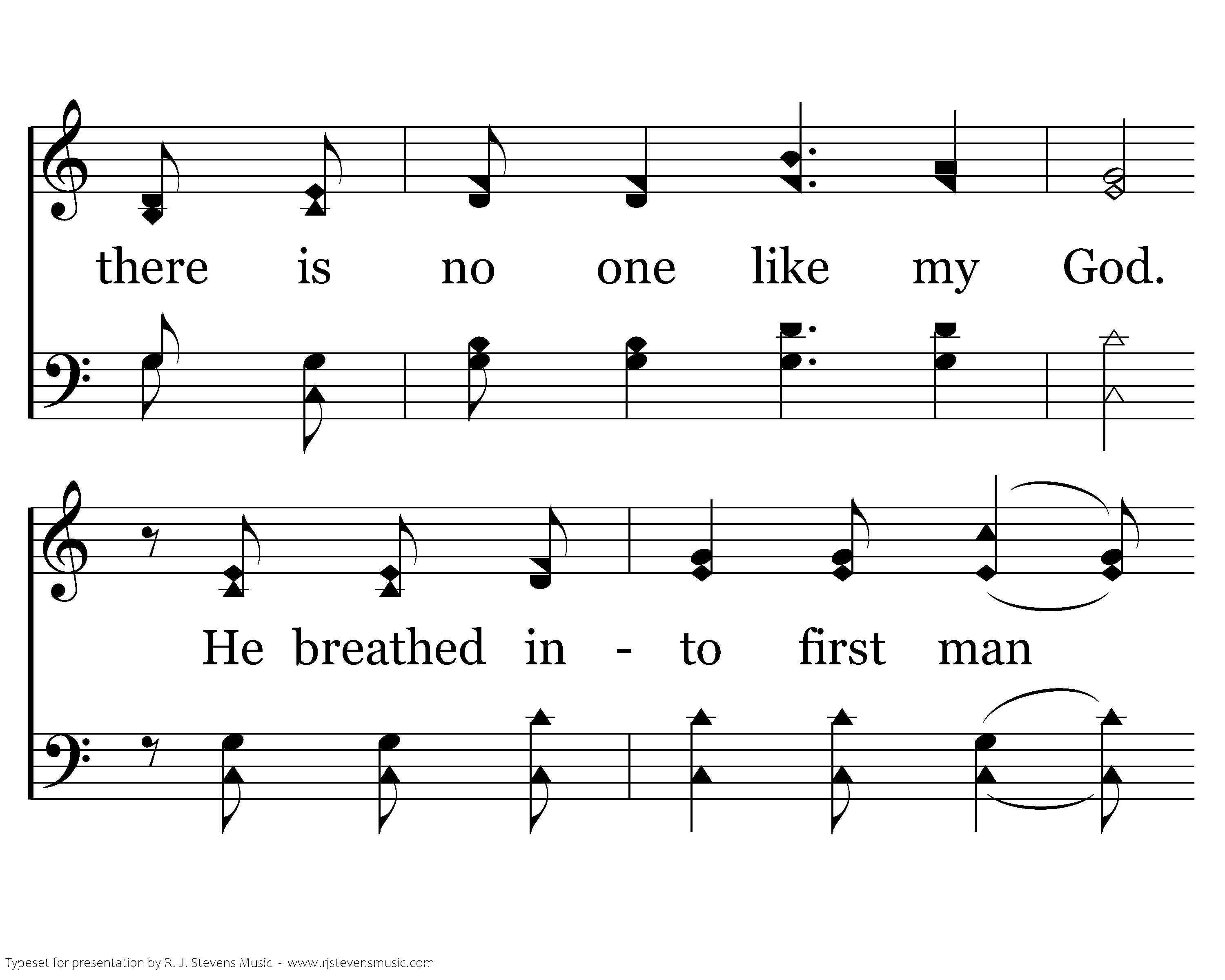 By the pow'r of His Word He created all things, there is no one like my God. He breathed into first man the breath of life and made him a living soul.