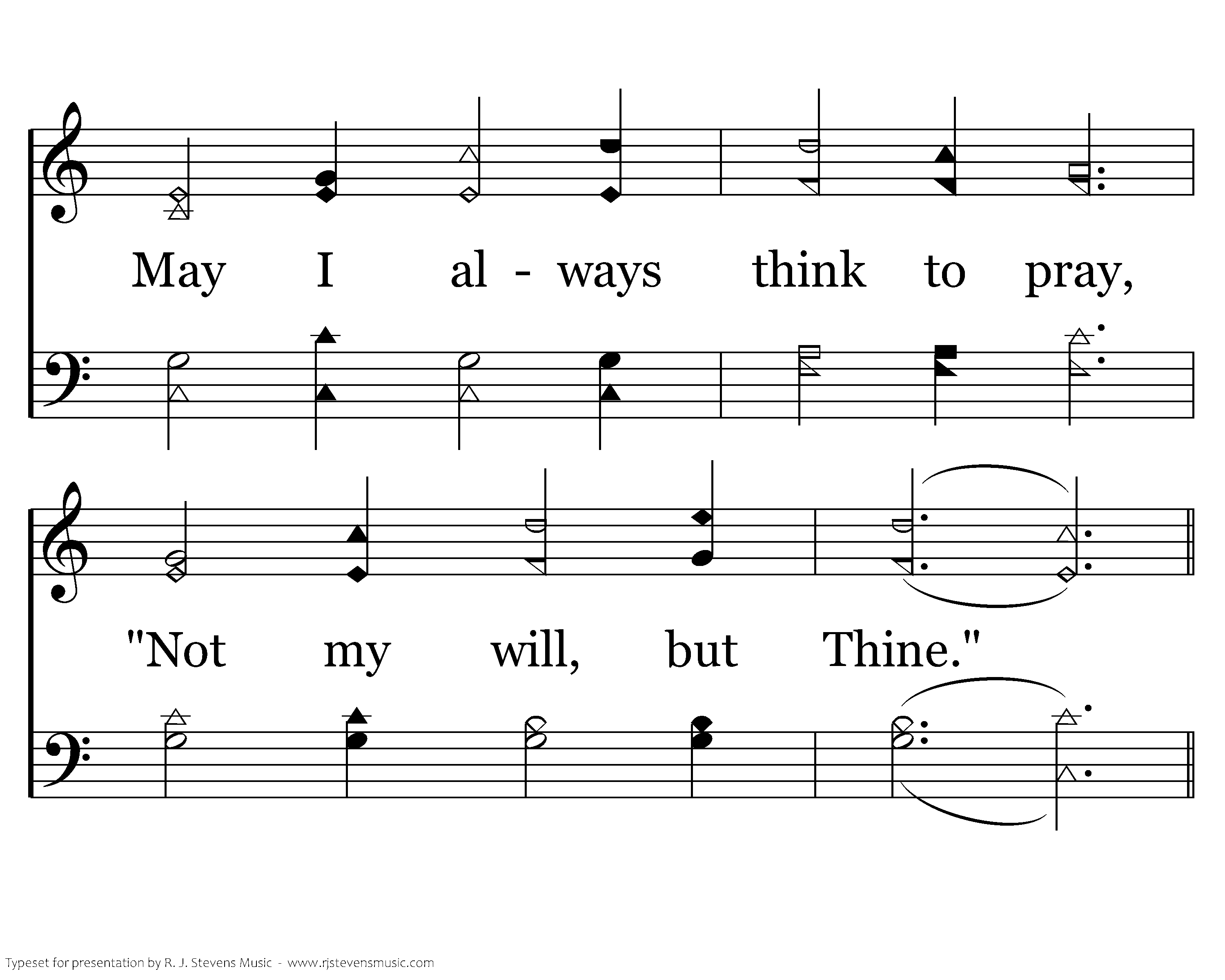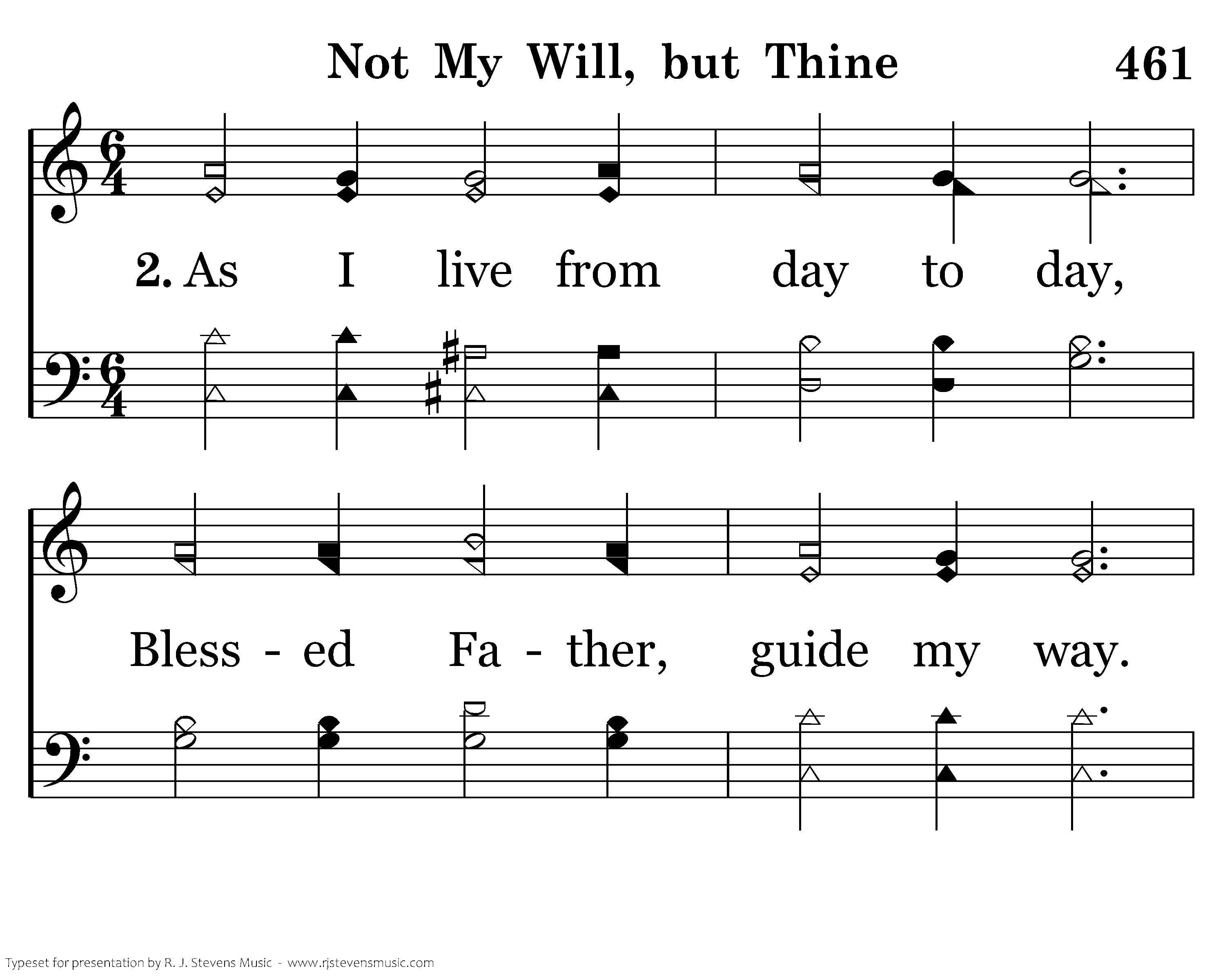 As I live from day to day, Blessed Father, guide my way. May I always think to pray, "Not my will, but Thine."