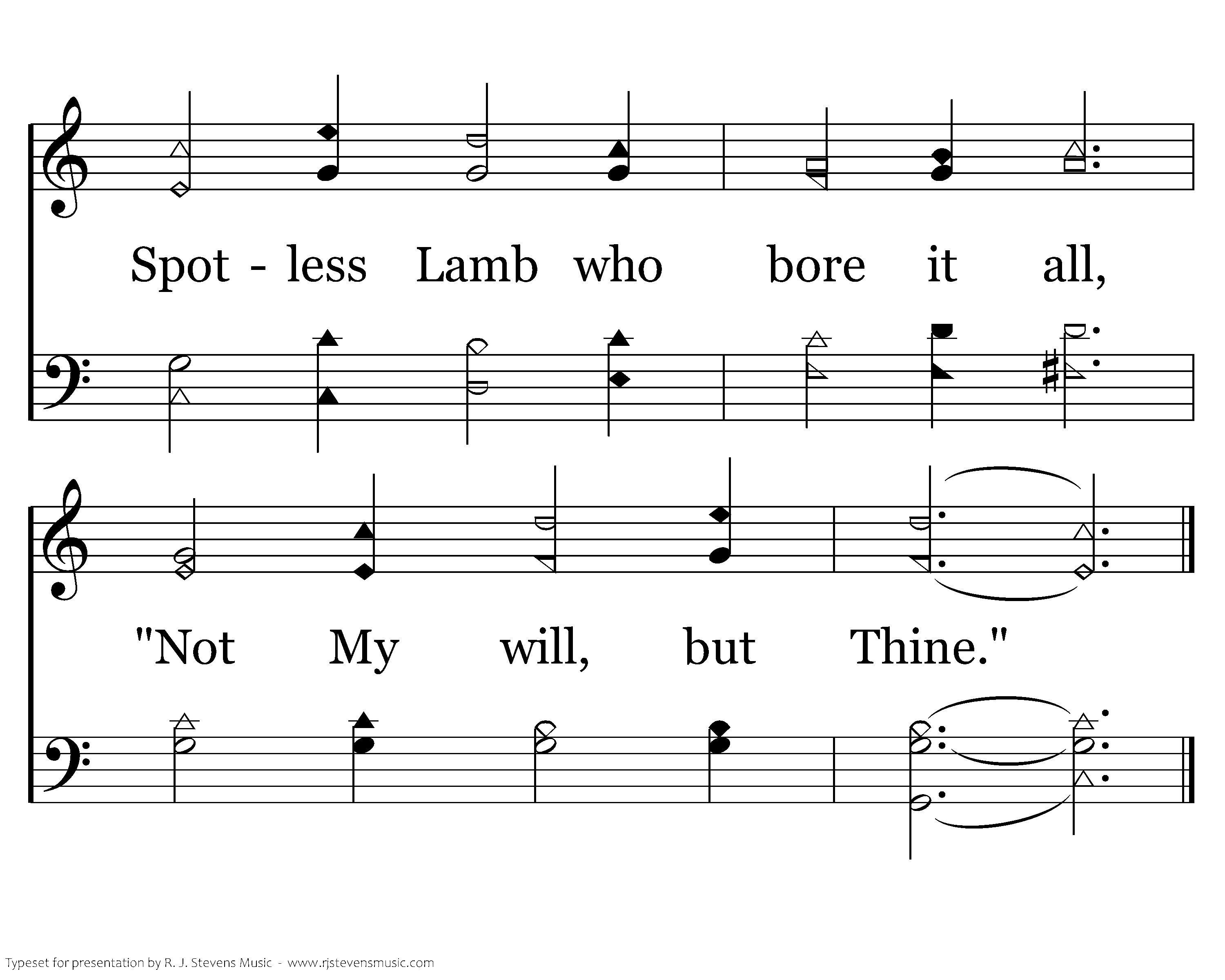 May this be my lifelong guide: Blessed Savior crucified; Spotless Lamb who bore it all, "Not My will, but Thine."