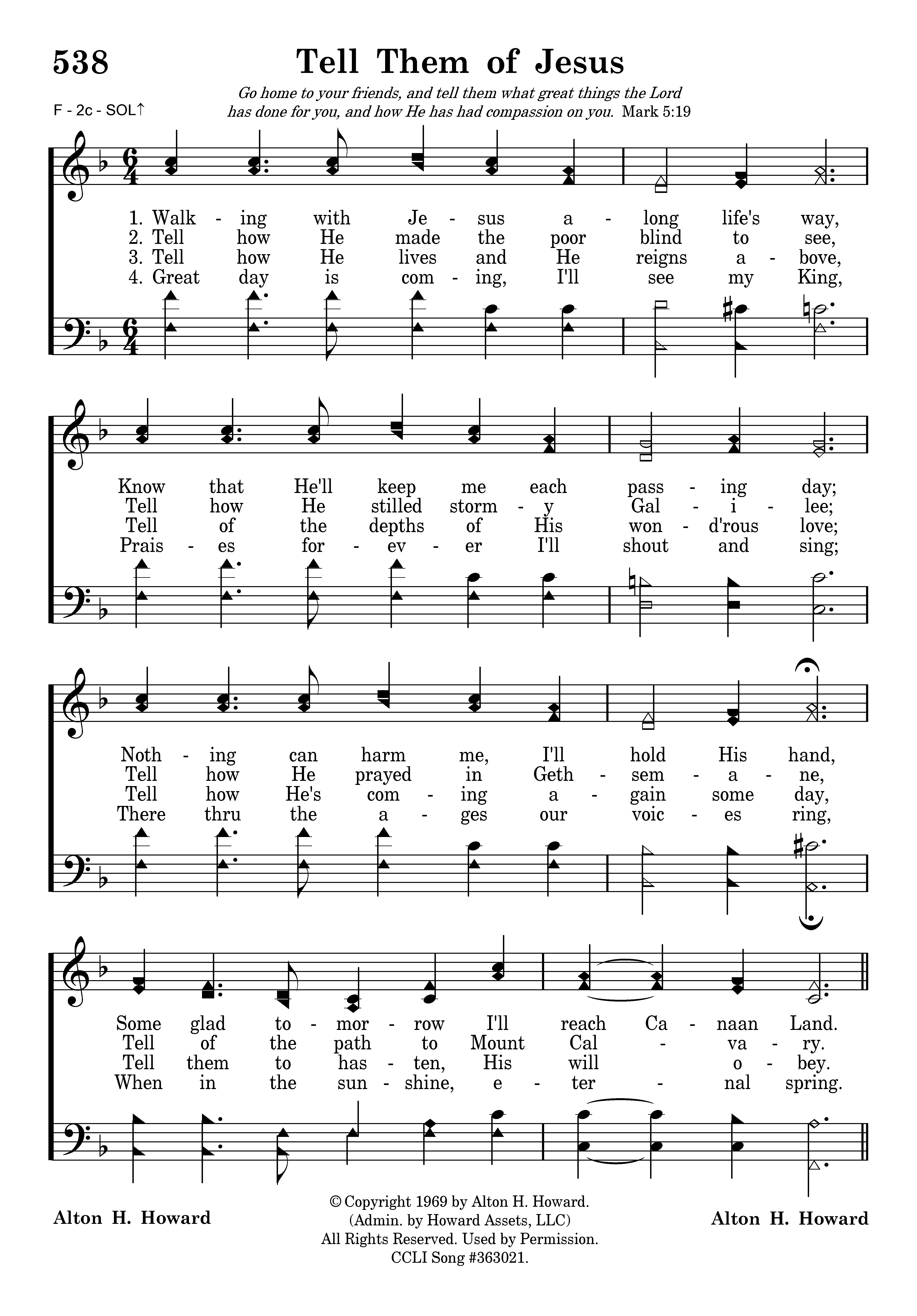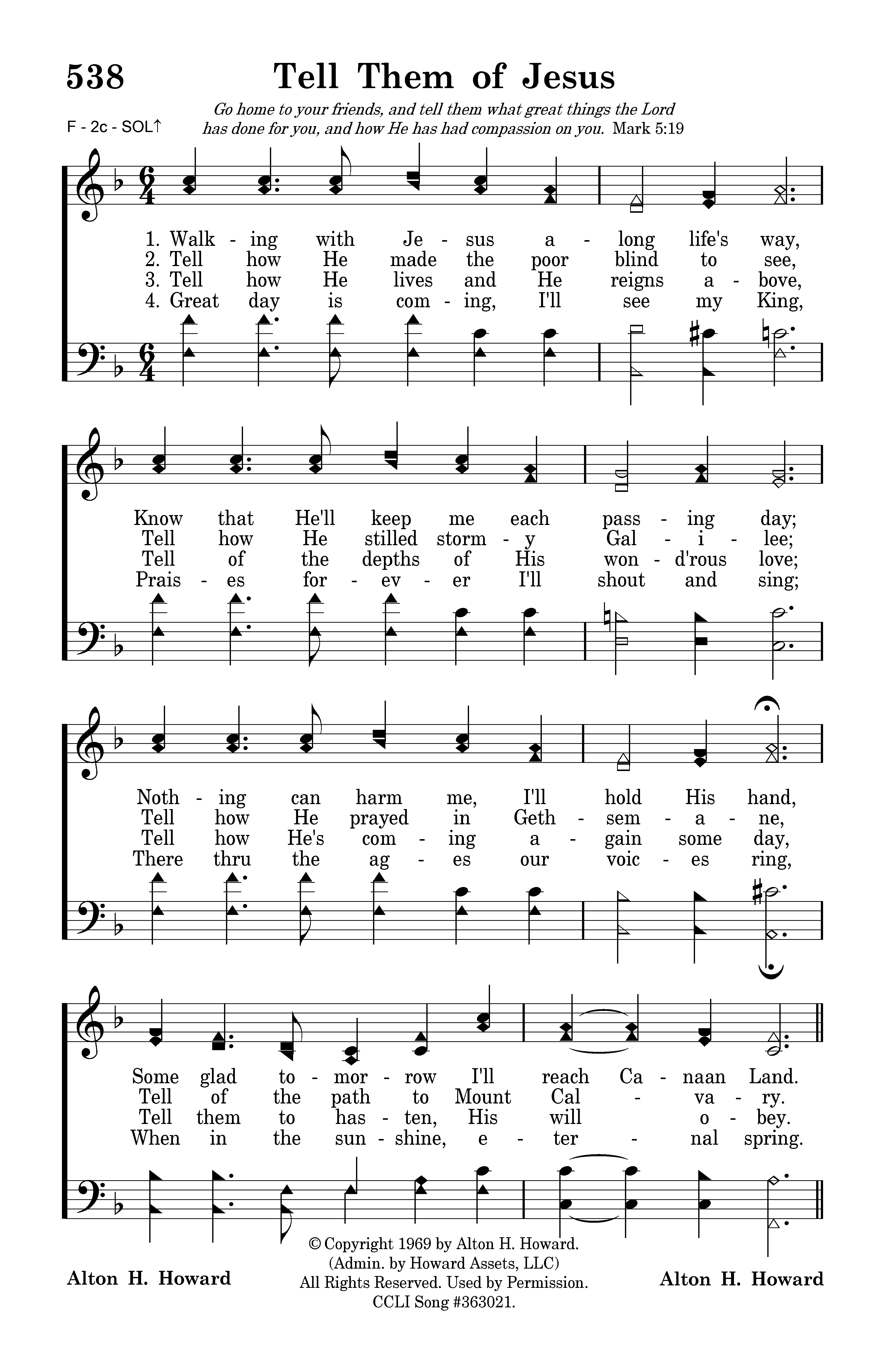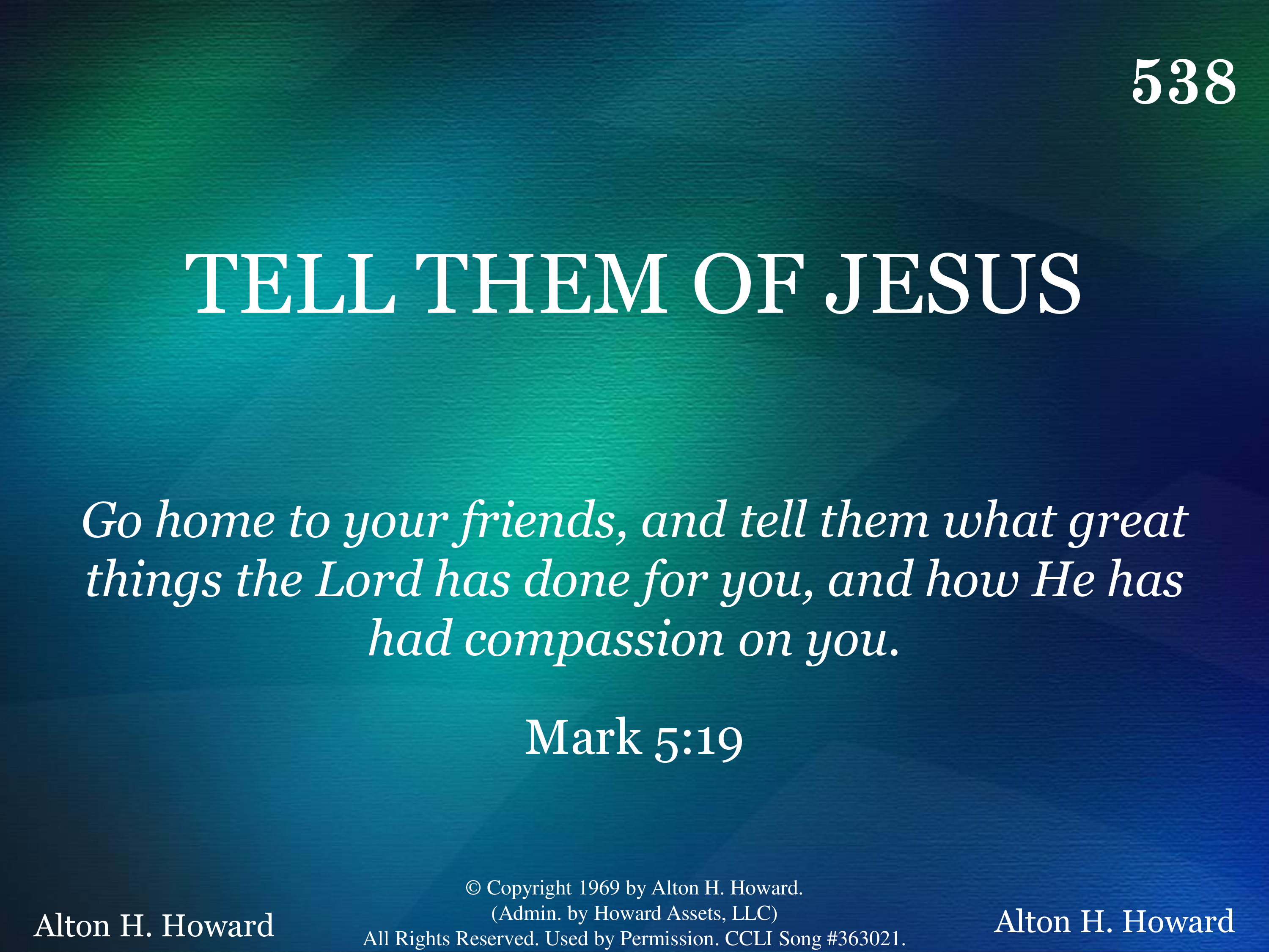 - Copyright © 1969 by Alton H. Howard. (Admin. by Howard Interests, LLC.) All Rights Reserved. Used by Permission.