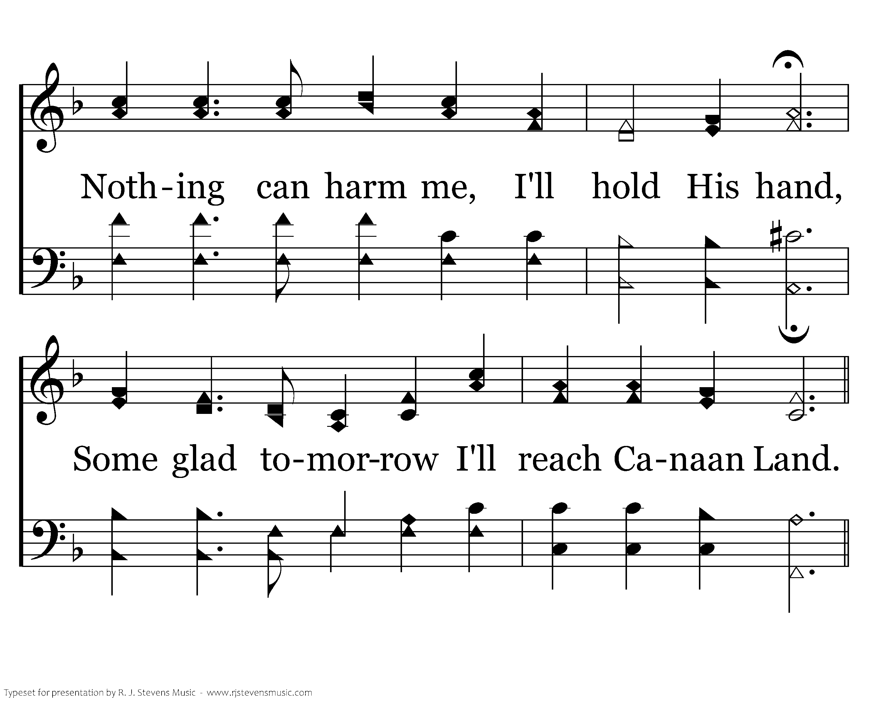 Walking with Jesus along life's way, Know that He'll keep me each passing day; Nothing can harm me I'll hold His hand, Some glad tomorrow I'll reach Canaan Land.