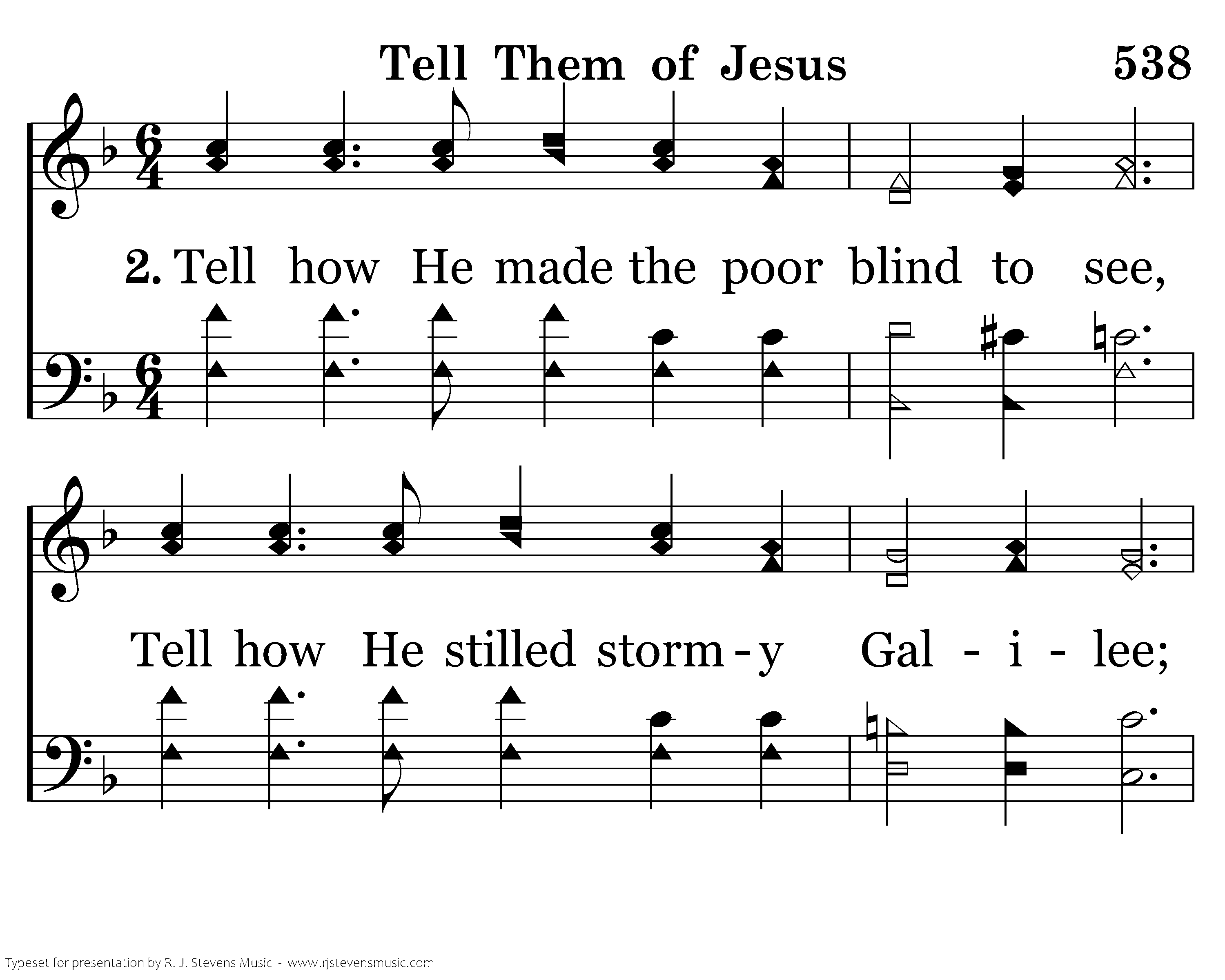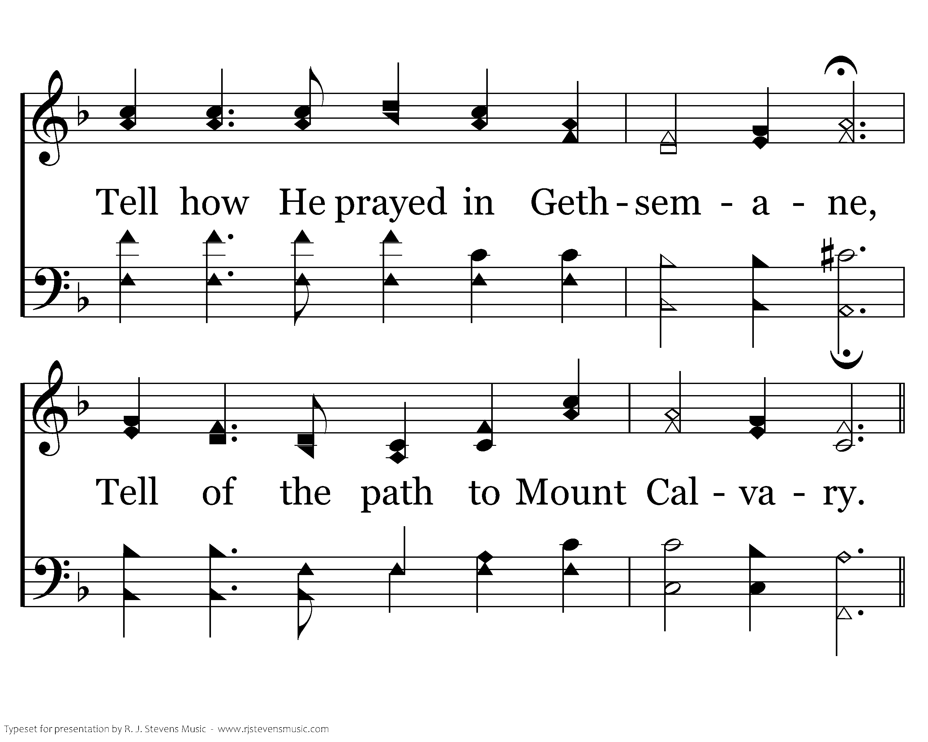 Tell how He made the poor blind to see, Tell how He stilled stormy Galilee; Tell how He prayed in Gethsemane, Tell of the path to Mount Calvary.