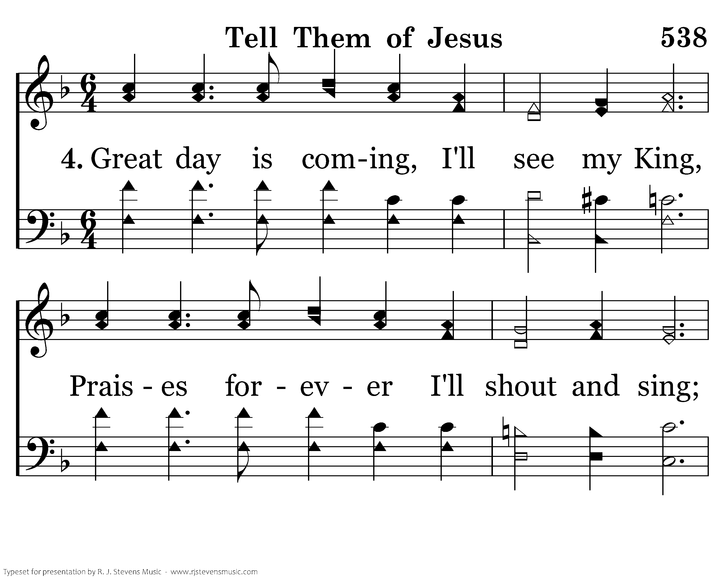 Great day is coming, I'll see my King, Praises forever I'll shout and sing; There thru the ages our voices ring, When in the sunshine, eternal spring.