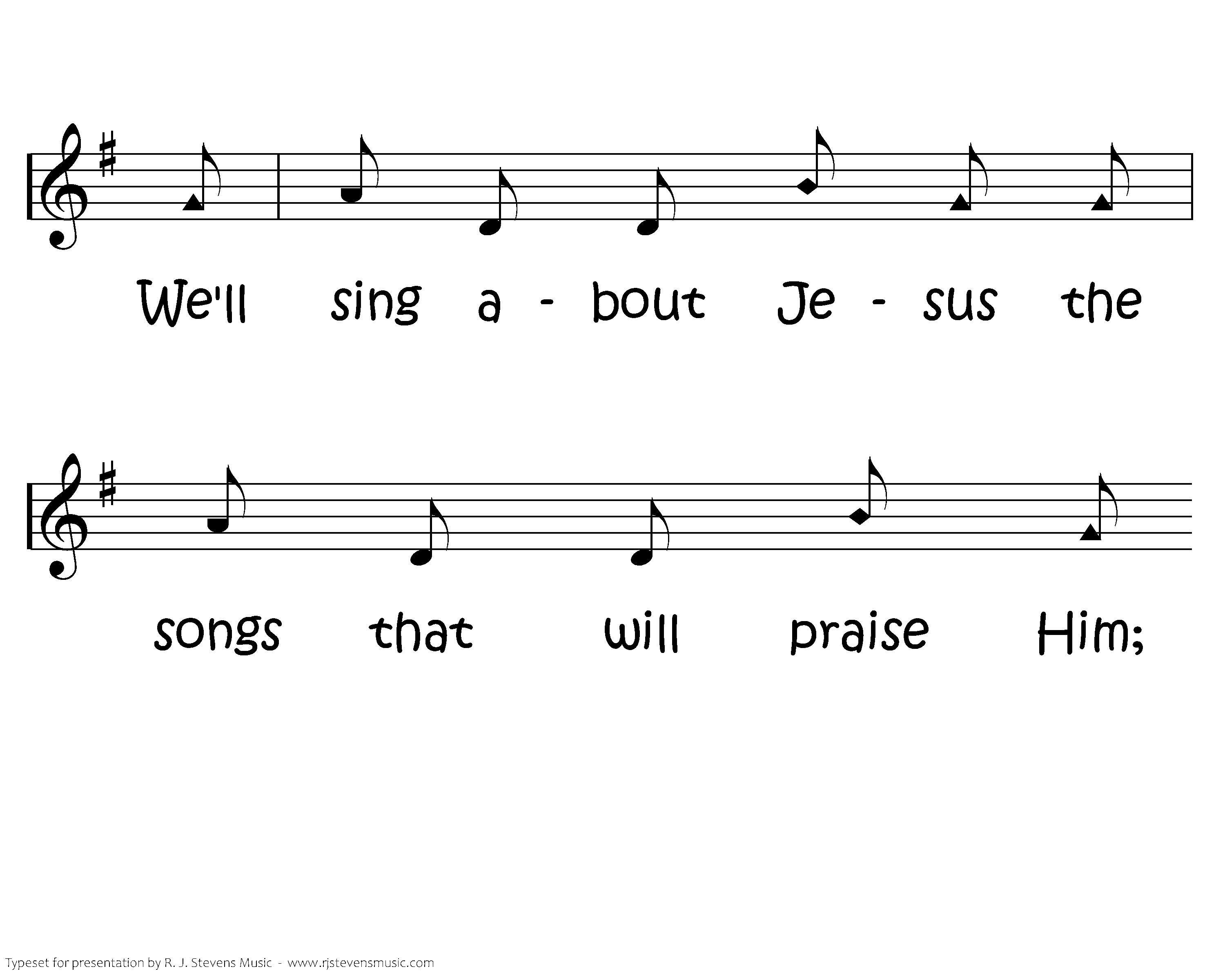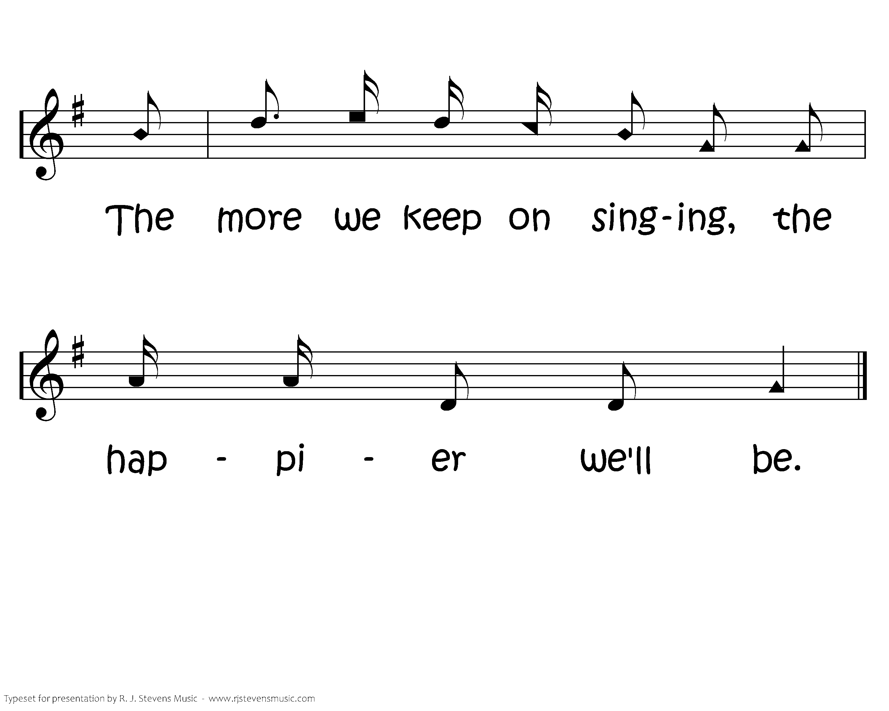 The more we keep on singing, keep singing, keep singing, The more we keep on singing the happier we'll be. We'll sing about Jesus the songs that will praise Him; The more we keep on singing, the happier we'll be.