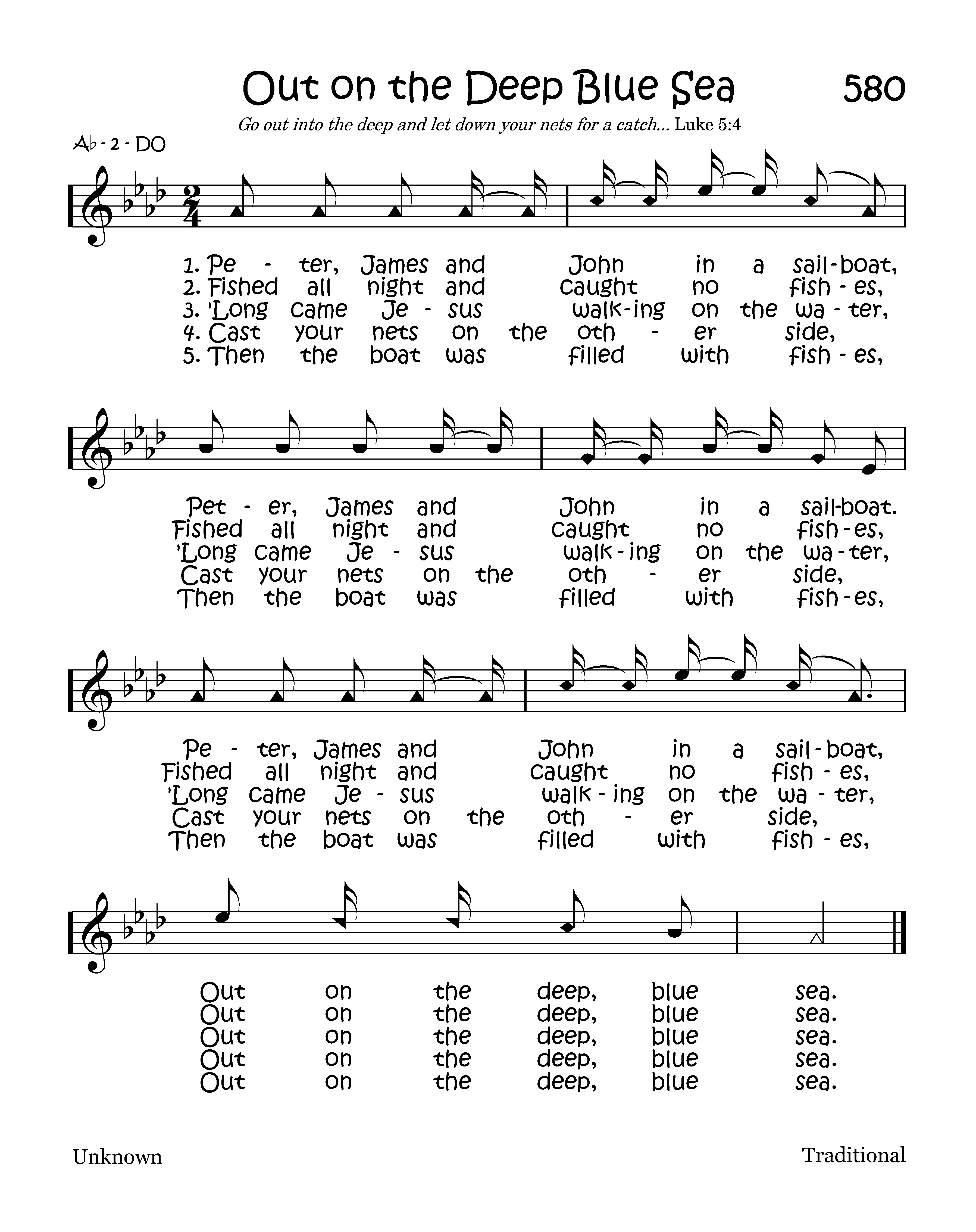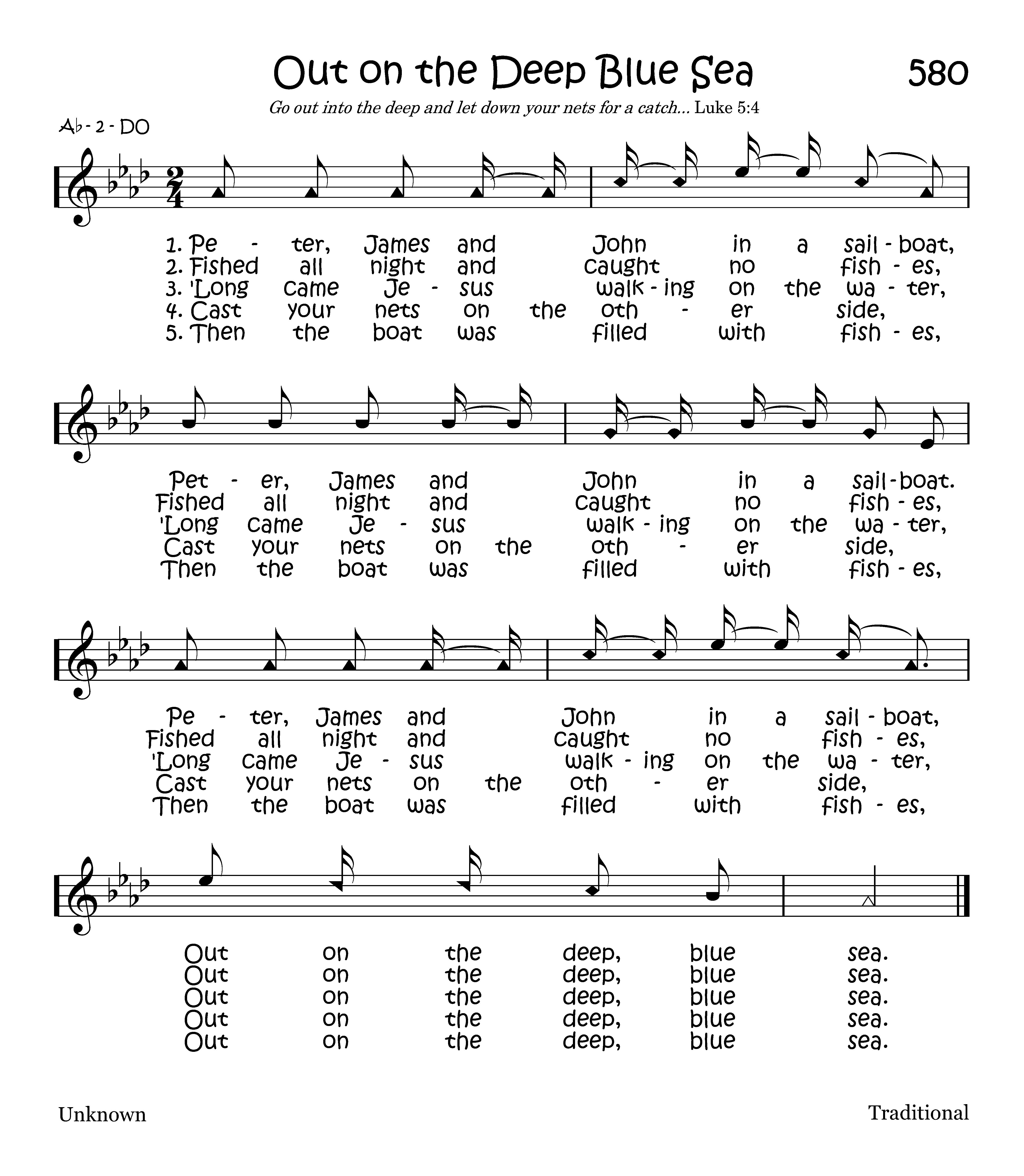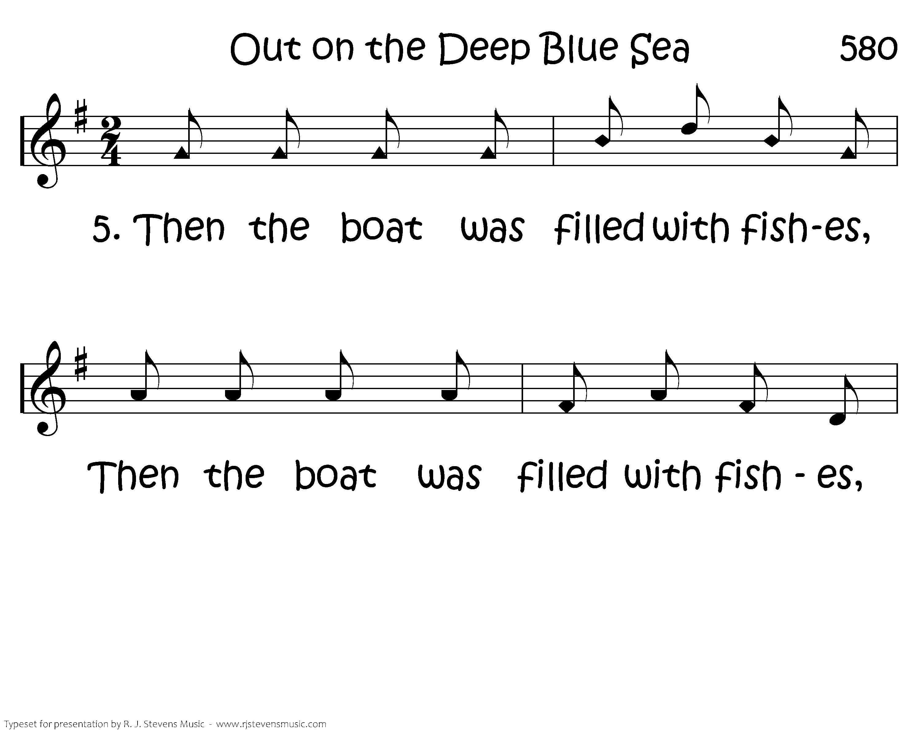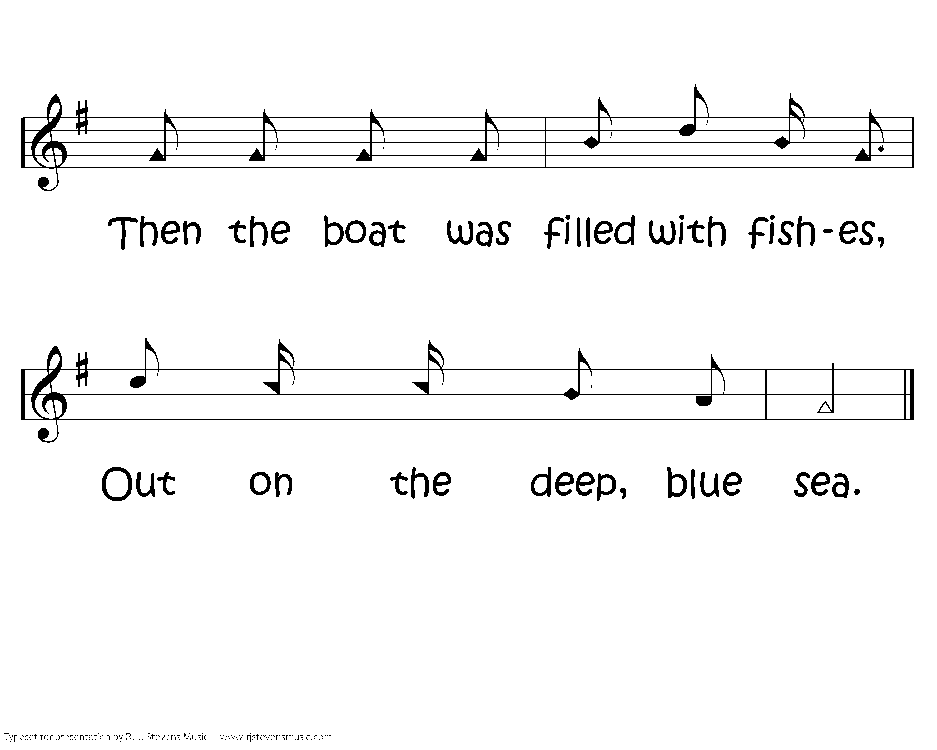 Then the boat was filled with fishes, Then the boat was filled with fishes, Then the boat was filled with fishes, Out on the deep, blue sea.