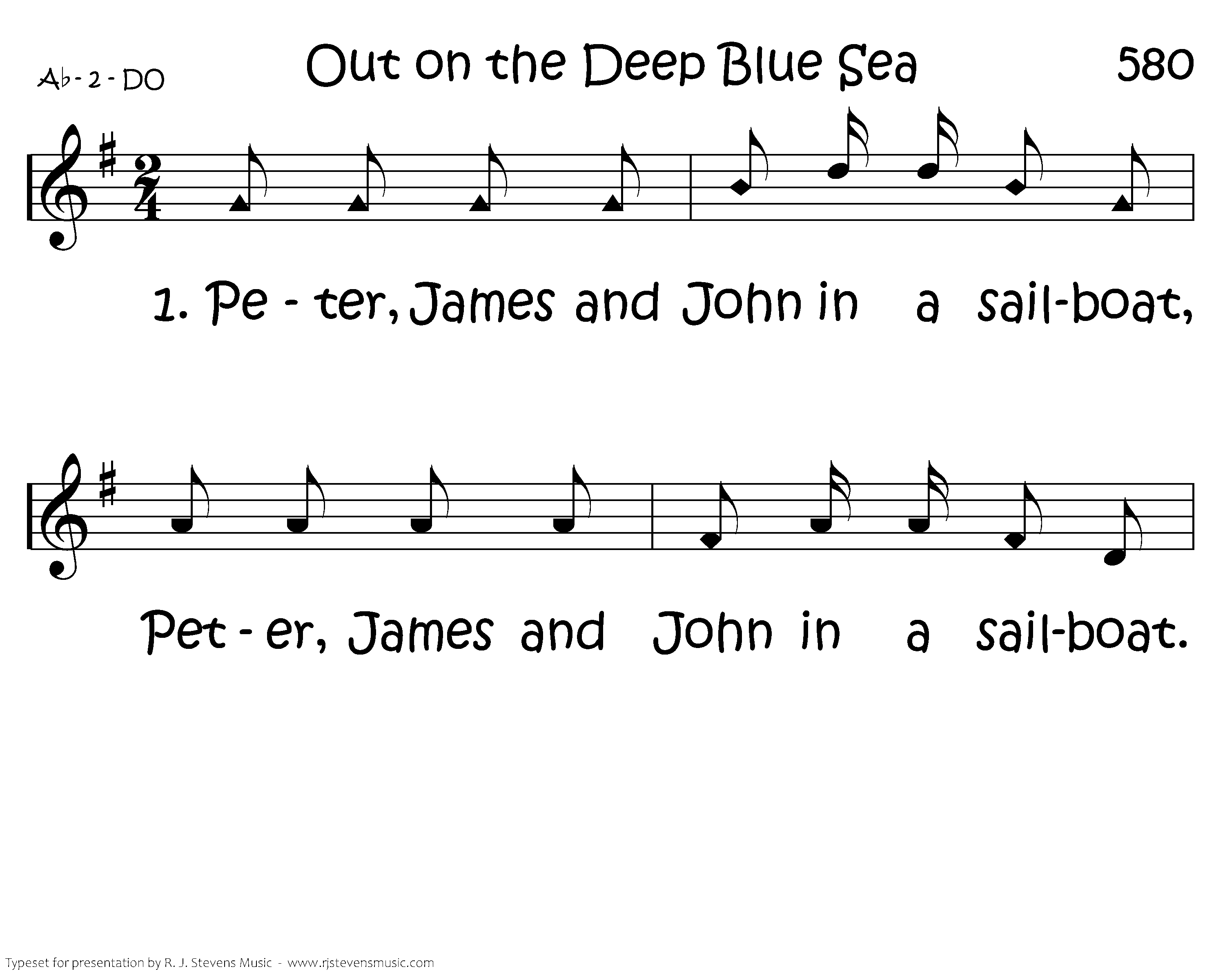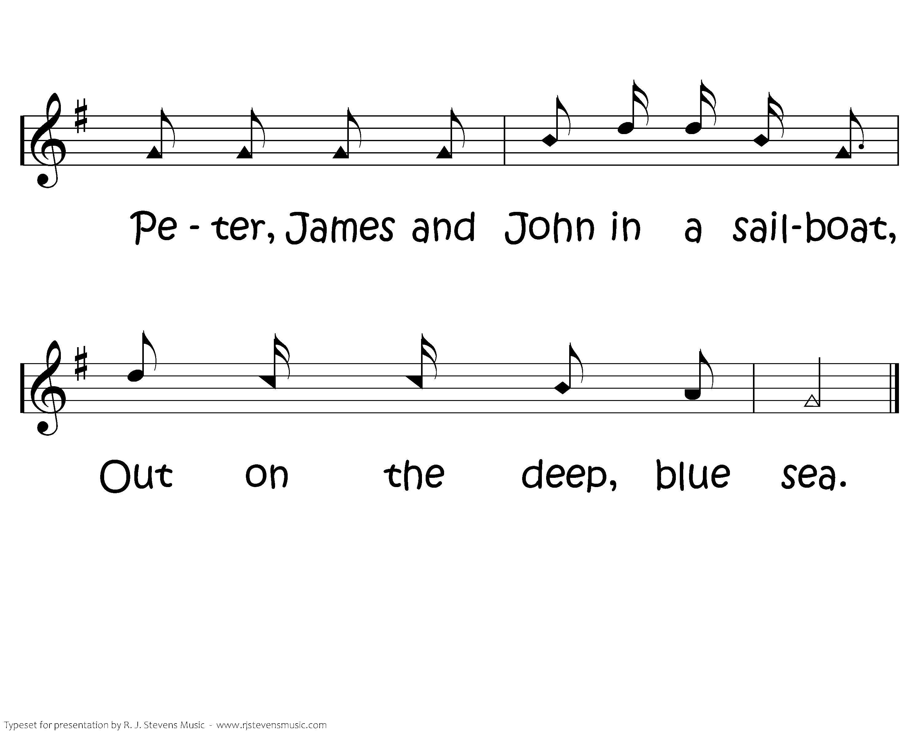 Peter, James and John in a sailboat, Peter, James and John in a sailboat. Peter, James and John in a sailboat, Out on the deep, blue sea