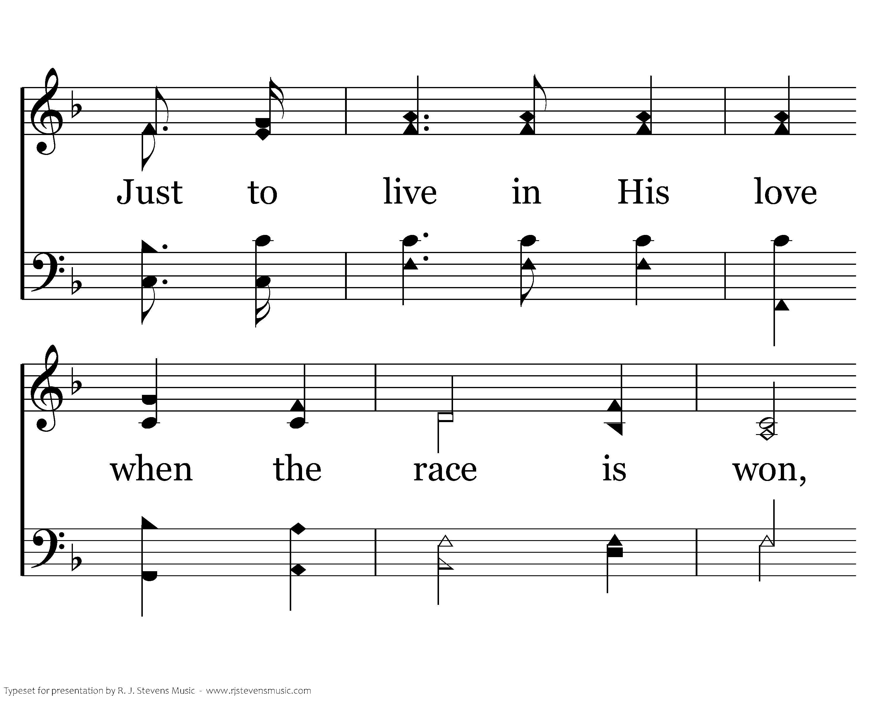 At the crossing of Jordan when time's no more, When the morning shall break on eternity's shore; Just to live in His love when the race is won, Just to hear His glad welcome, "My servant, well done."