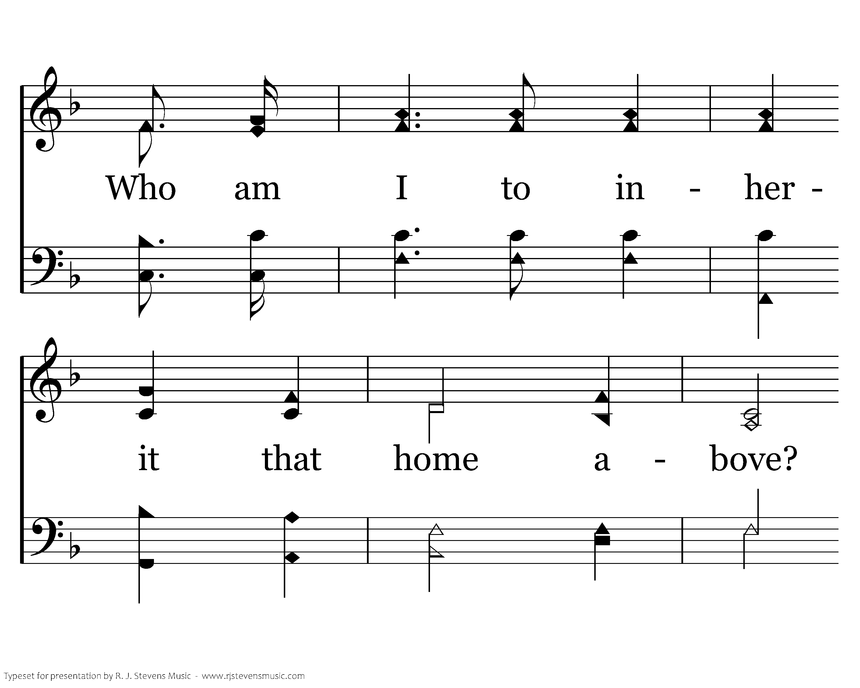 No more tears and no night in that mansion fair, And the street is of gold in that city foursquare, Who am I to inherit that home above? Who am I to receive such unmerited love?