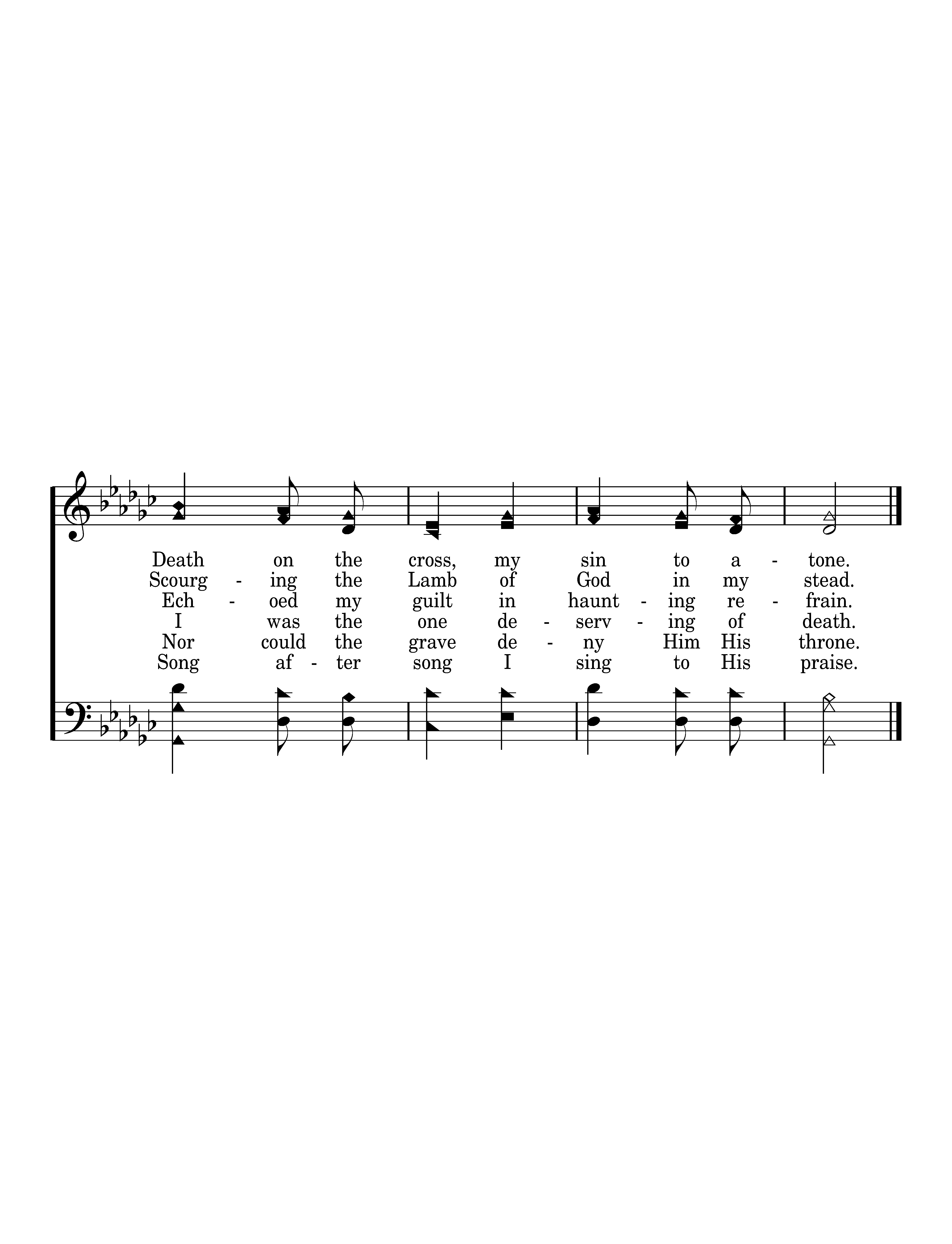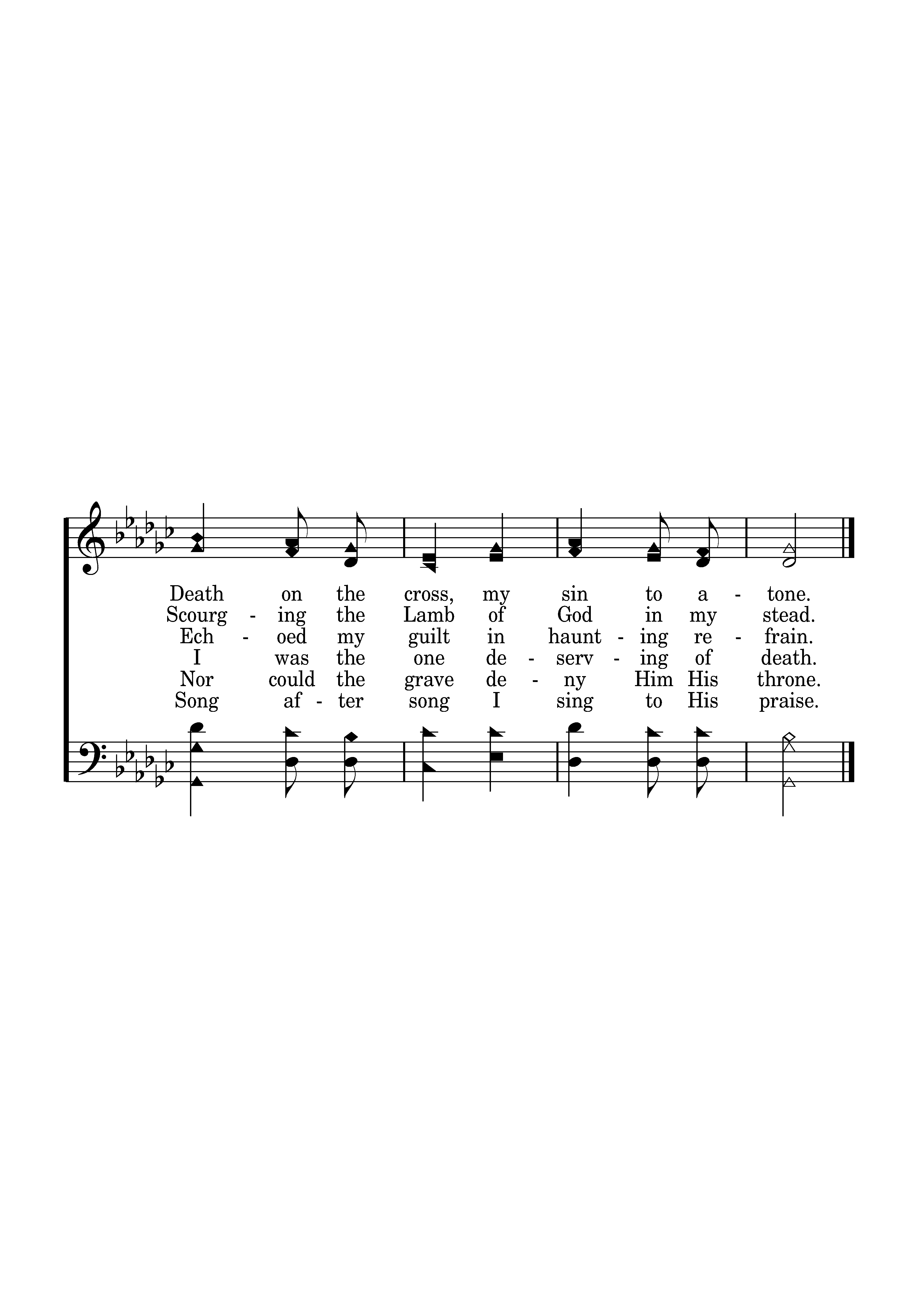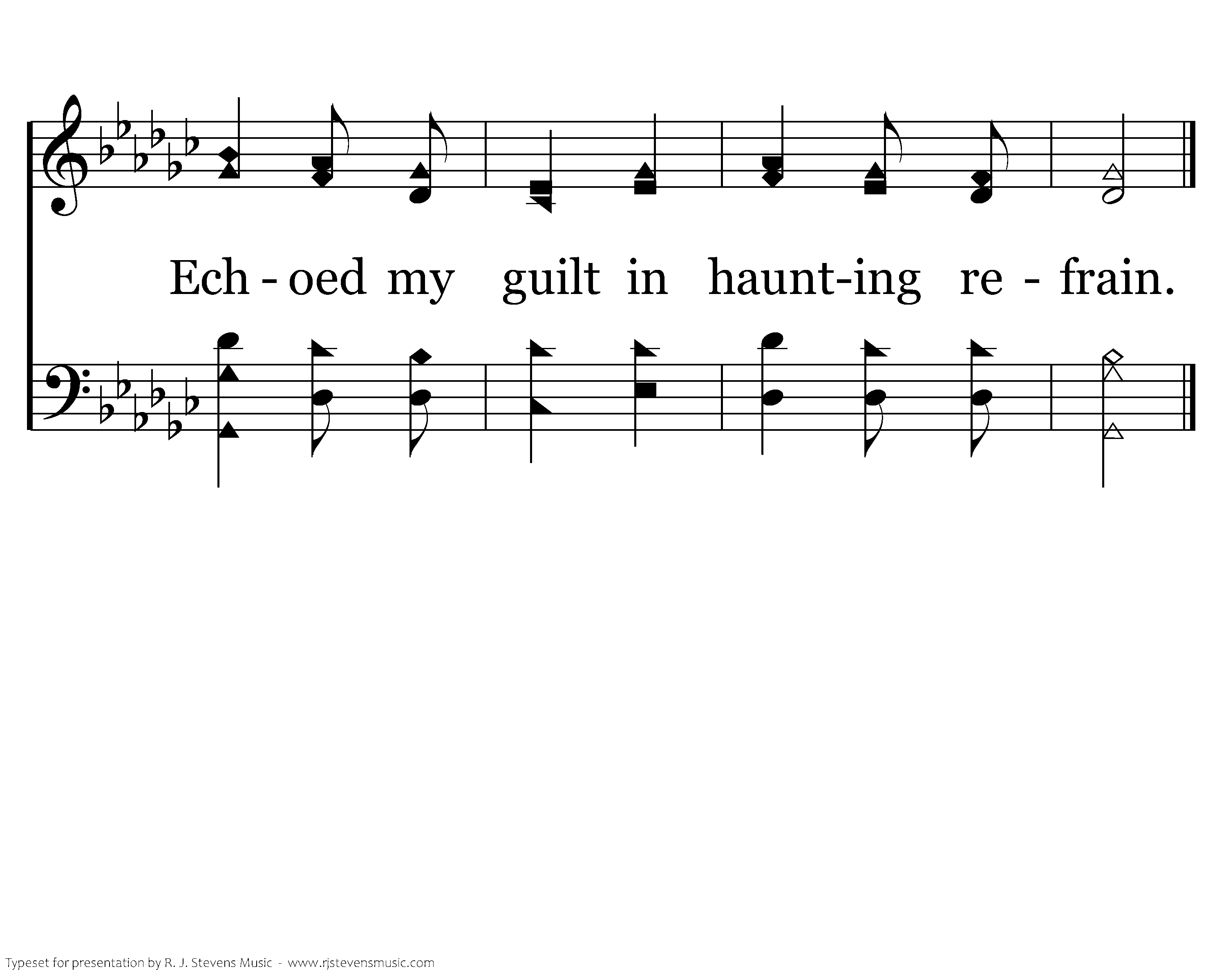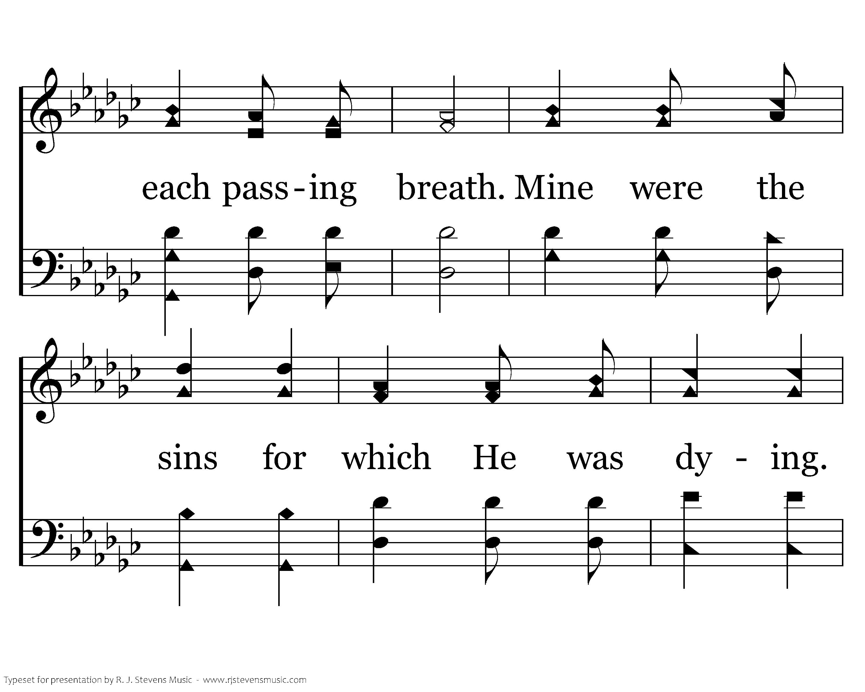 Curse after curse was shouted by mockers, Placing a crown of thorns on his head. Tho' He was guiltless, they showed no mercy, Scourging the Lamb of God in my stead.