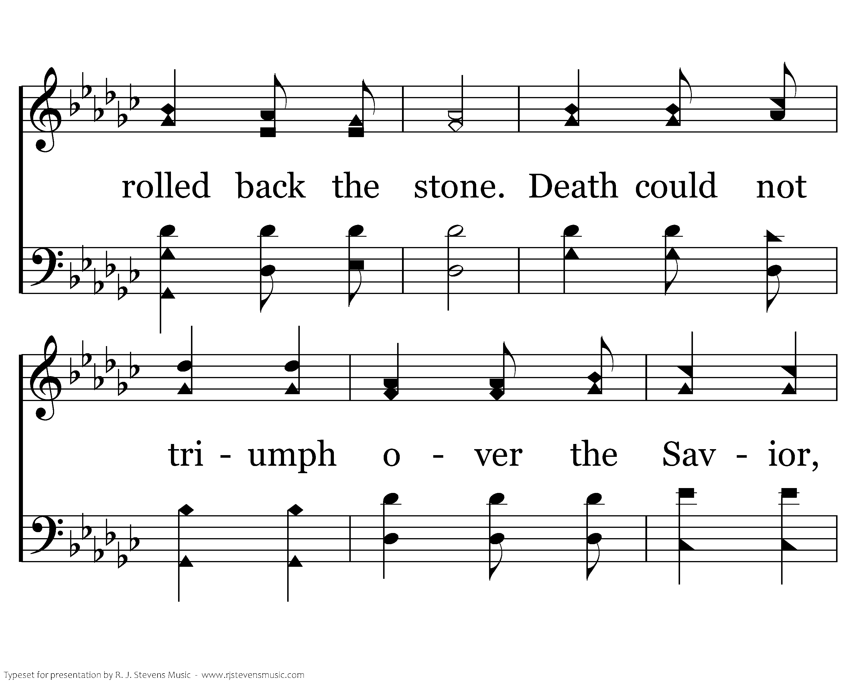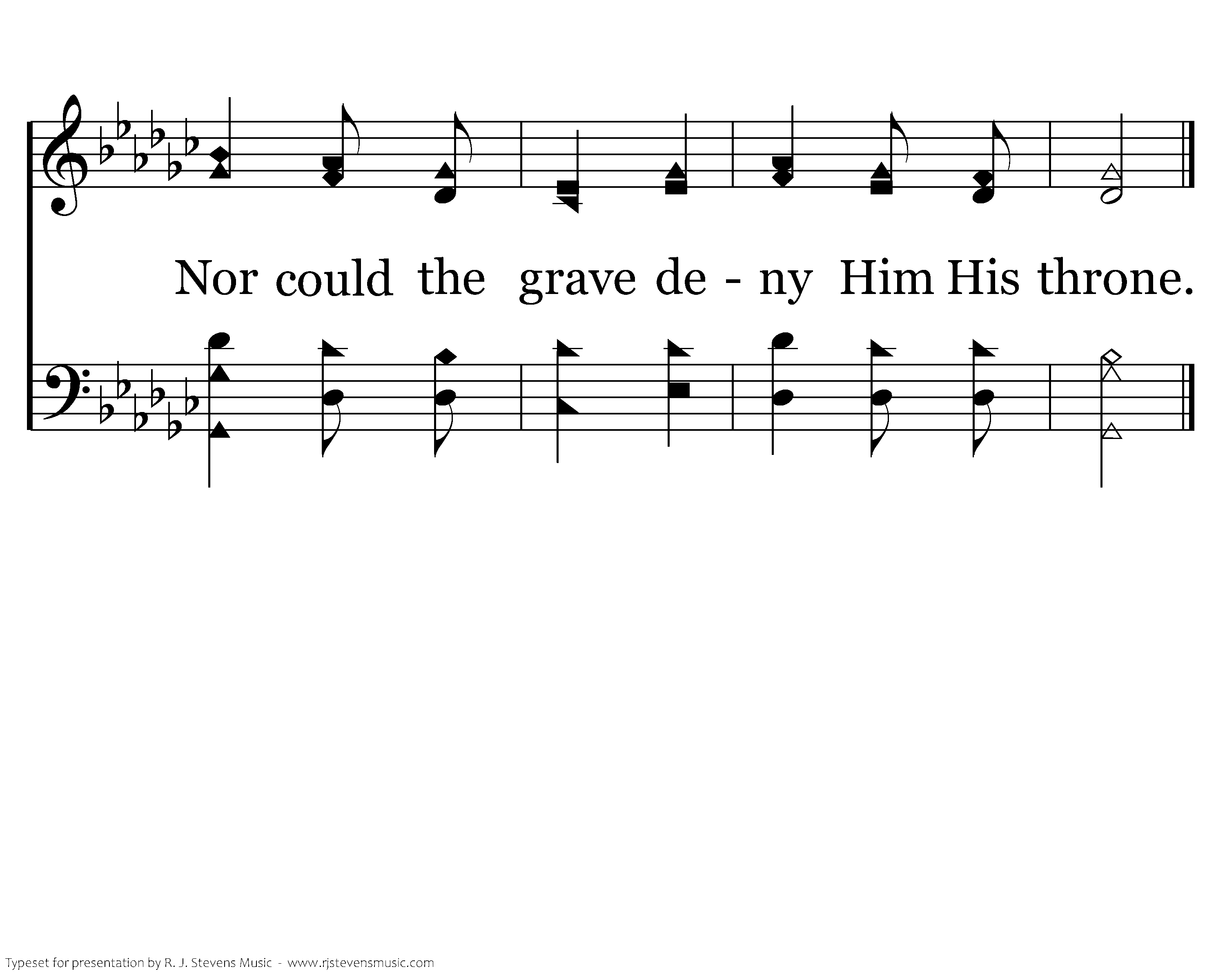 Tear after tear gave way to rejoicing After an angel rolled back the stone. Death could not triumph over the Savior, Nor could the grave deny Him His throne.