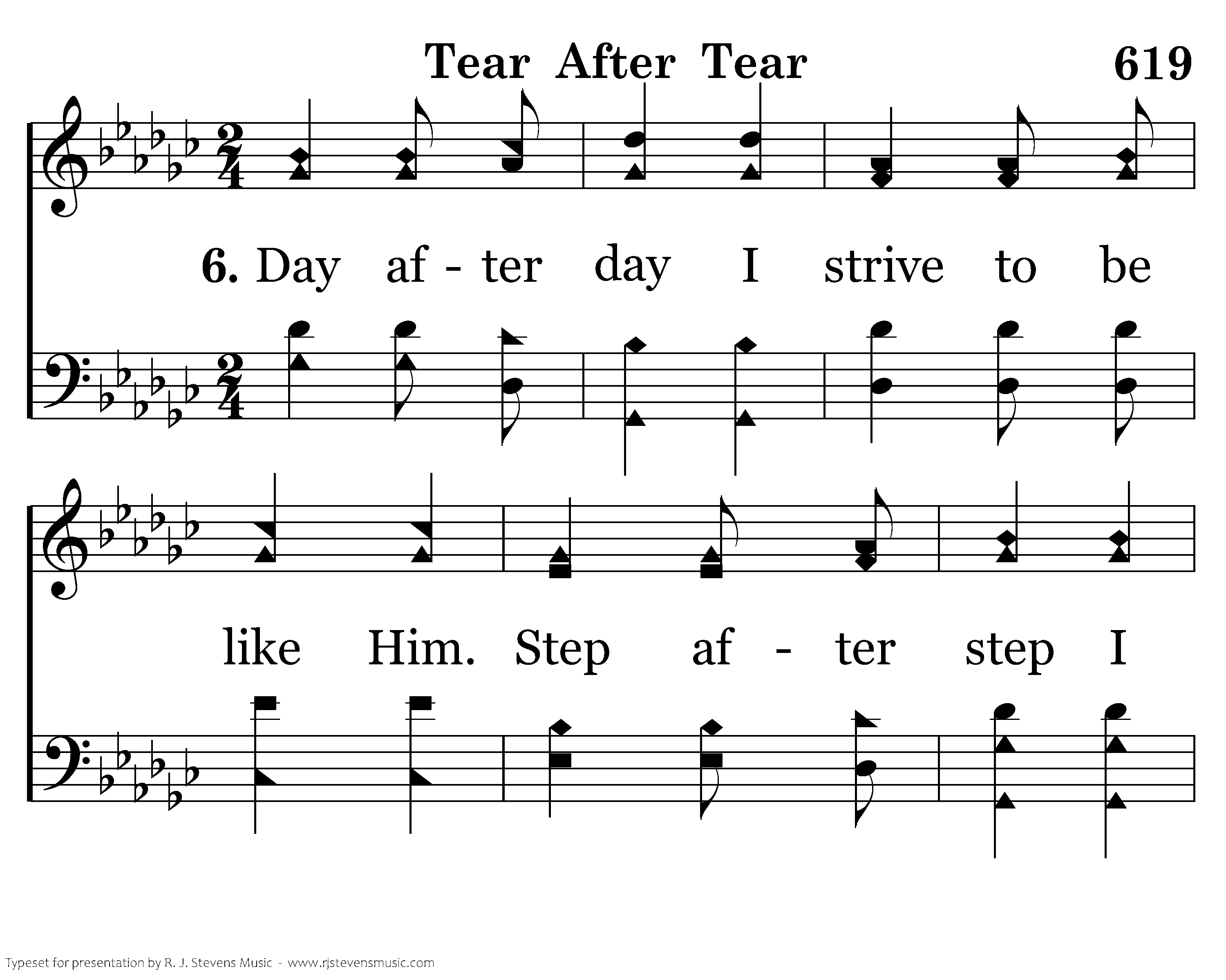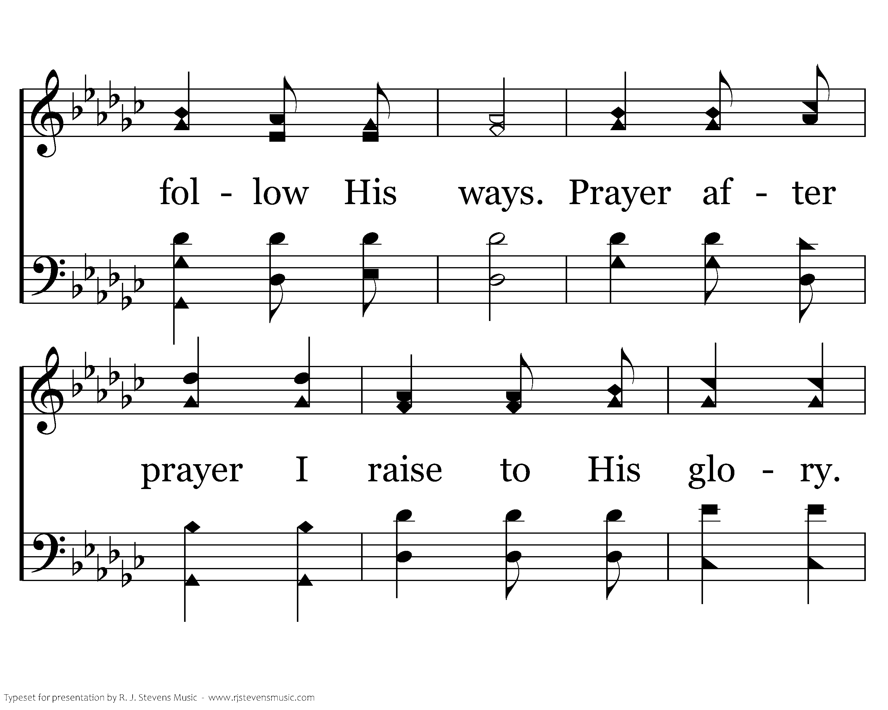 Day after day I strive to be like Him. Step after step I follow His ways. Pray'r after pray'r I raise to His glory. Song after song I sing to His praise.