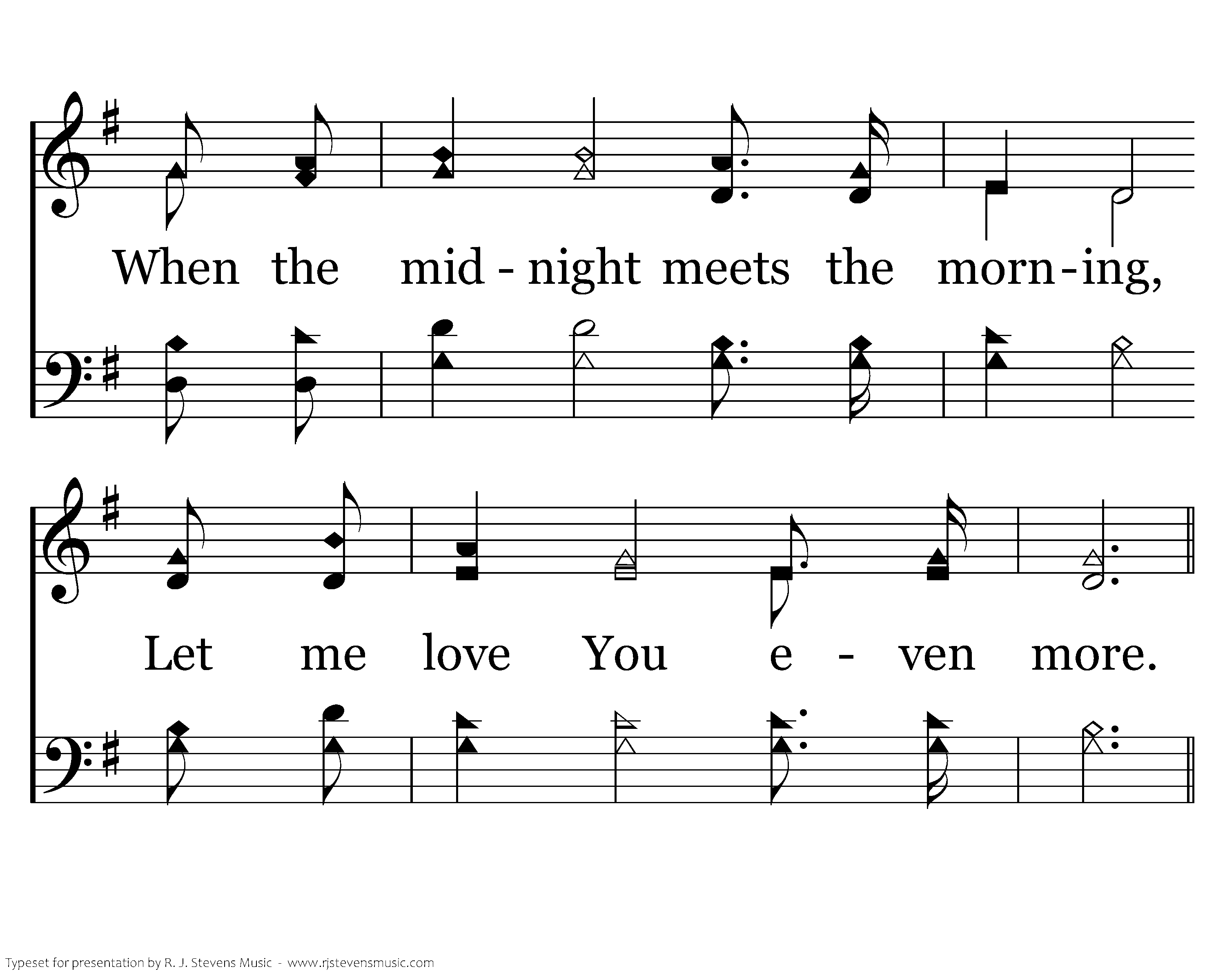Jesus, guide me thru the tempest; Keep my spirit staid and sure. When the midnight meets the morning, Let me love You even more.