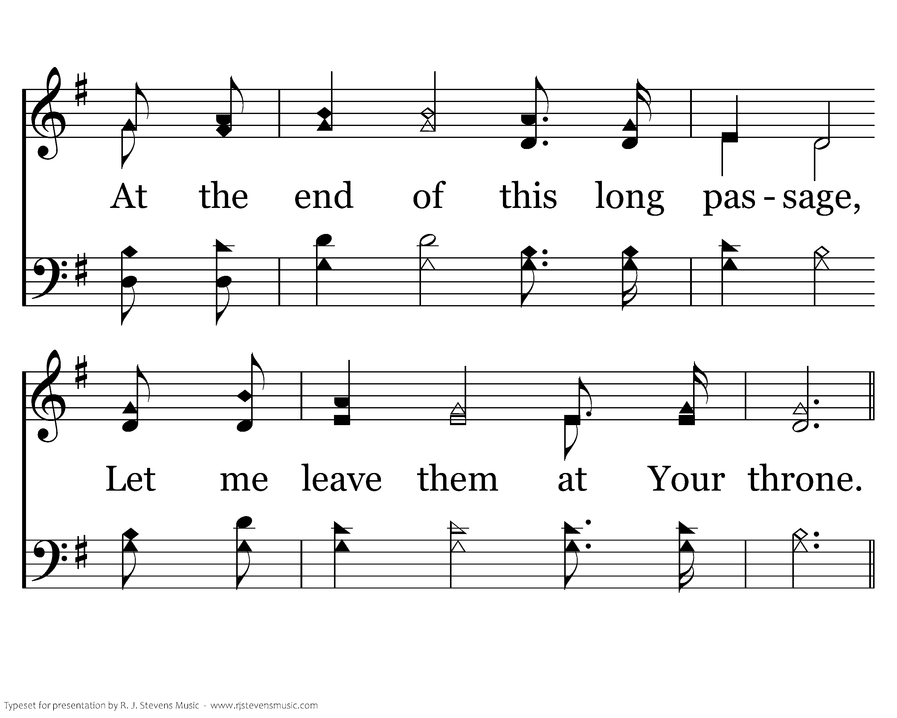 Let the treasures of the trial Form within me as I go, At the end of this long passage, Let me leave them at Your throne.