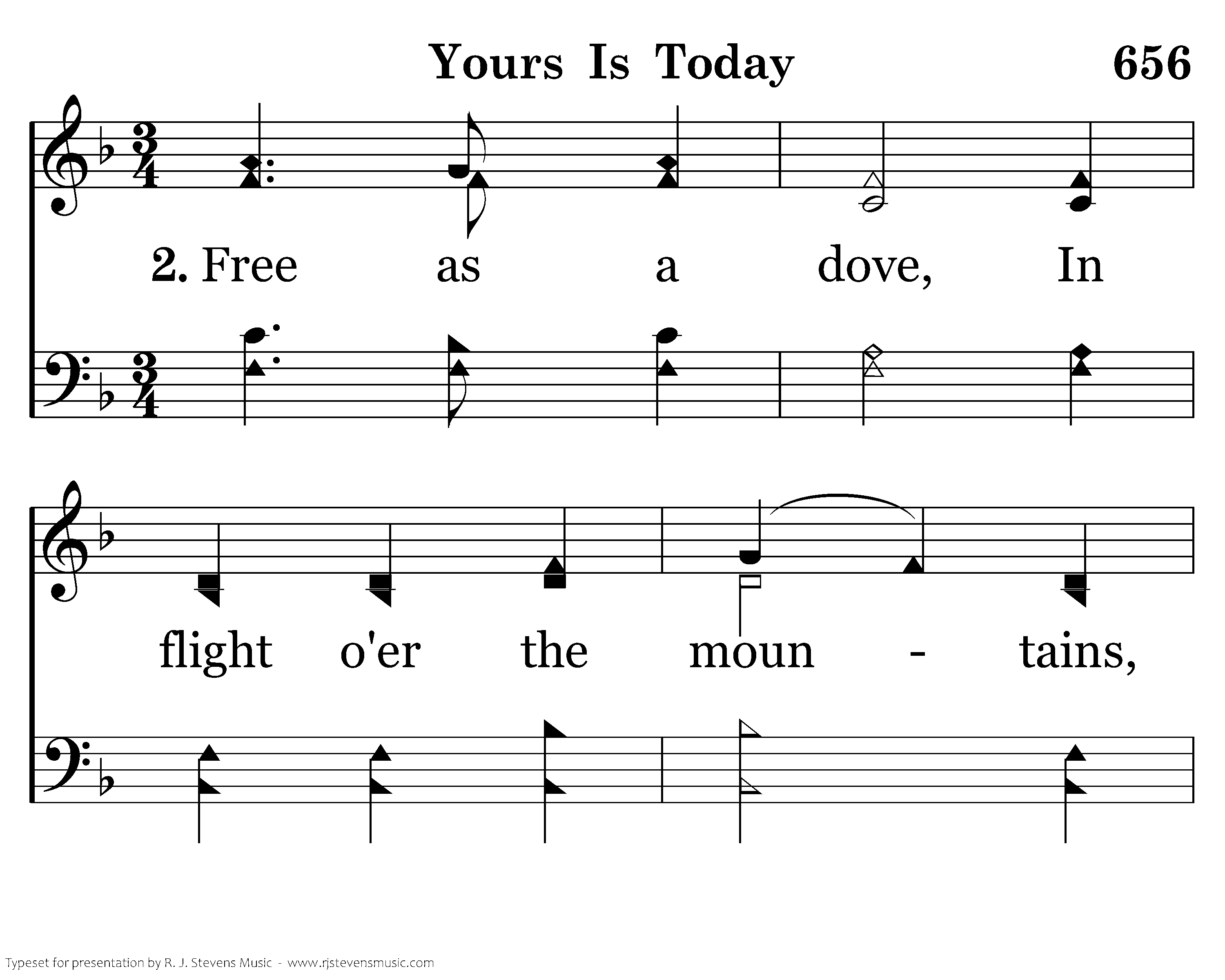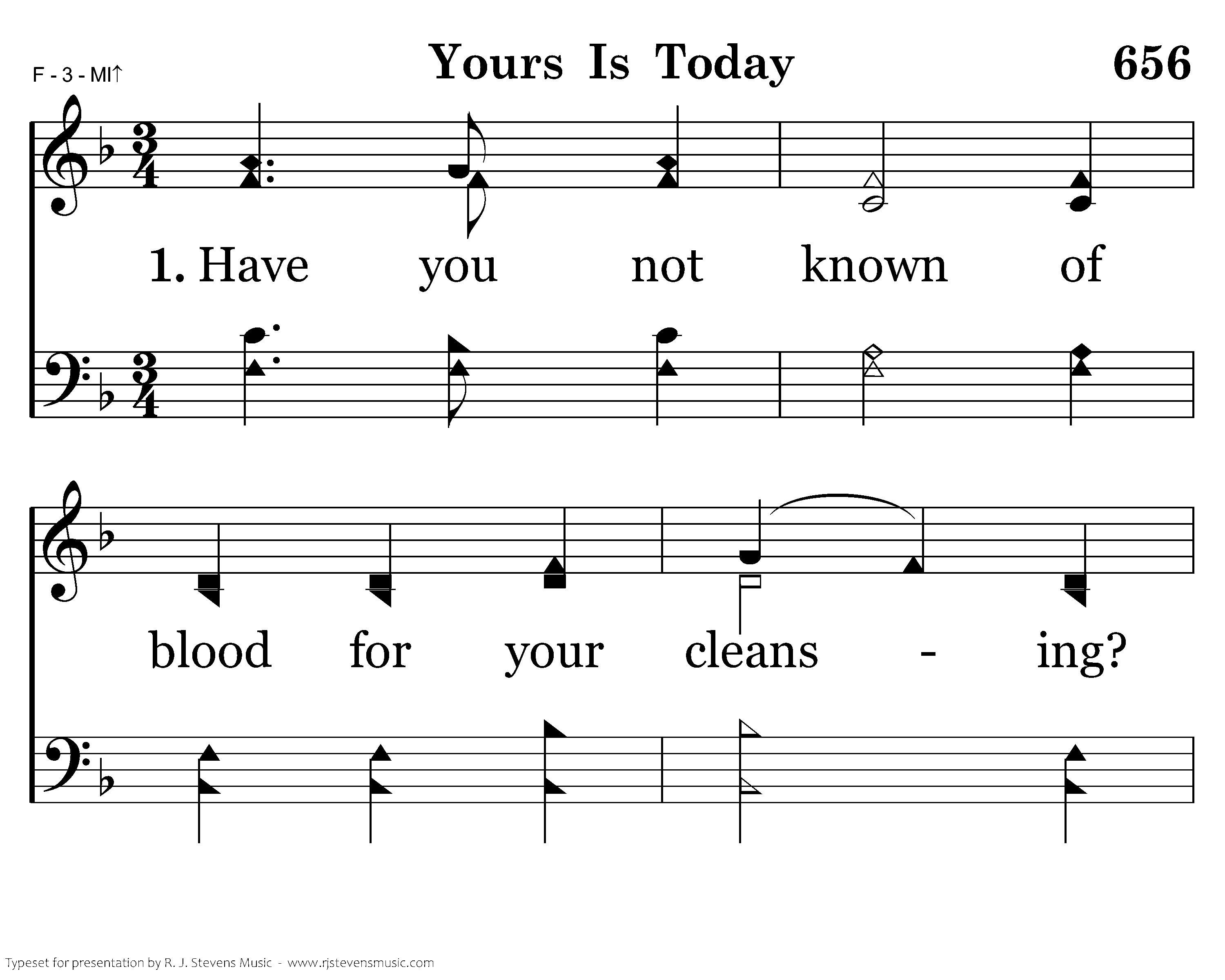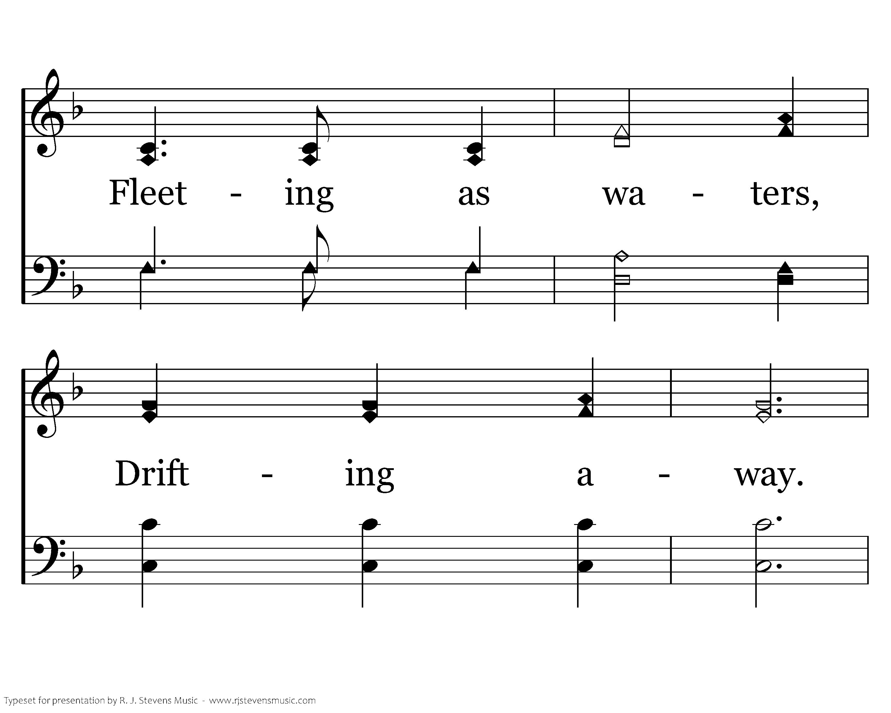 Wait not the morrow, Time is but fleeting, Fleeting as waters, Drifting away. Yours is today assured by the Master, Time for your answer, Yours is today. Time for your answer, Yours is today.