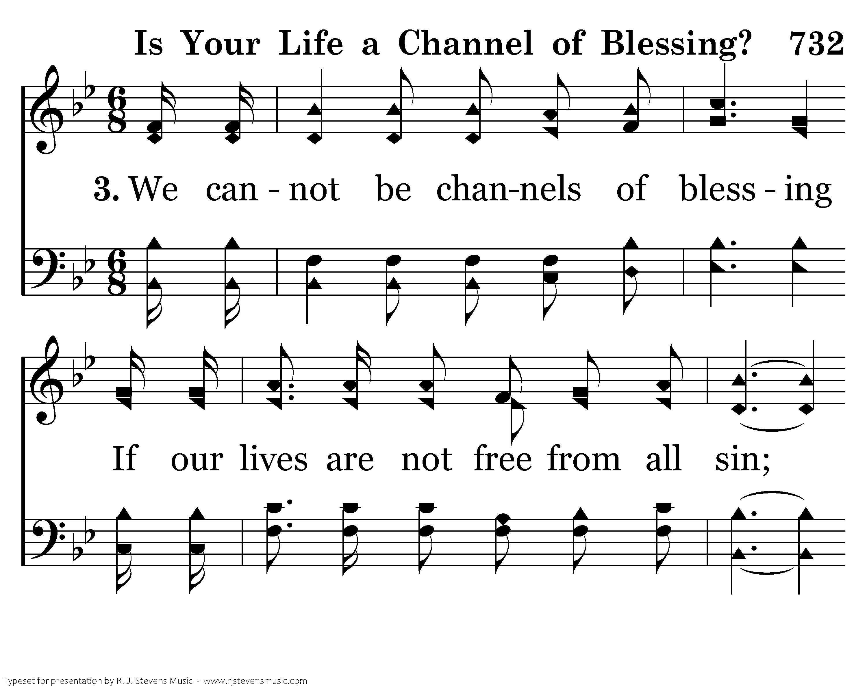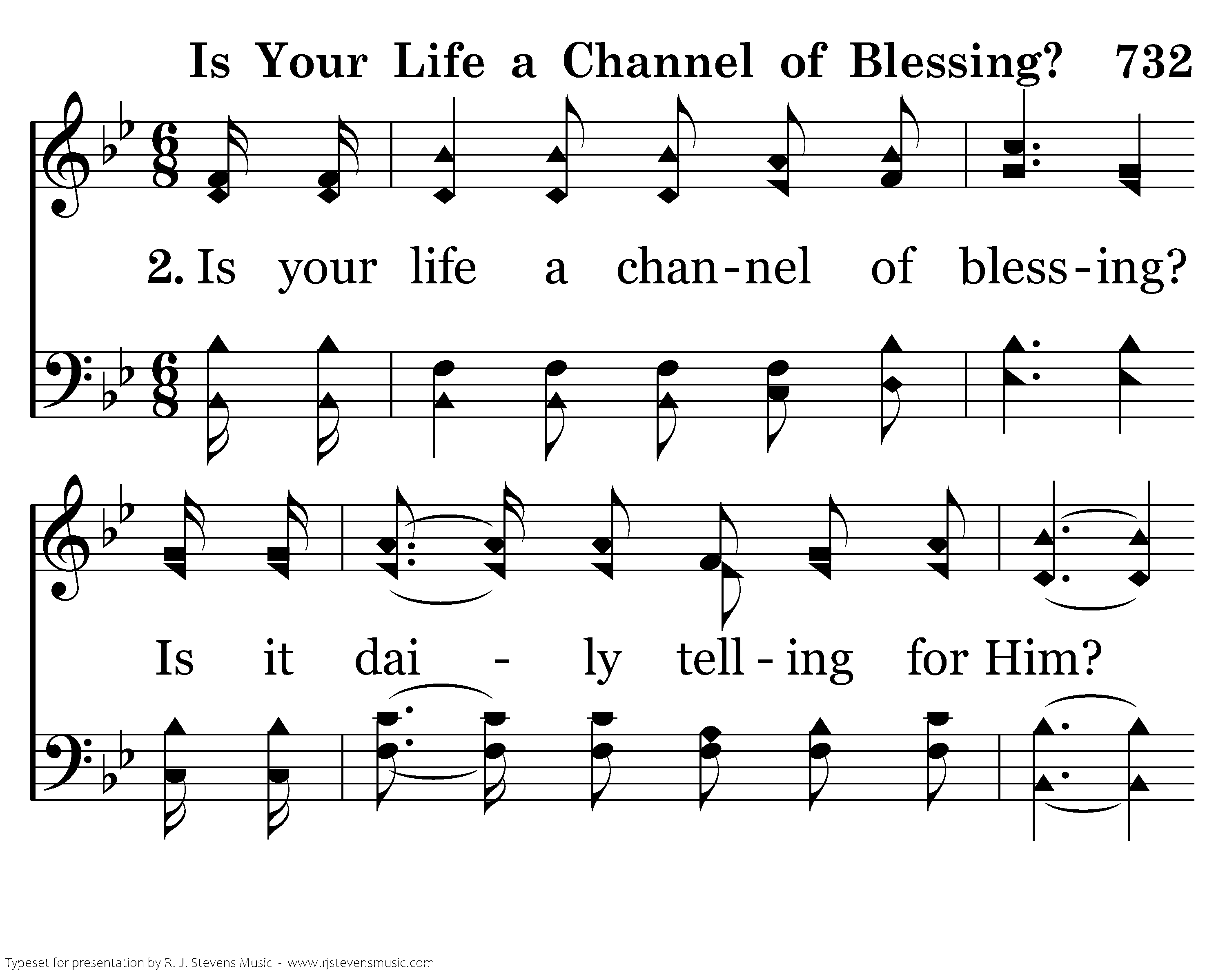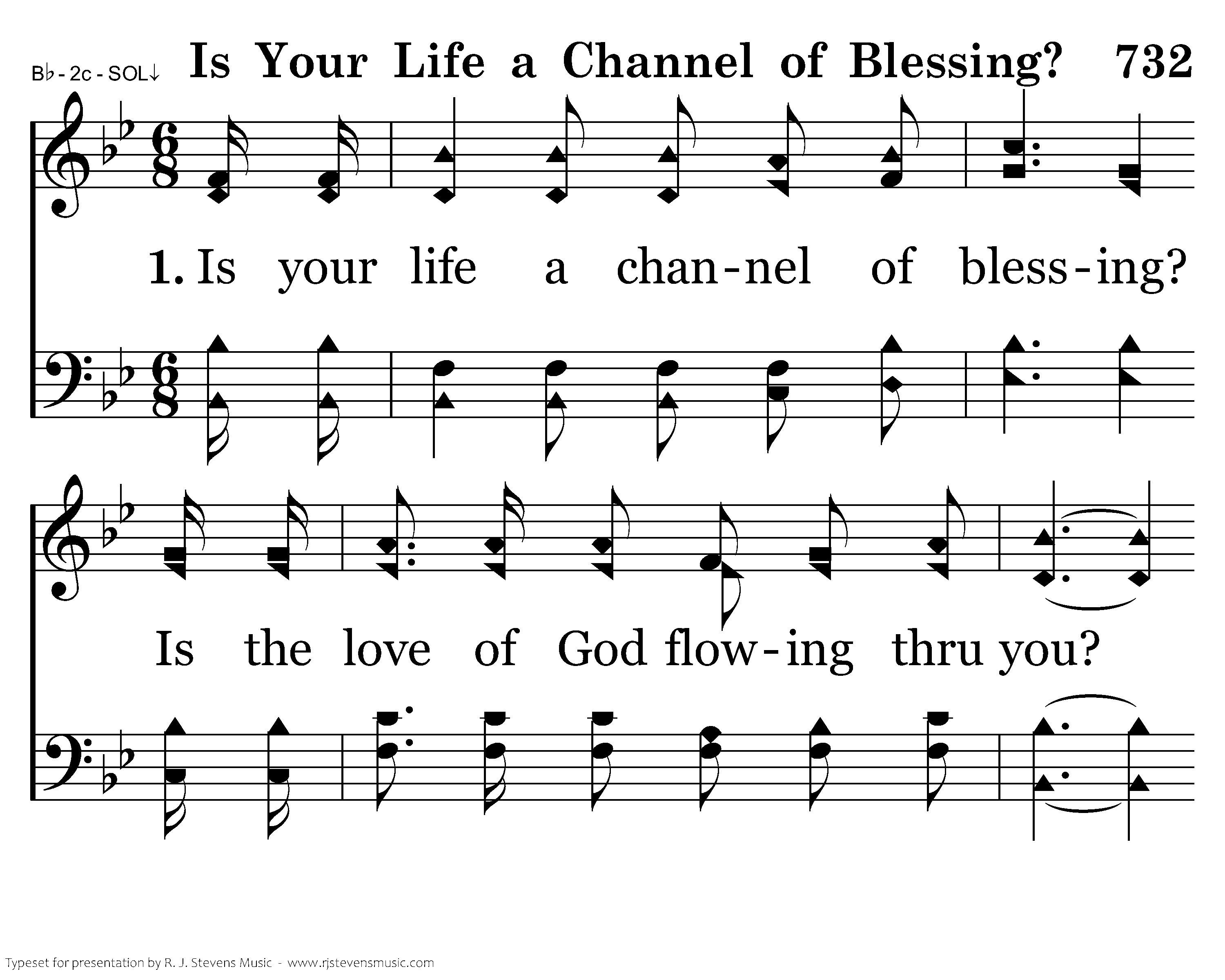 Is your life a channel of blessing? Is the love of God flowing thru you? Are you telling the lost of the Savior? Are you ready His service to do?