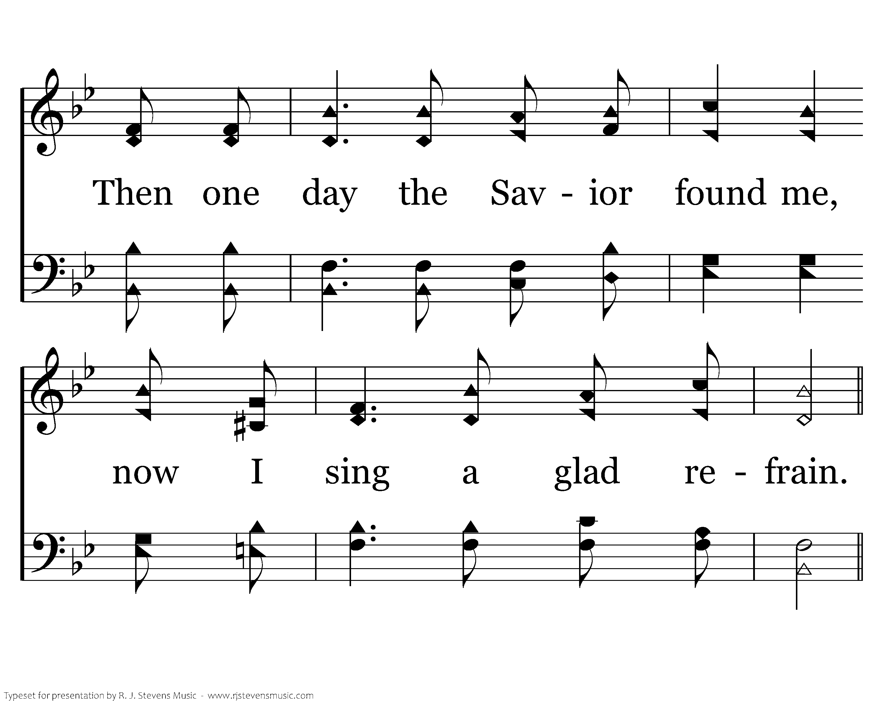 My sins were e'er before me, brought me guilt and endless pain. Then one day the Savior found me, now I sing a glad refrain.