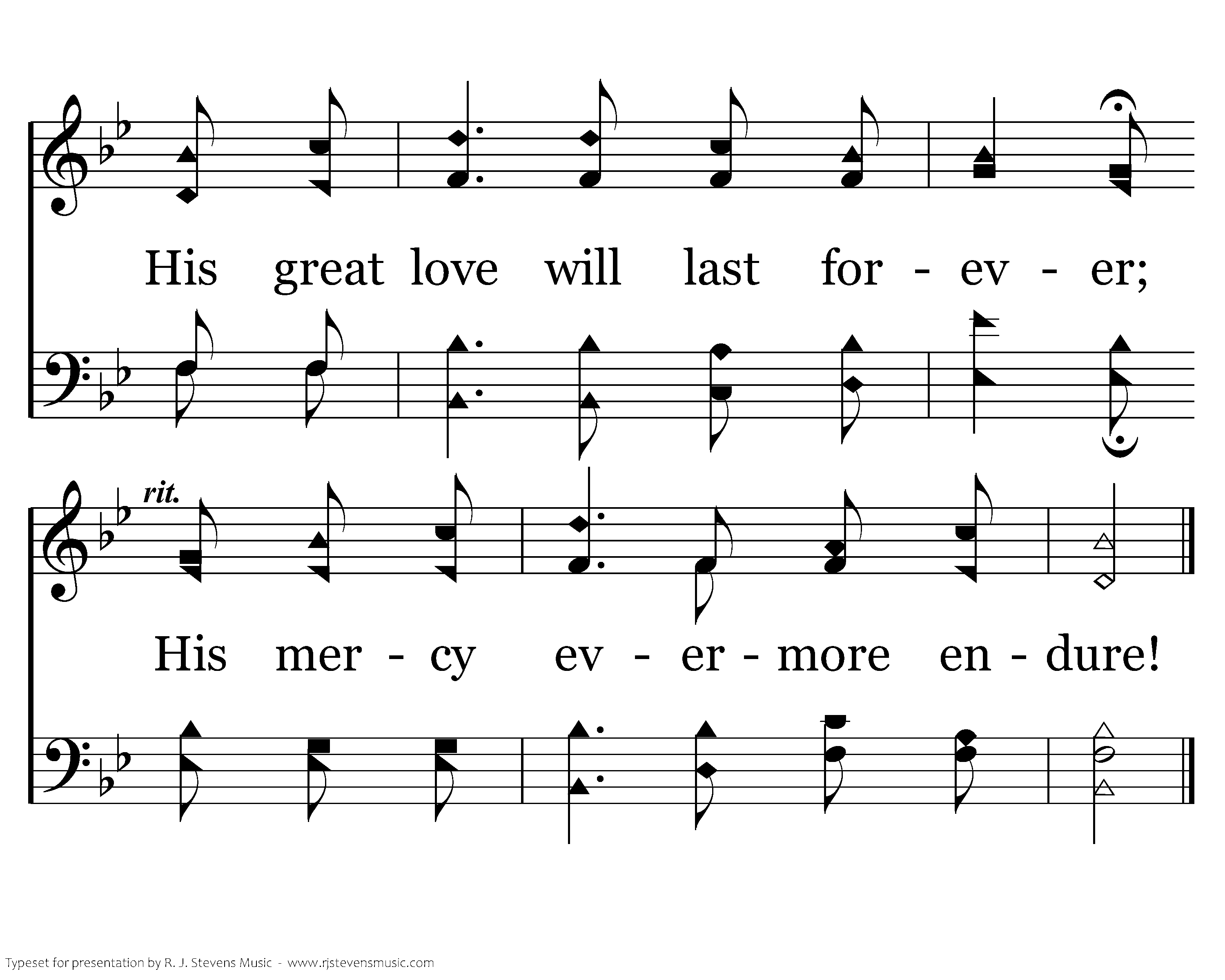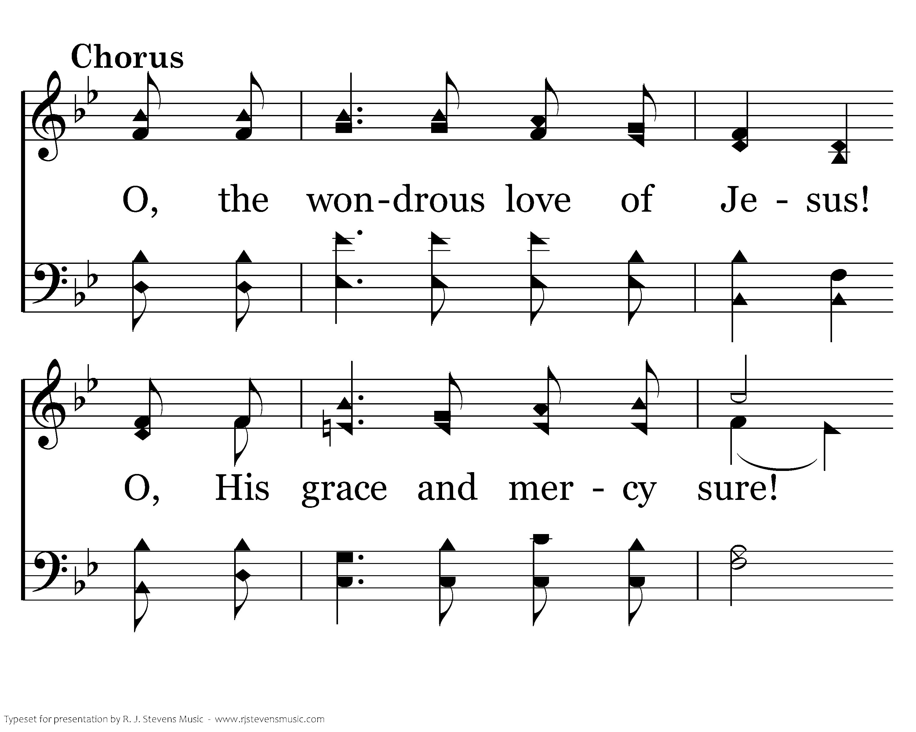 O, the wondrous love of Jesus! O, His grace and mercy sure! His great love will last forever; His mercy evermore endure!