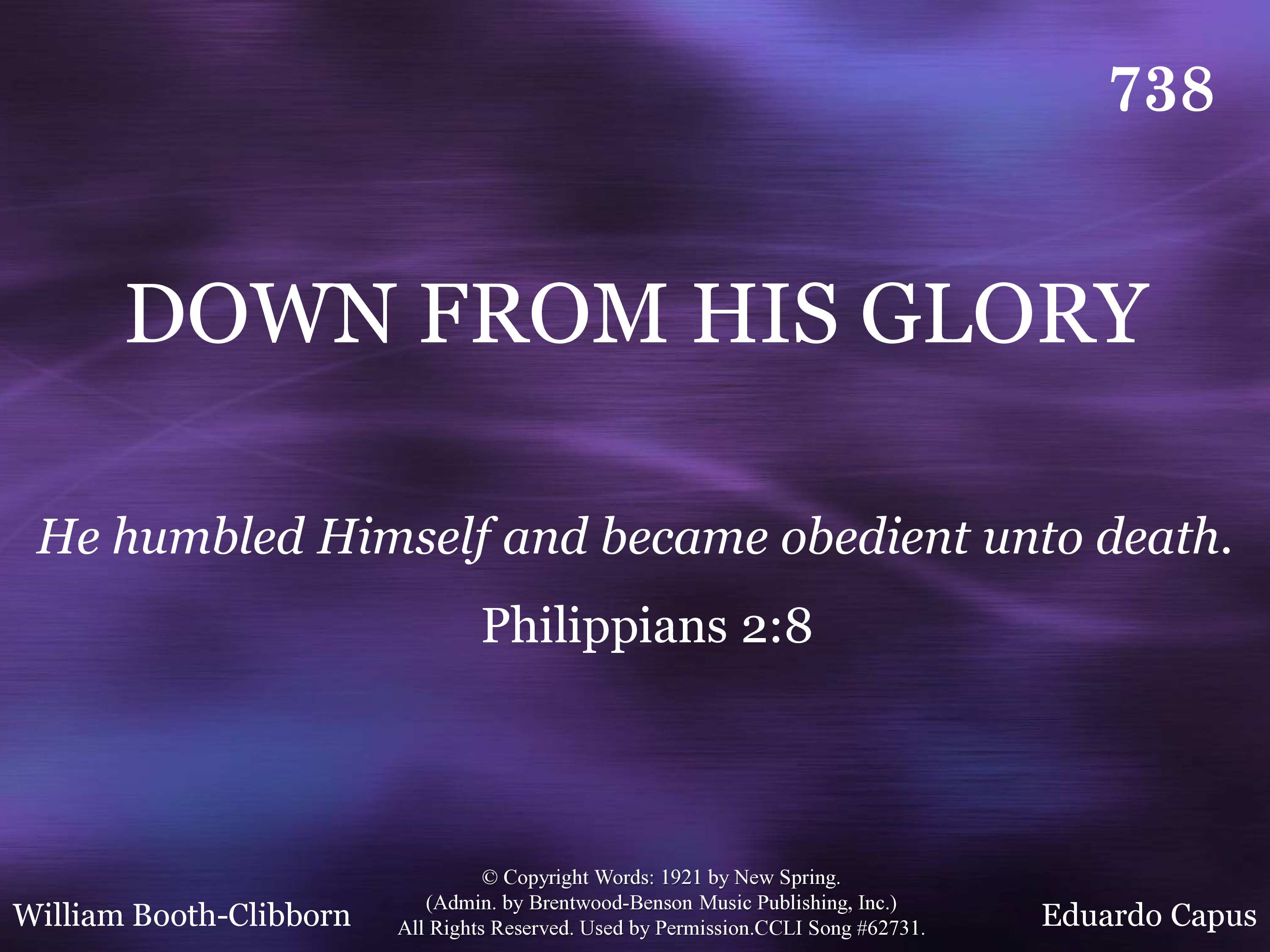 | Title | DOWN FROM HIS GLORY |