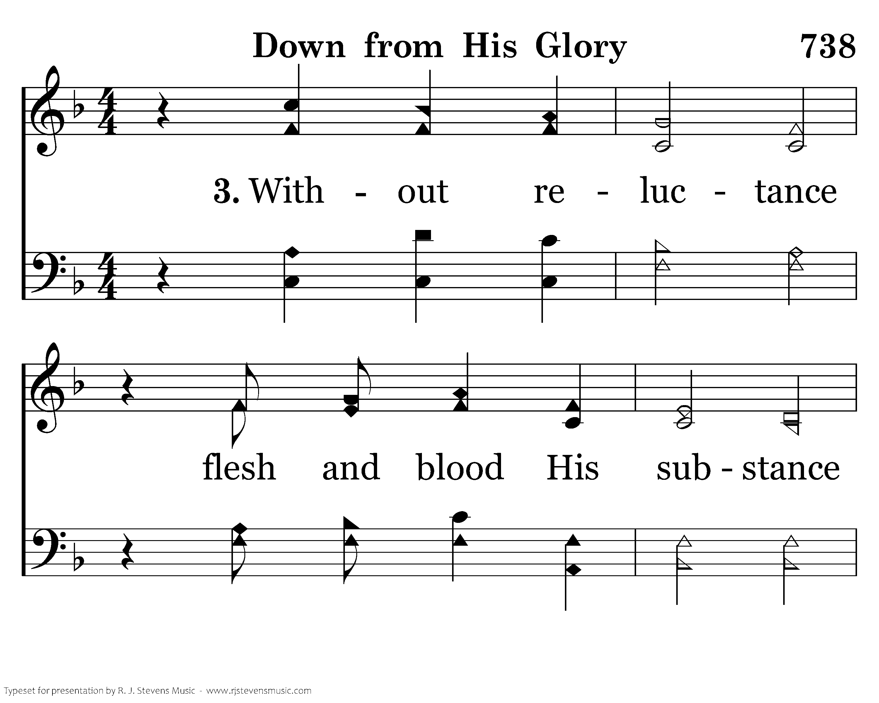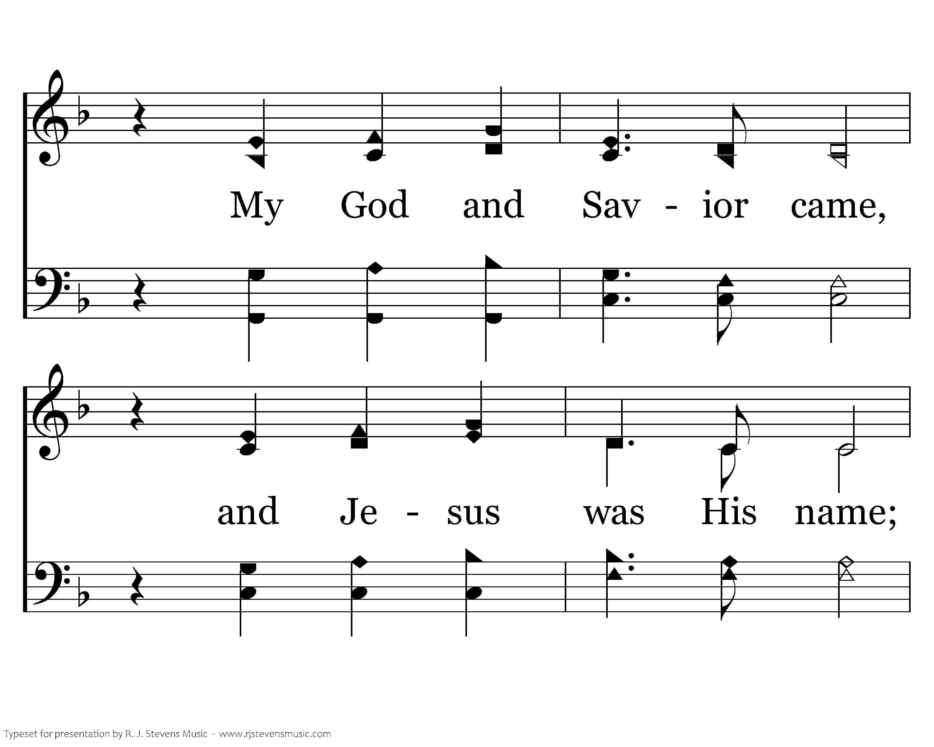 Down from his glory everliving story My God and Savior came, and Jeus was His name; Born in a manger to His own a stranger, A man of sorrows, tears and agony!