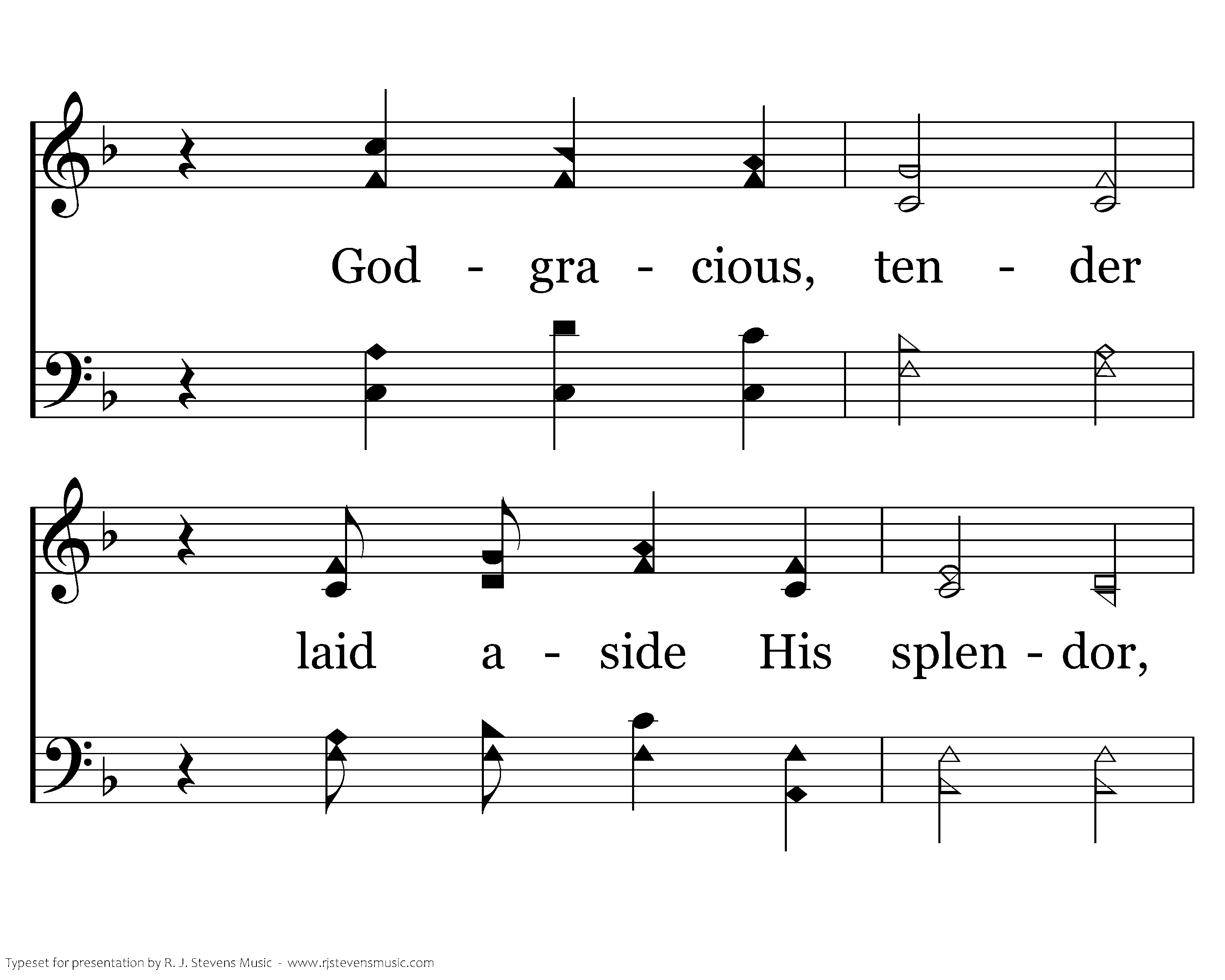 What condescension, bringing us redemption, That in the dead of night, not one faint hope in sight, God gracious, tender laid aside His splendor, Stooping to woo, to win, to save my soul!