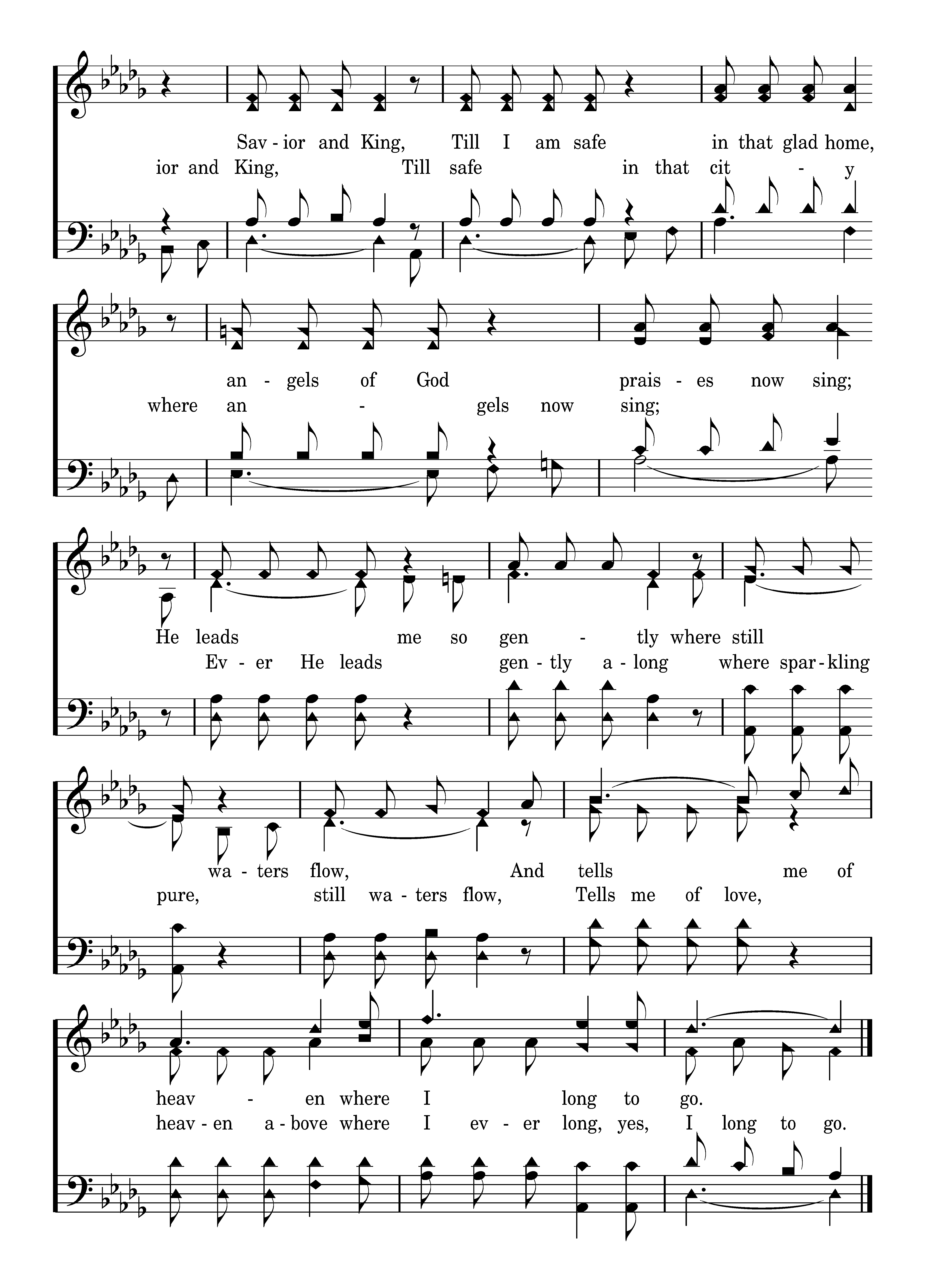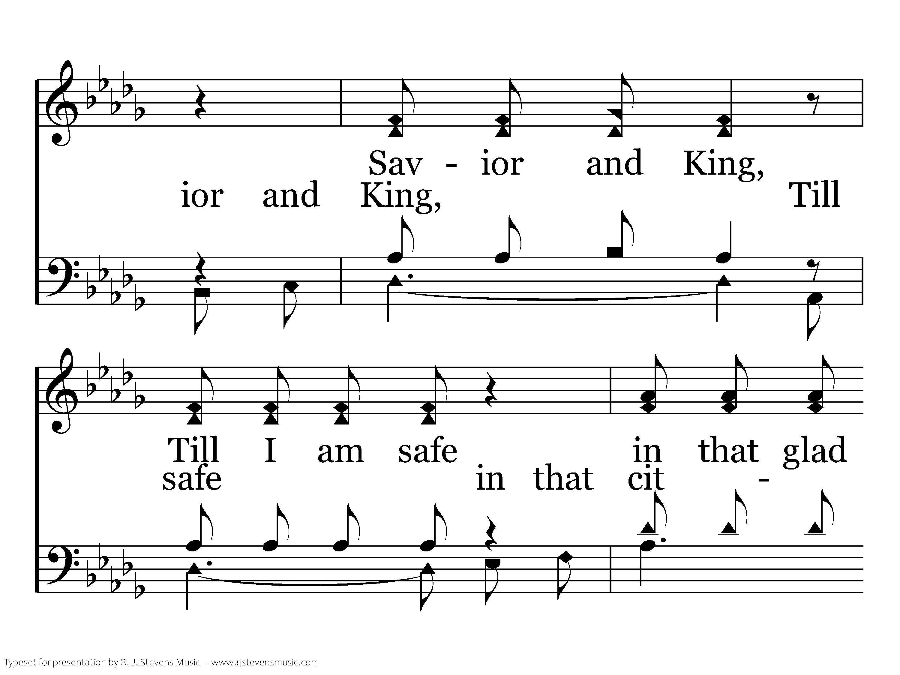 I hold to the hand of my Savior and King, Till safe in that city where angels now sing; He leads me so gently where pure waters flow, And tells me of heaven where I long to go.