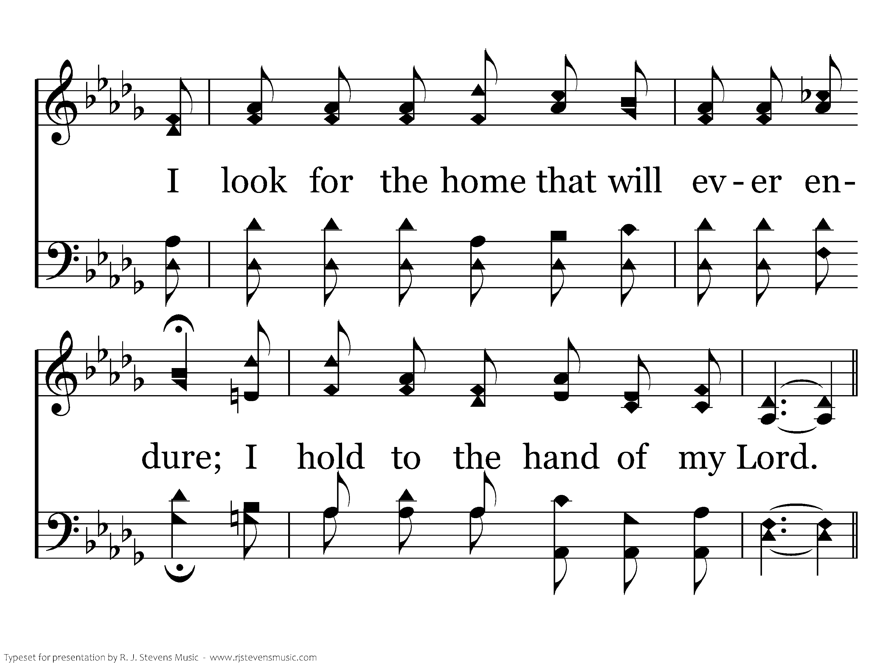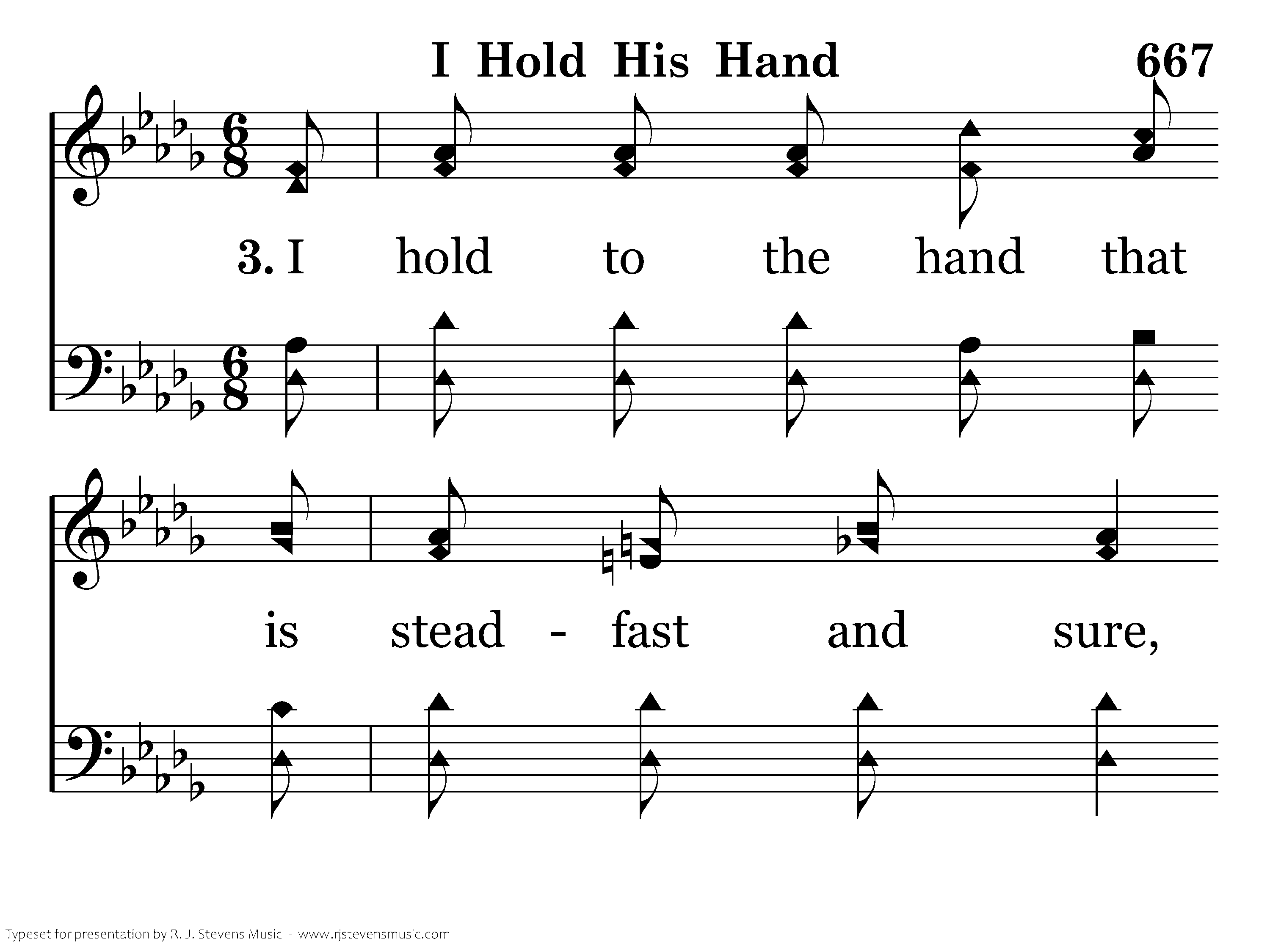I hold to the hand that is steadfast and sure, No other foundation is ever secure, I look for the home that will ever endure; I hold to the hand of my Lord.