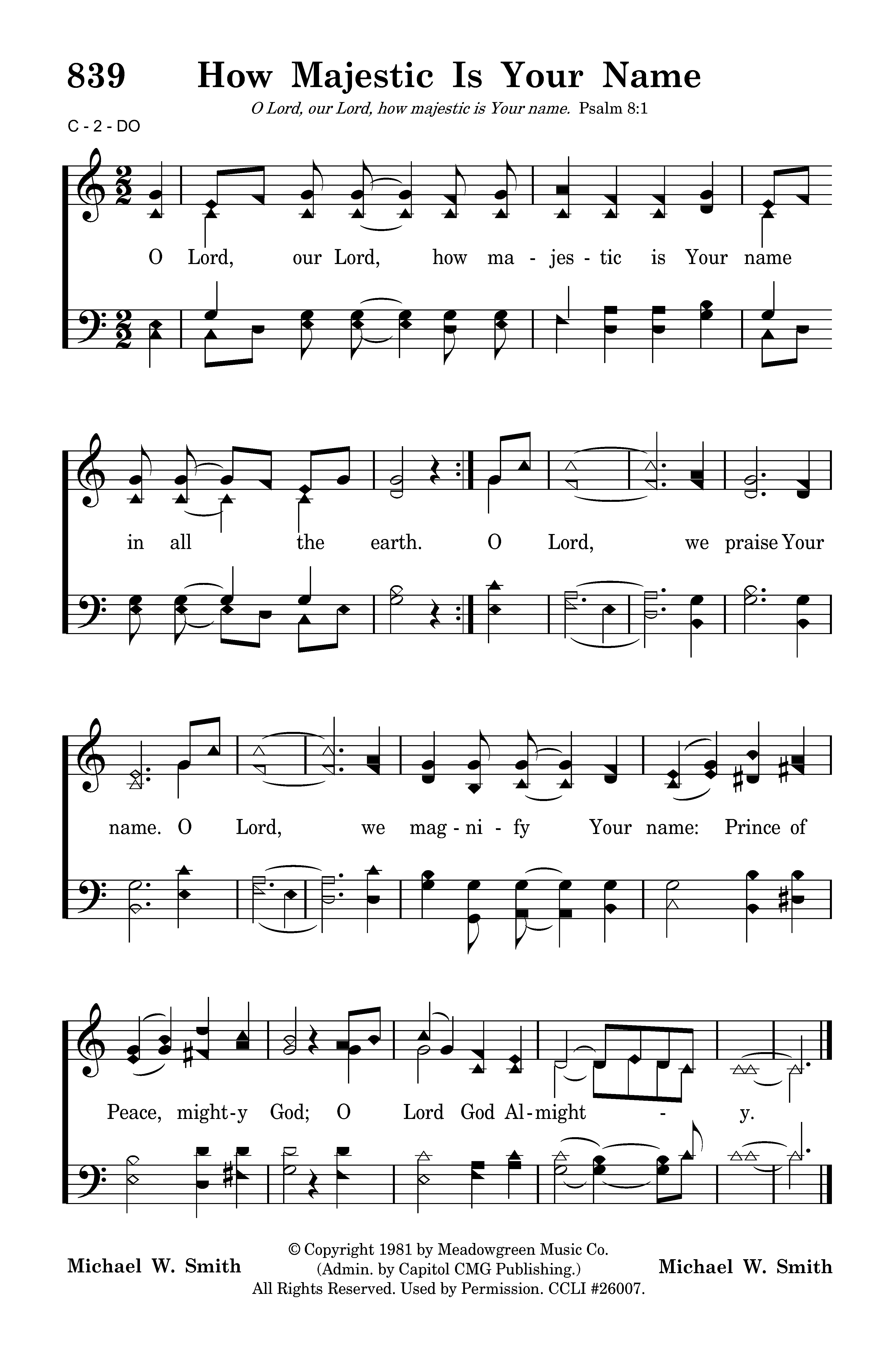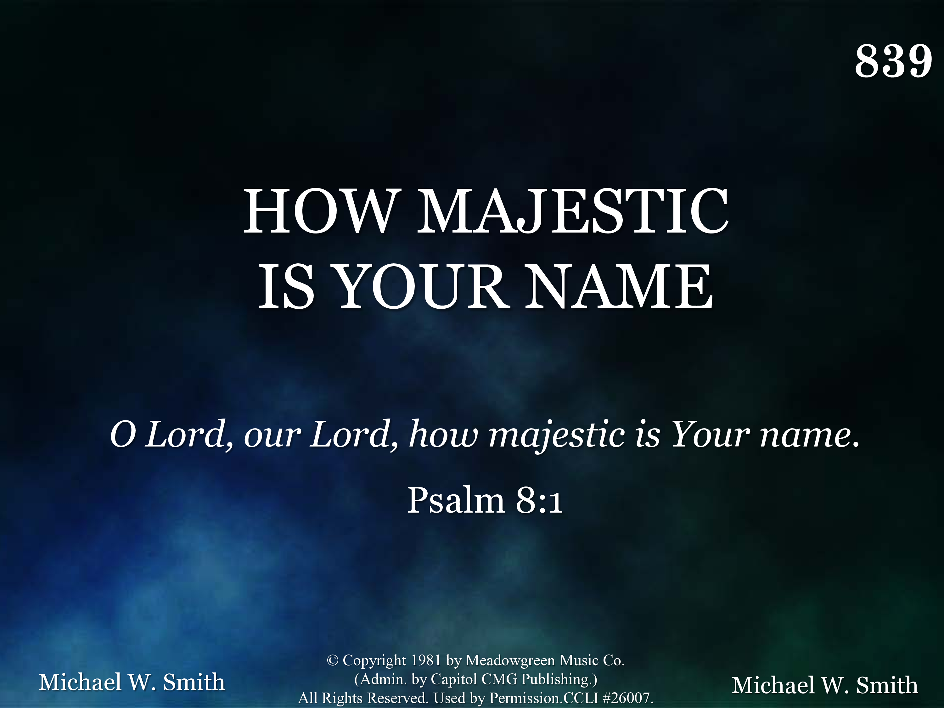 O Lord, our Lord, how majestic is Your name in all the earth. O Lord, we praise Your name. O Lord, we magnify Your name: Prince of Peace, mighty God; O Lord God Almighty