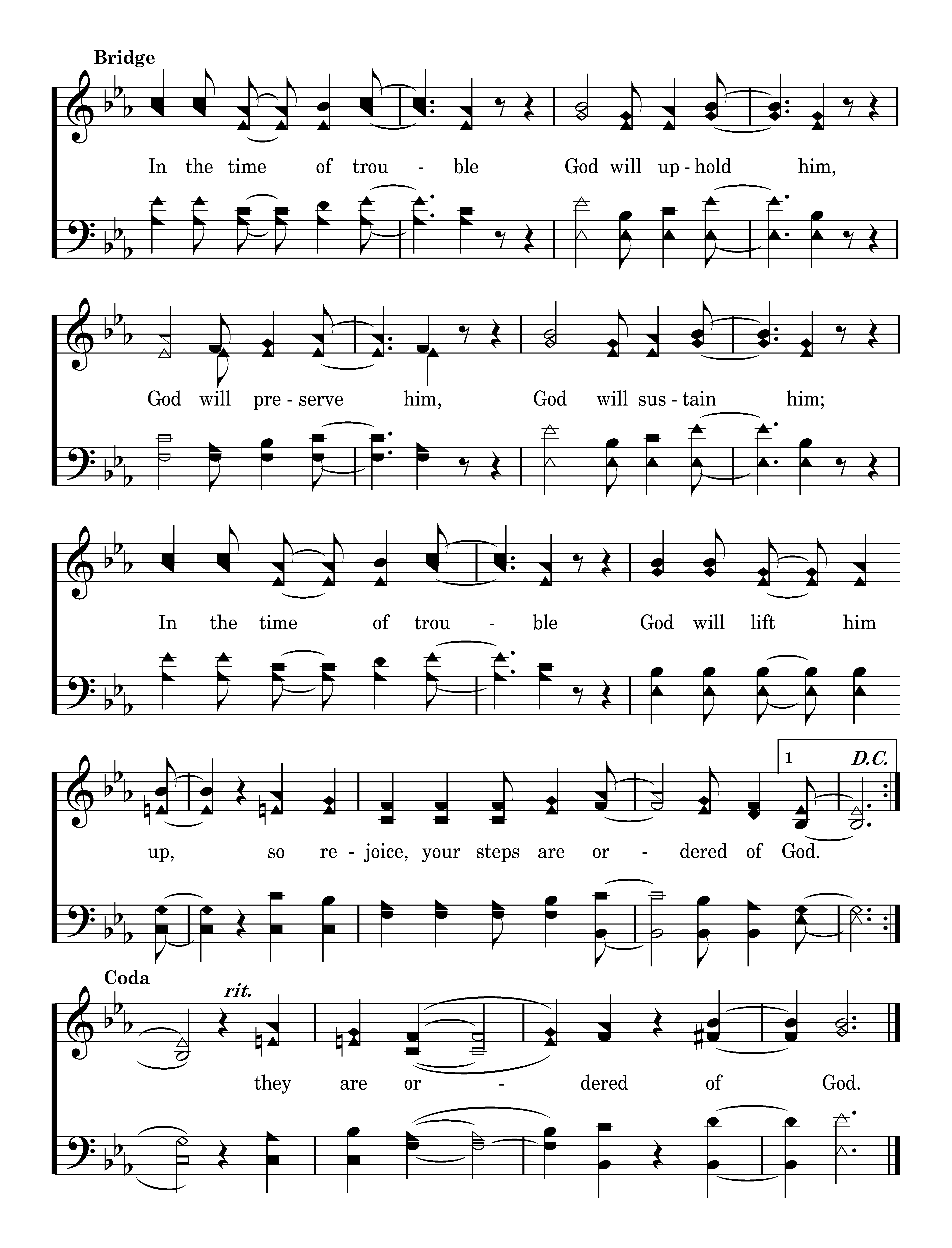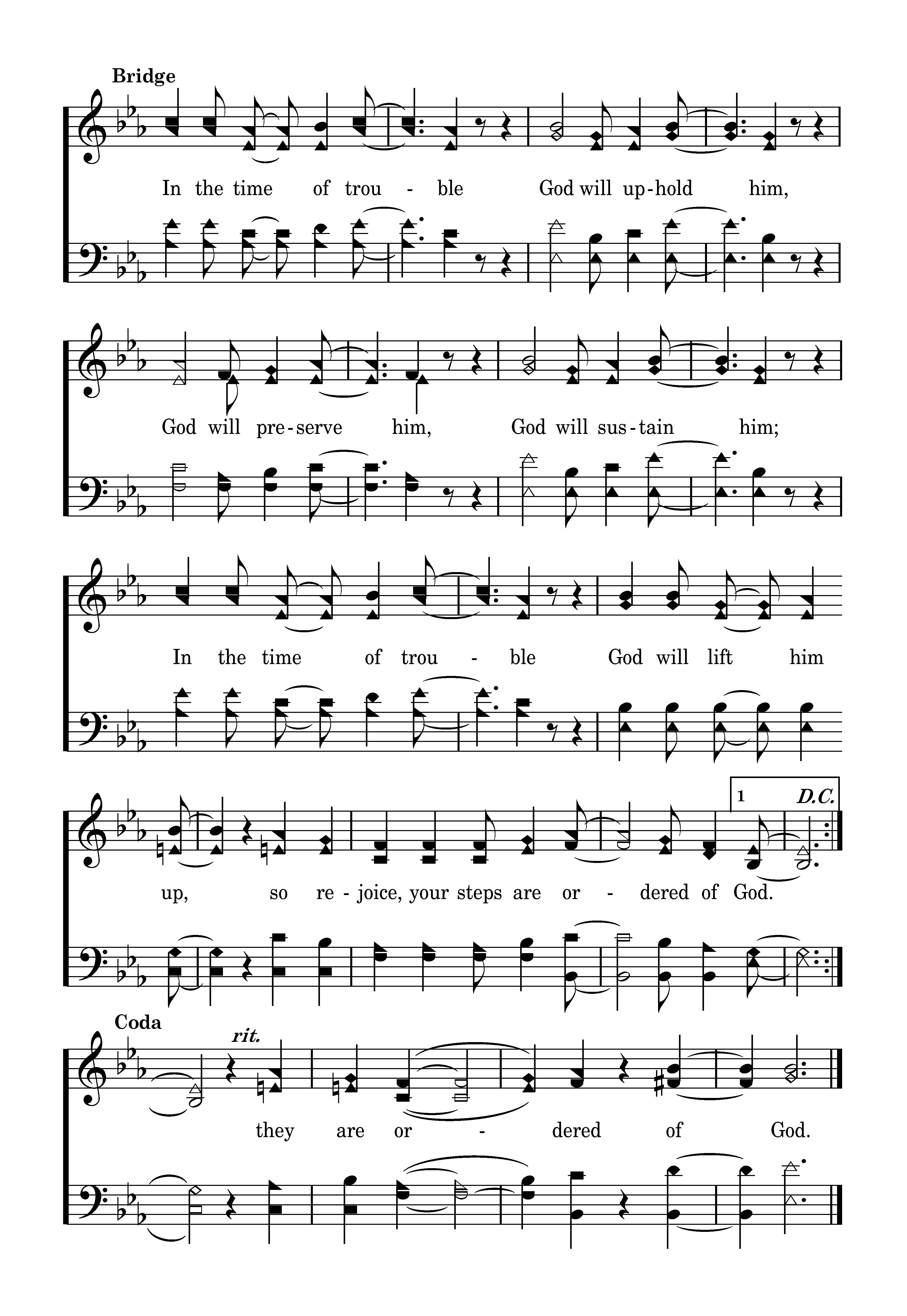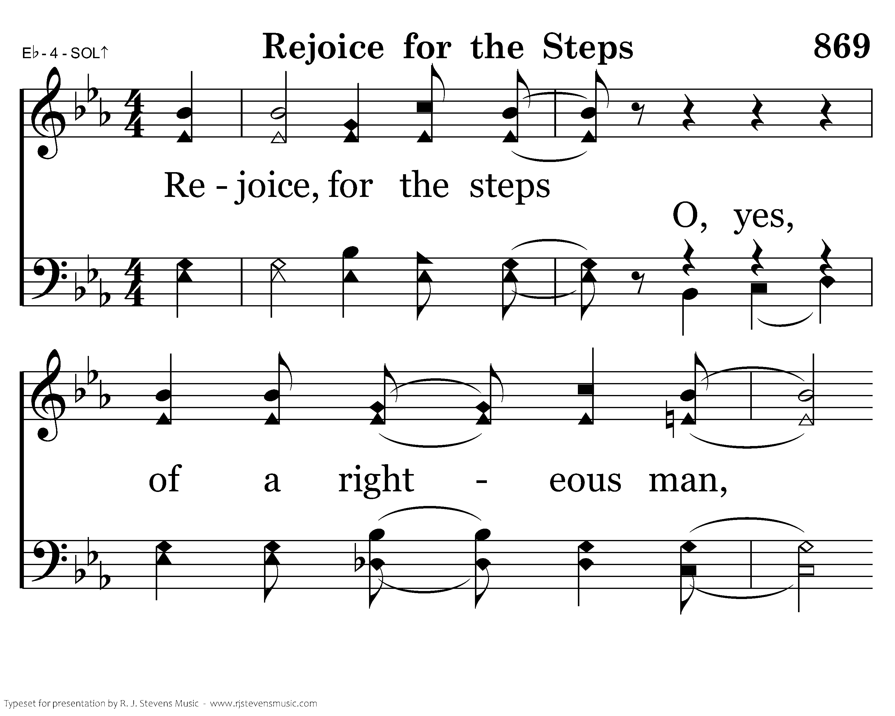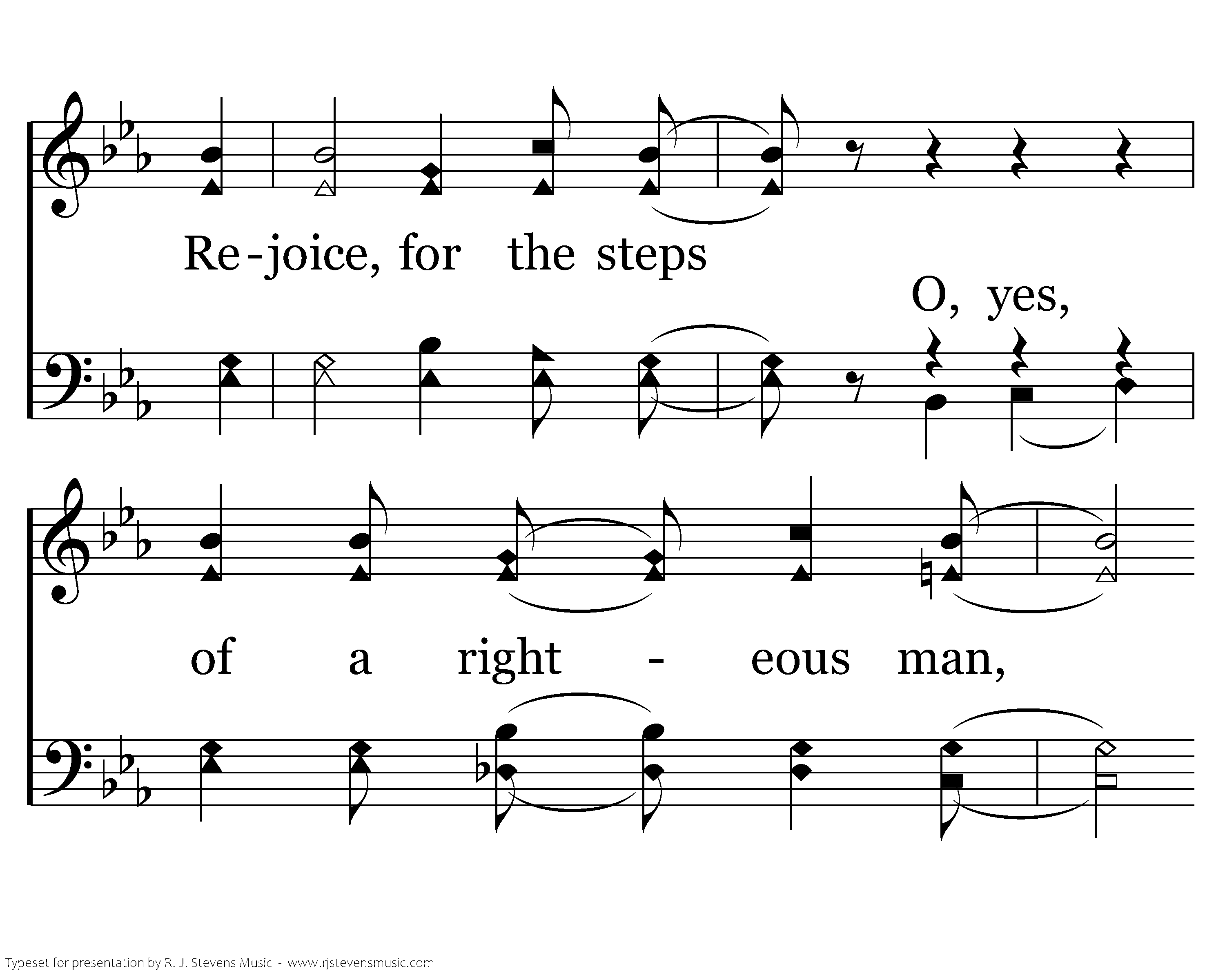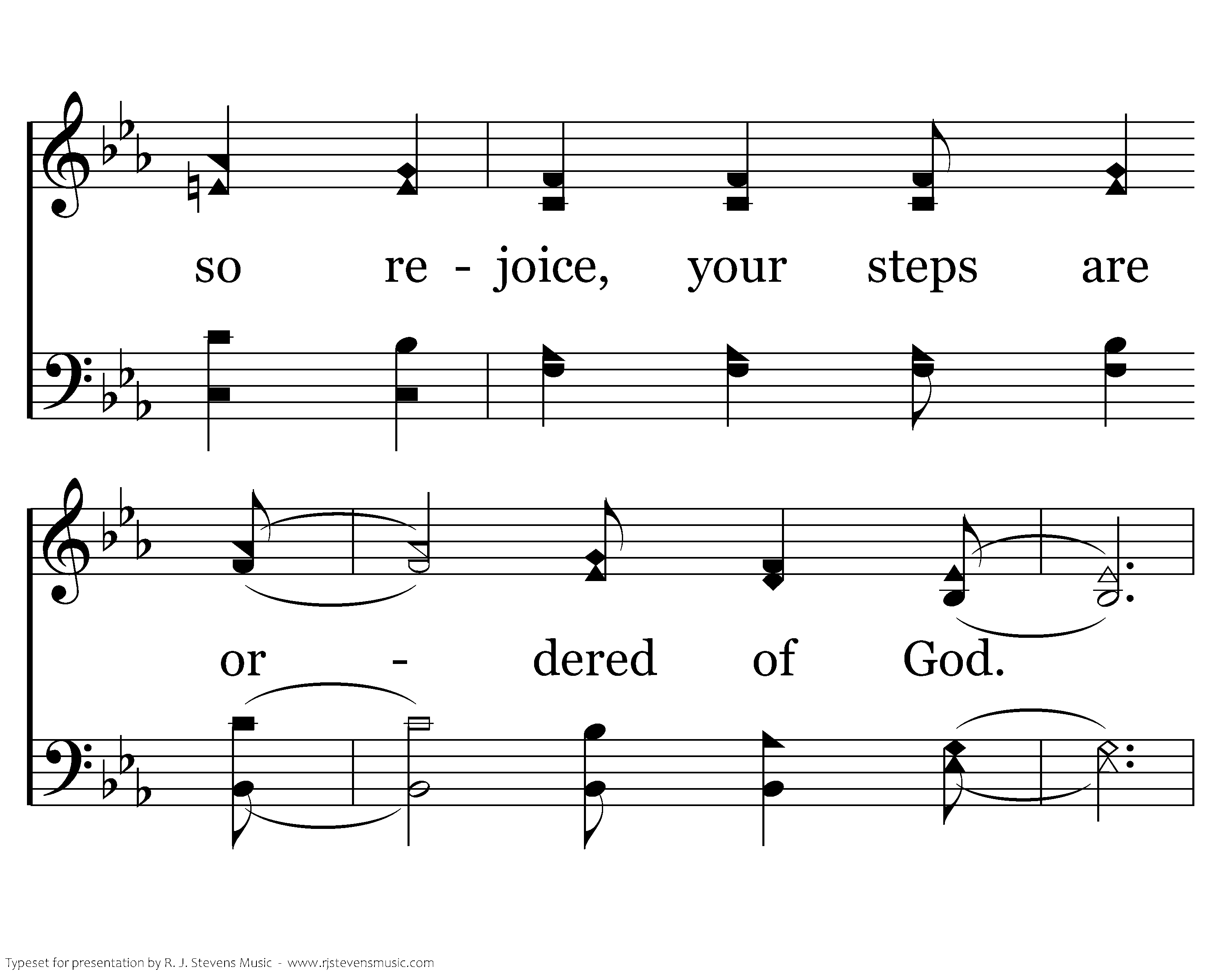 Rejoice, for the steps of a righteous man, they are ordered of God, they are ordered of God. Rejoice, for the steps of a righteous man, they are ordered of God. In the time of trouble God will uphold him, God will preserve him, God will sustain him; In the time of trouble God will lift him up, so rejoice, your steps are ordered of God.