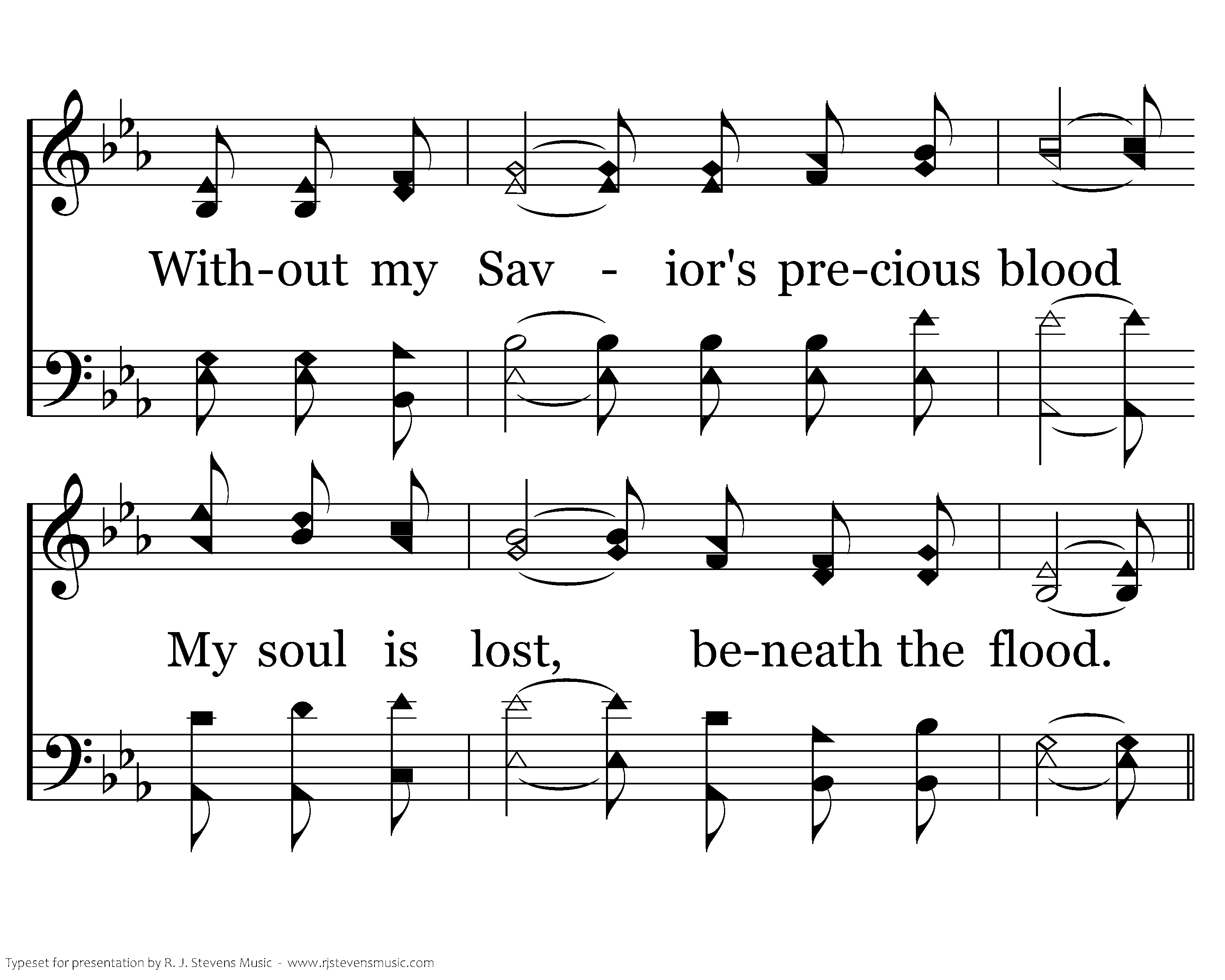 Your only Son, You gave to die, For in my sin, You heard my cry. Without my Savior's precious blood My soul is lost, beneath the flood.