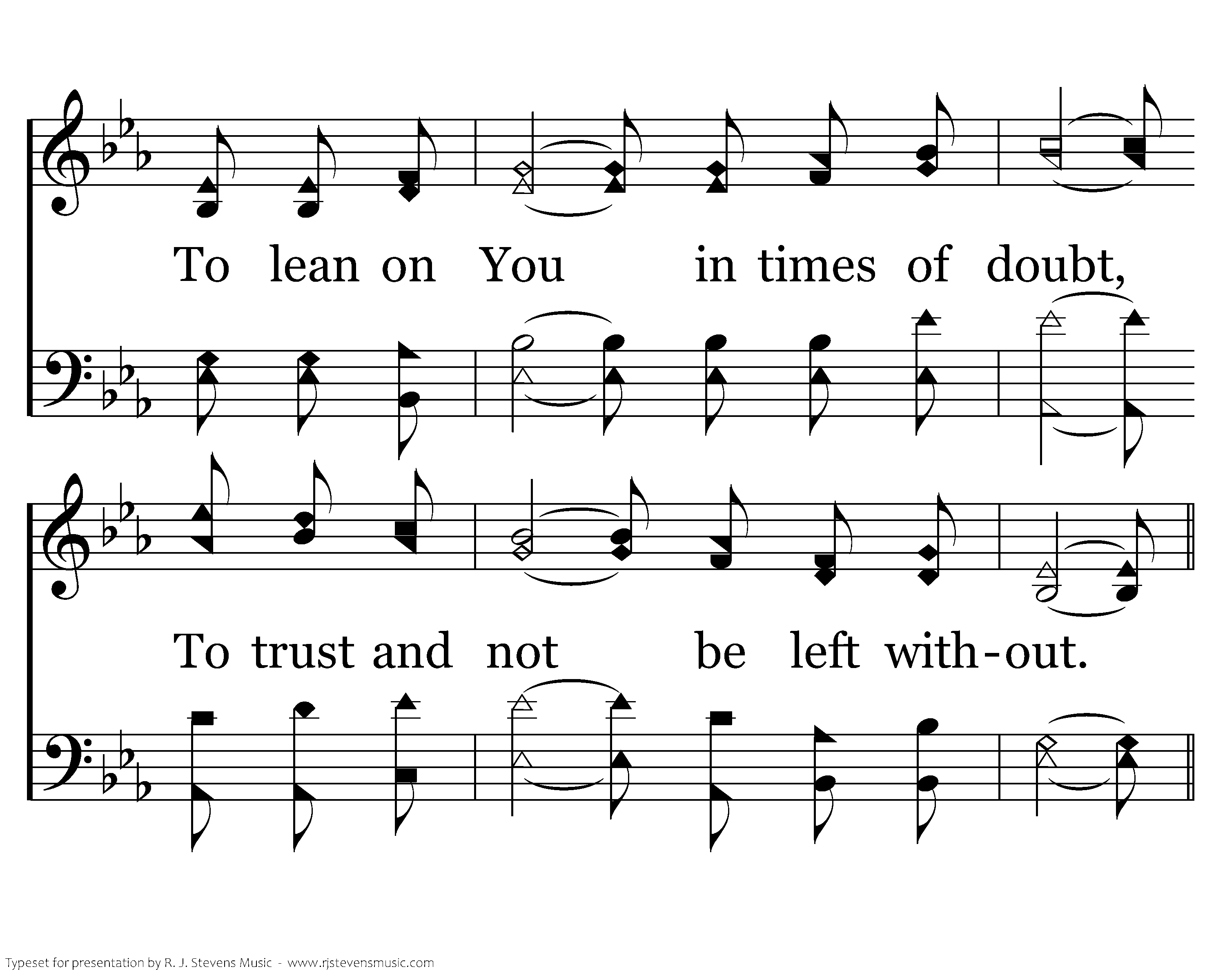 My foolish ways I cannot hide, And yet You linger at my side; To lean on You in times of doubt, To trust and not be left without.