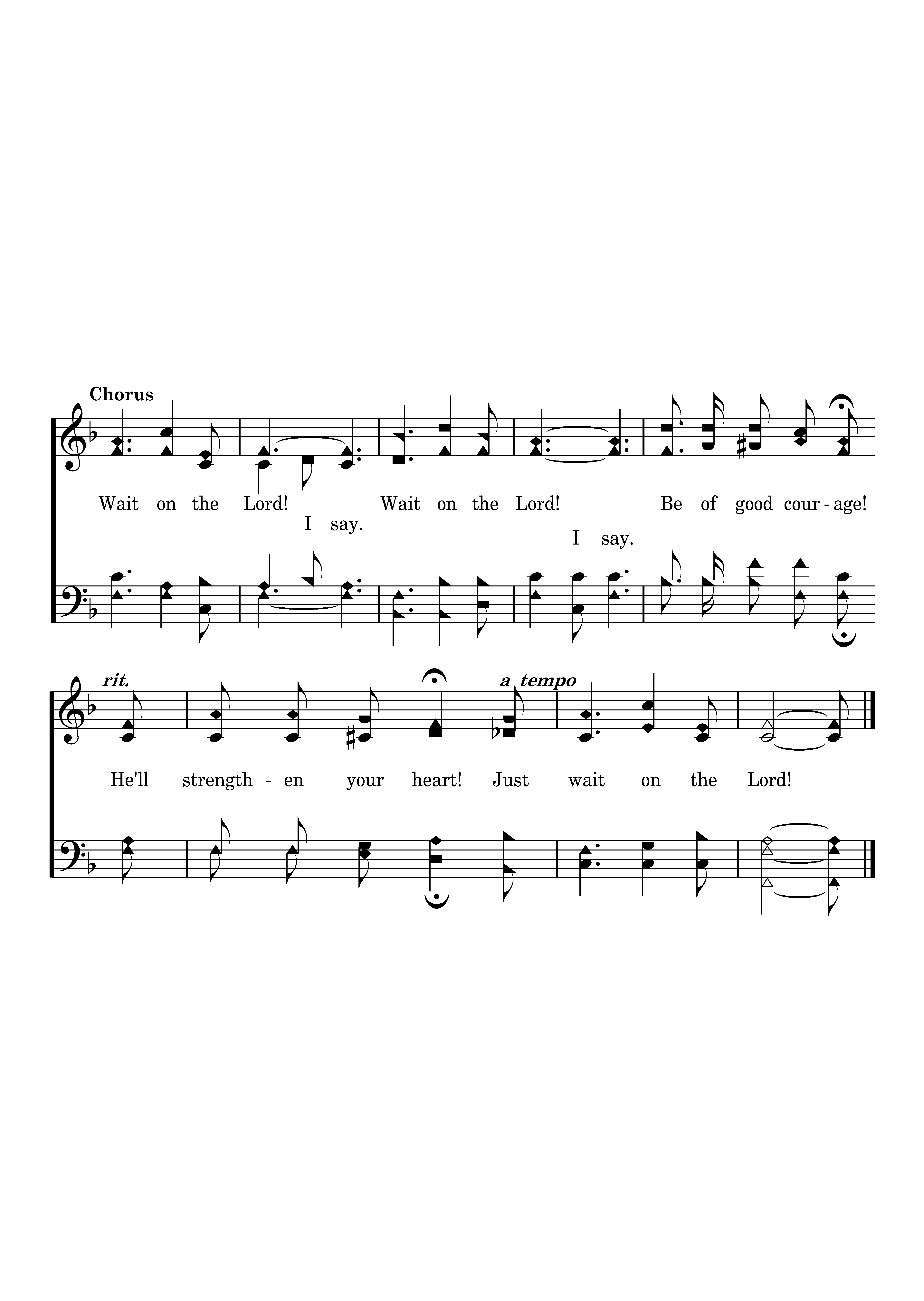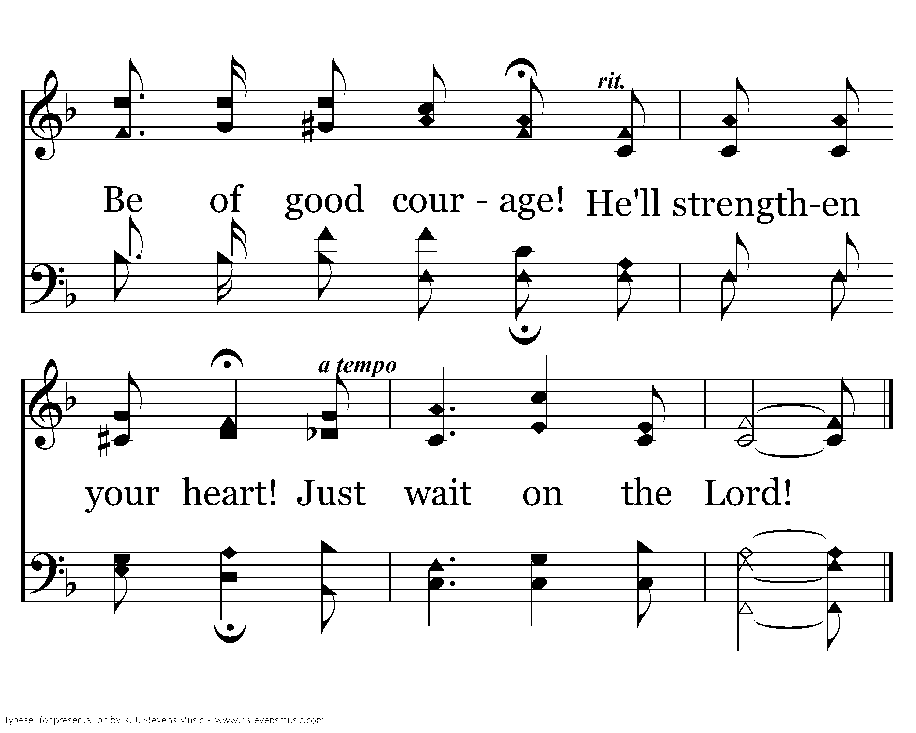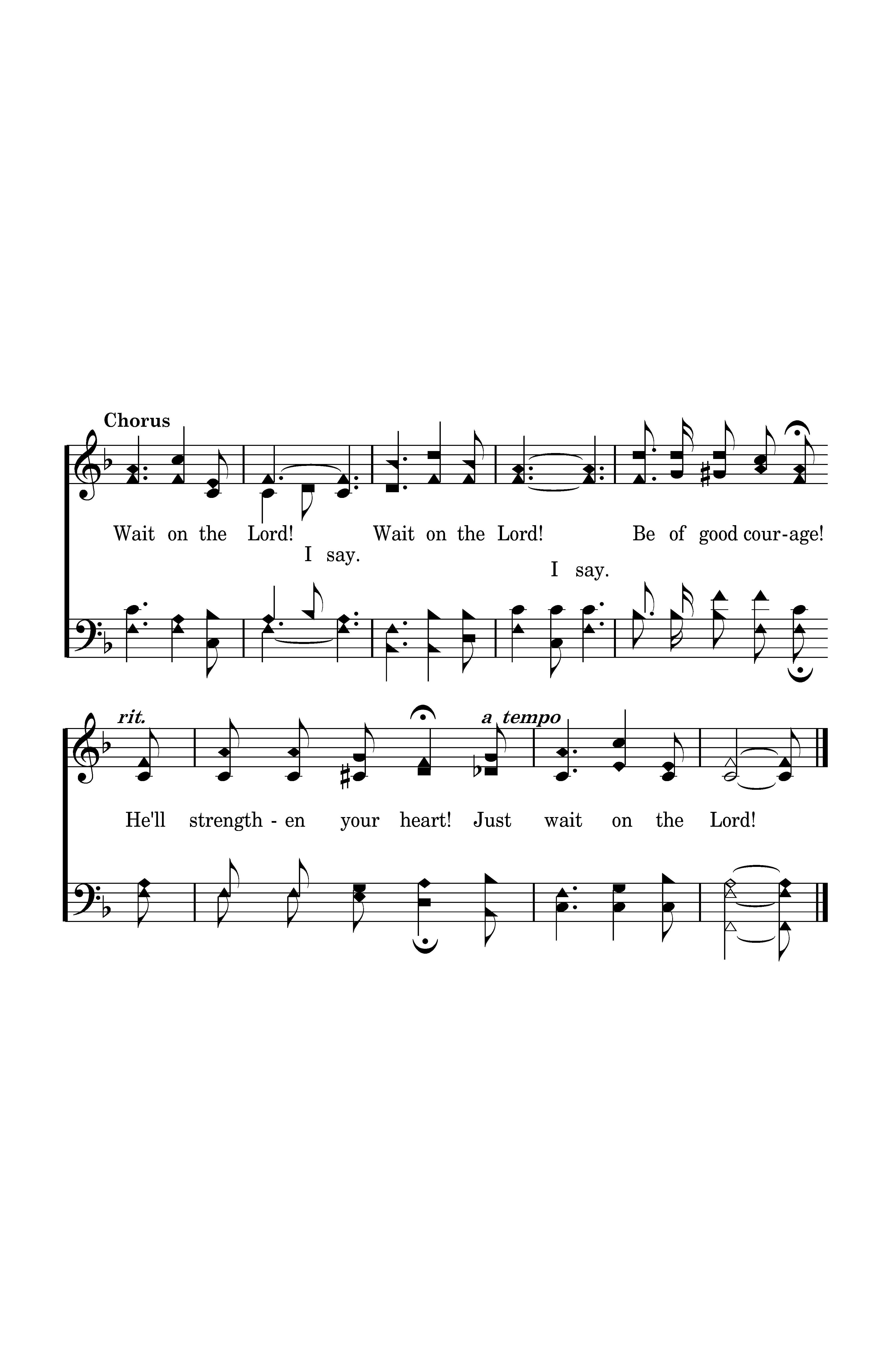Wait on the Lord! Wait on the Lord! Be of good courage! He'll strengthen your heart! Just wait on the Lord!