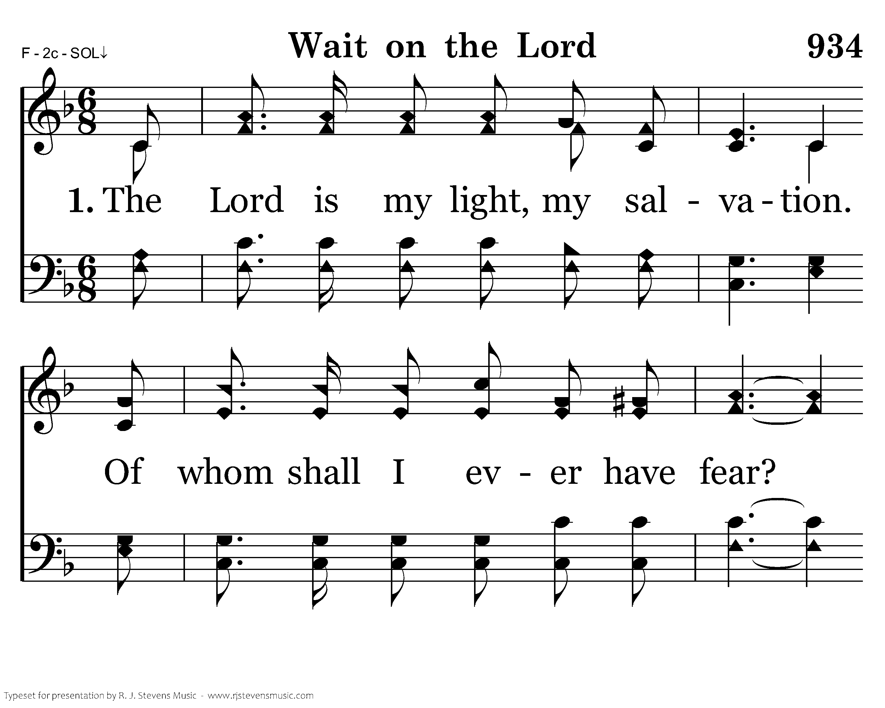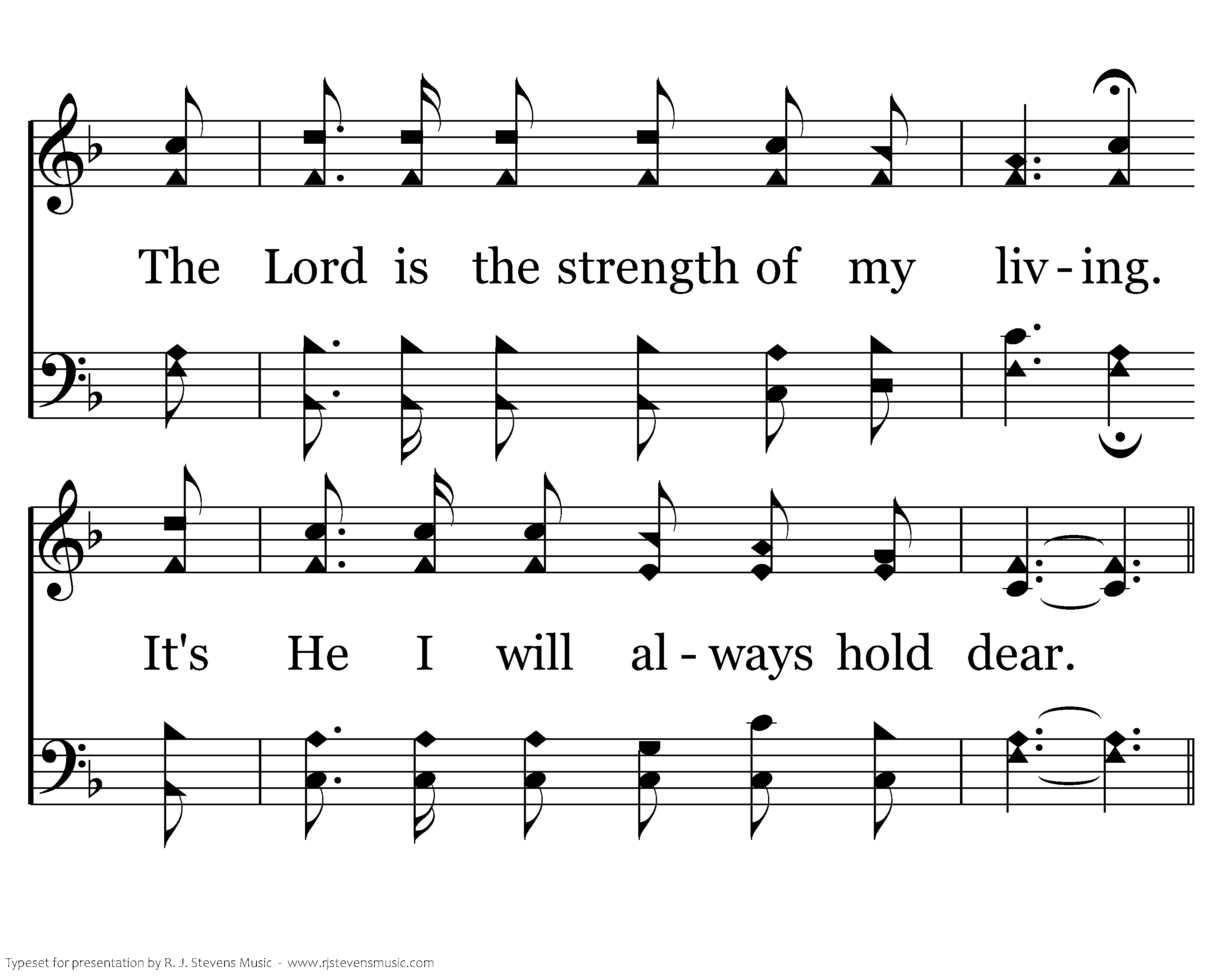 The Lord is my light, my salvation. Of whom shall I ever have fear? The Lord is the strength of my living. It's He I will always hold dear.