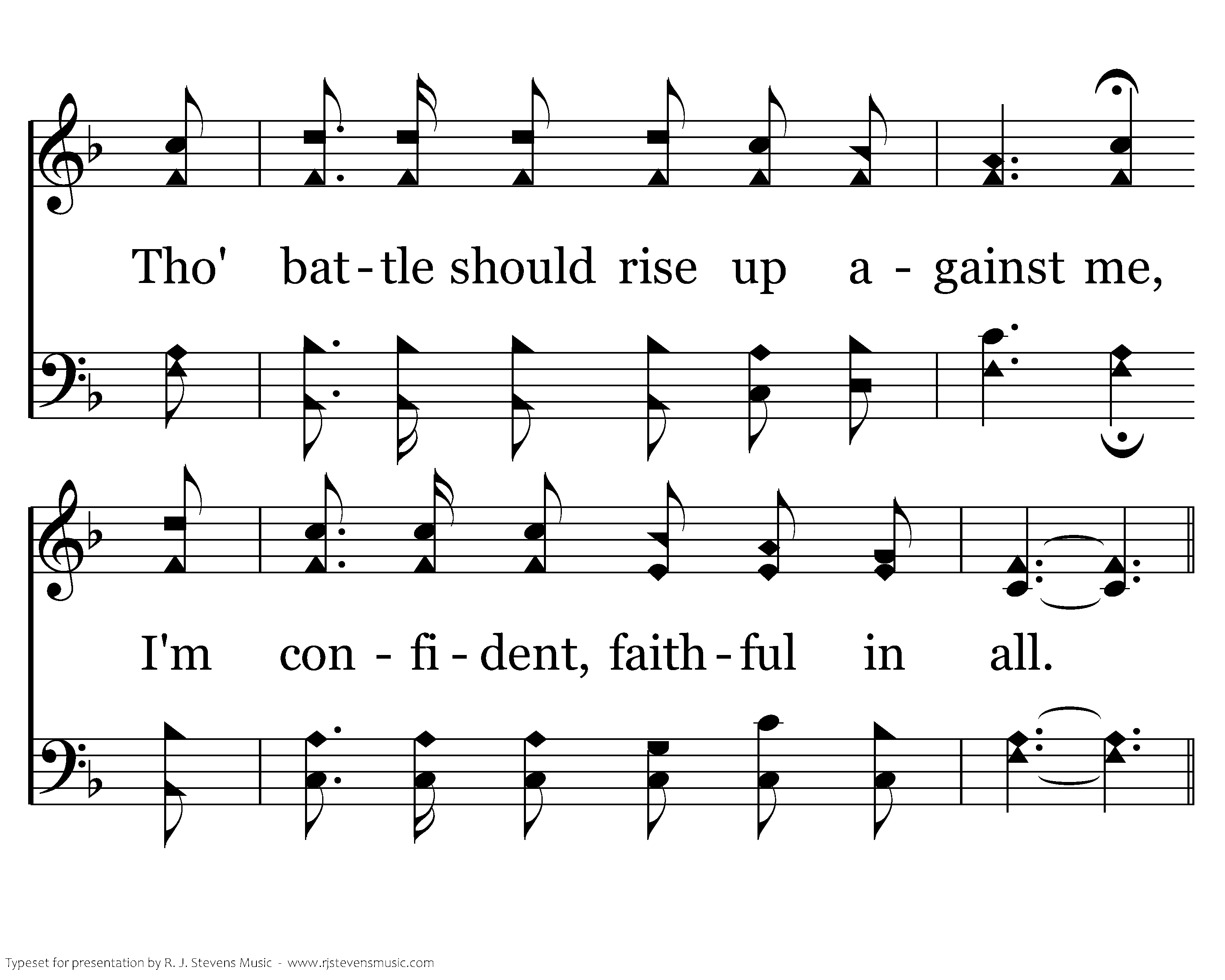 The wicked cannot come against me. They rise up, then stumble and fall. Tho' battle should rise up against me, I'm confident, faithful in all.