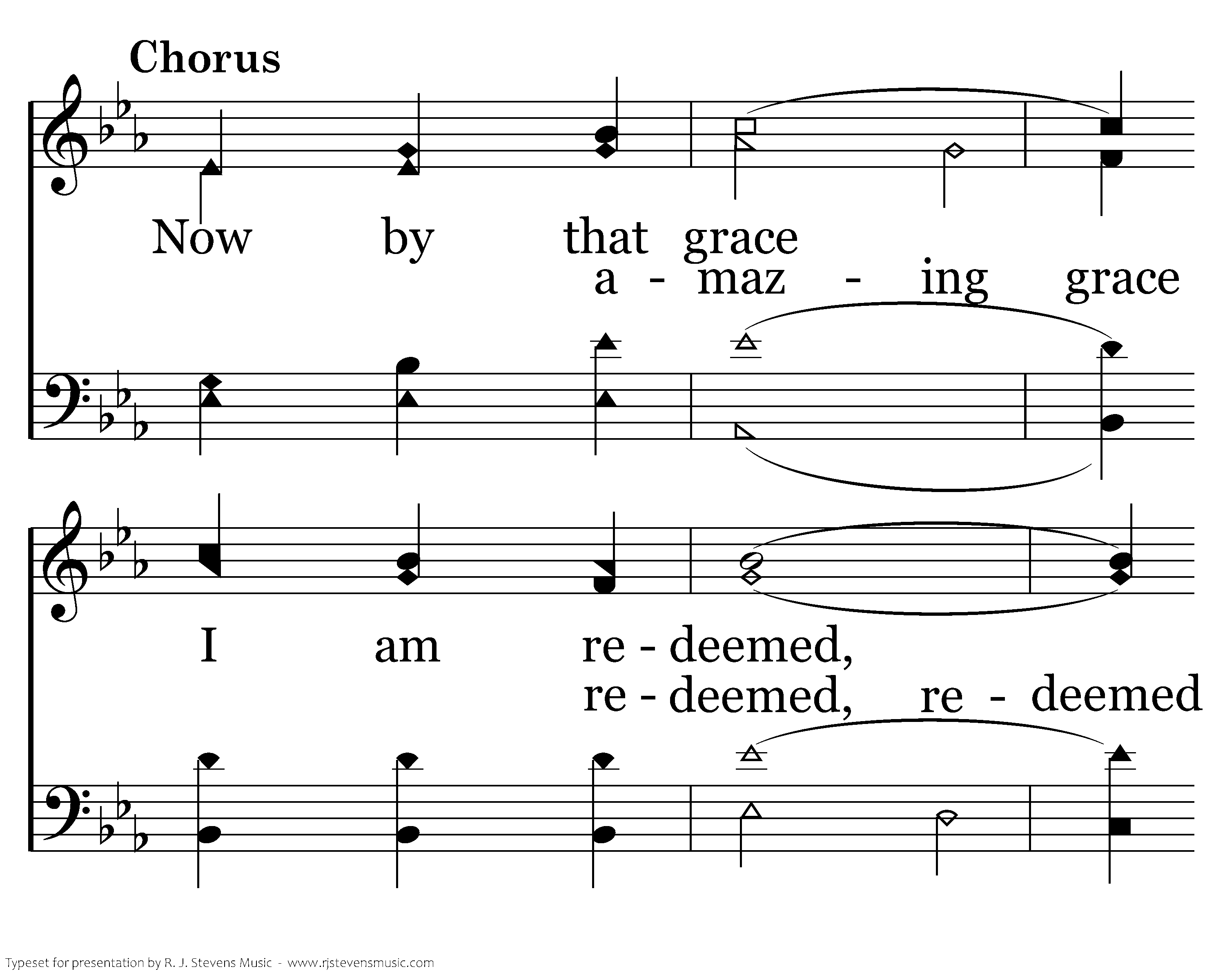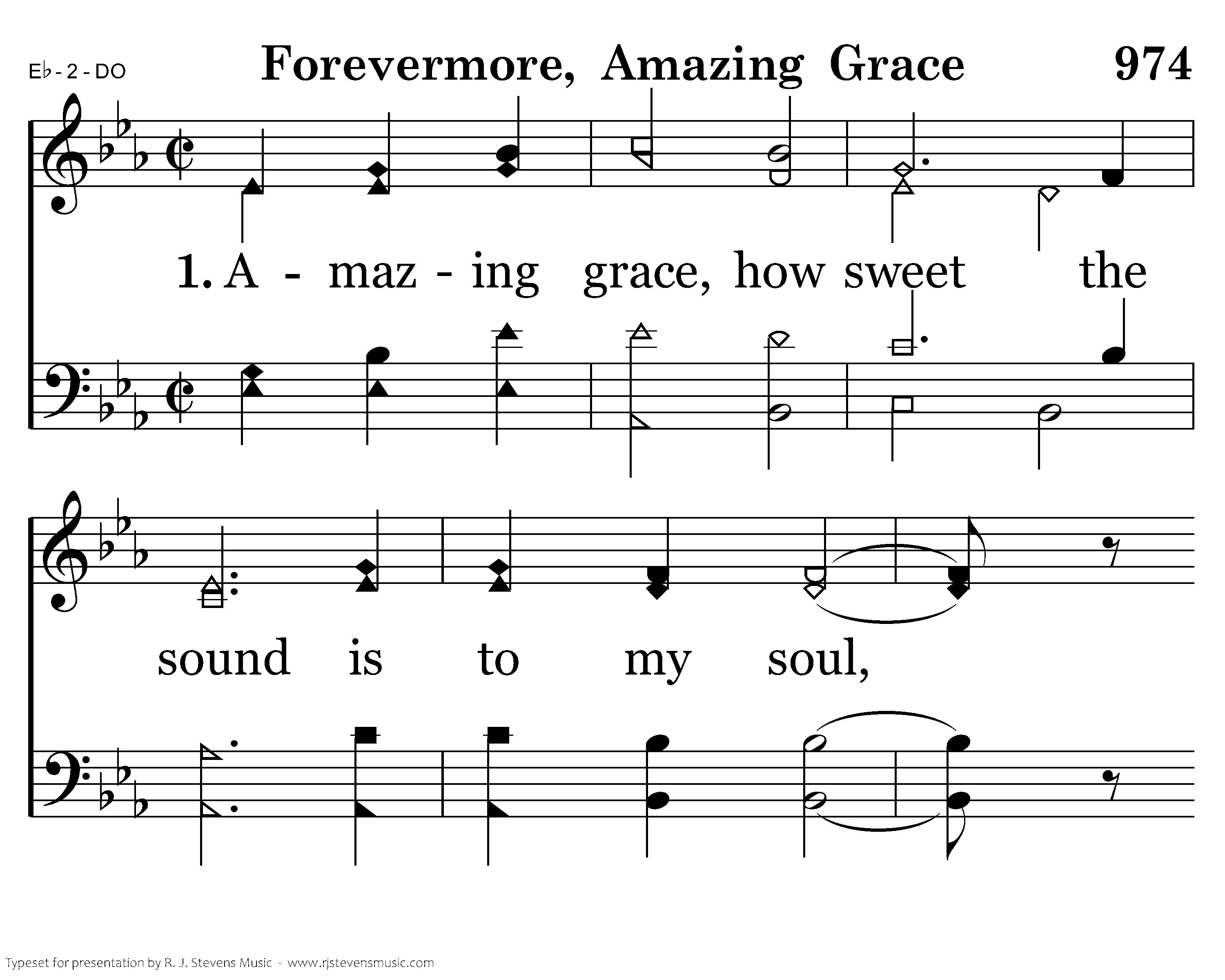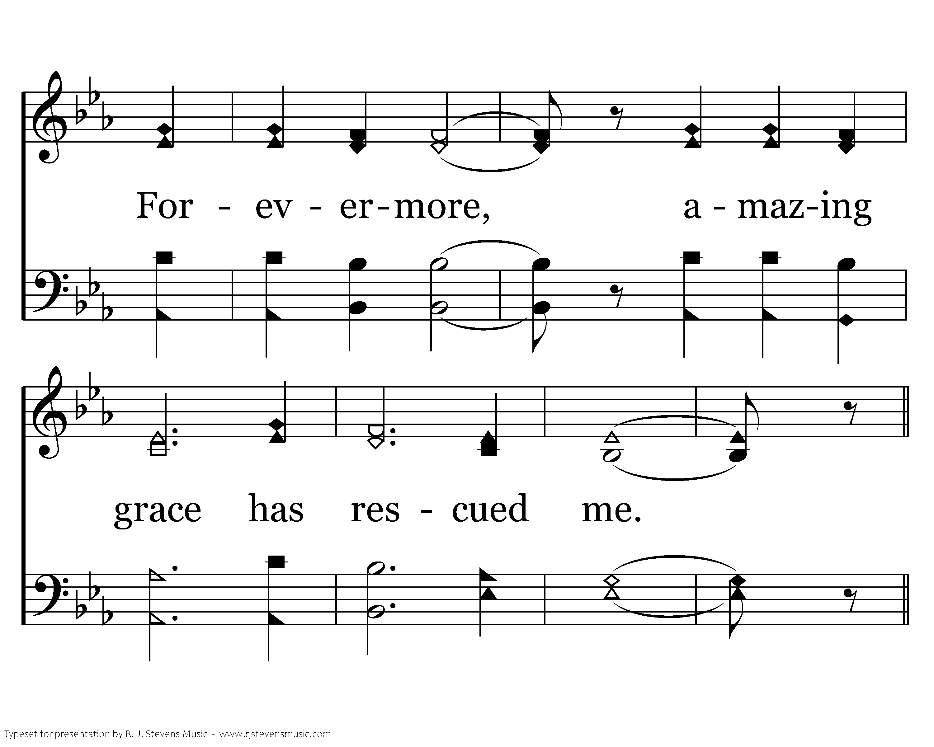 Amazing grace, how sweet the sound is to my soul, That I should be from sin set free. Once I was lost but now I'm found. Forevermore, amazing grace has rescued me. Now by that grace I am redeemed, Once I was blind But now I see. Ten thousand years, and then forevermore, Amazing grace shall be my plea.