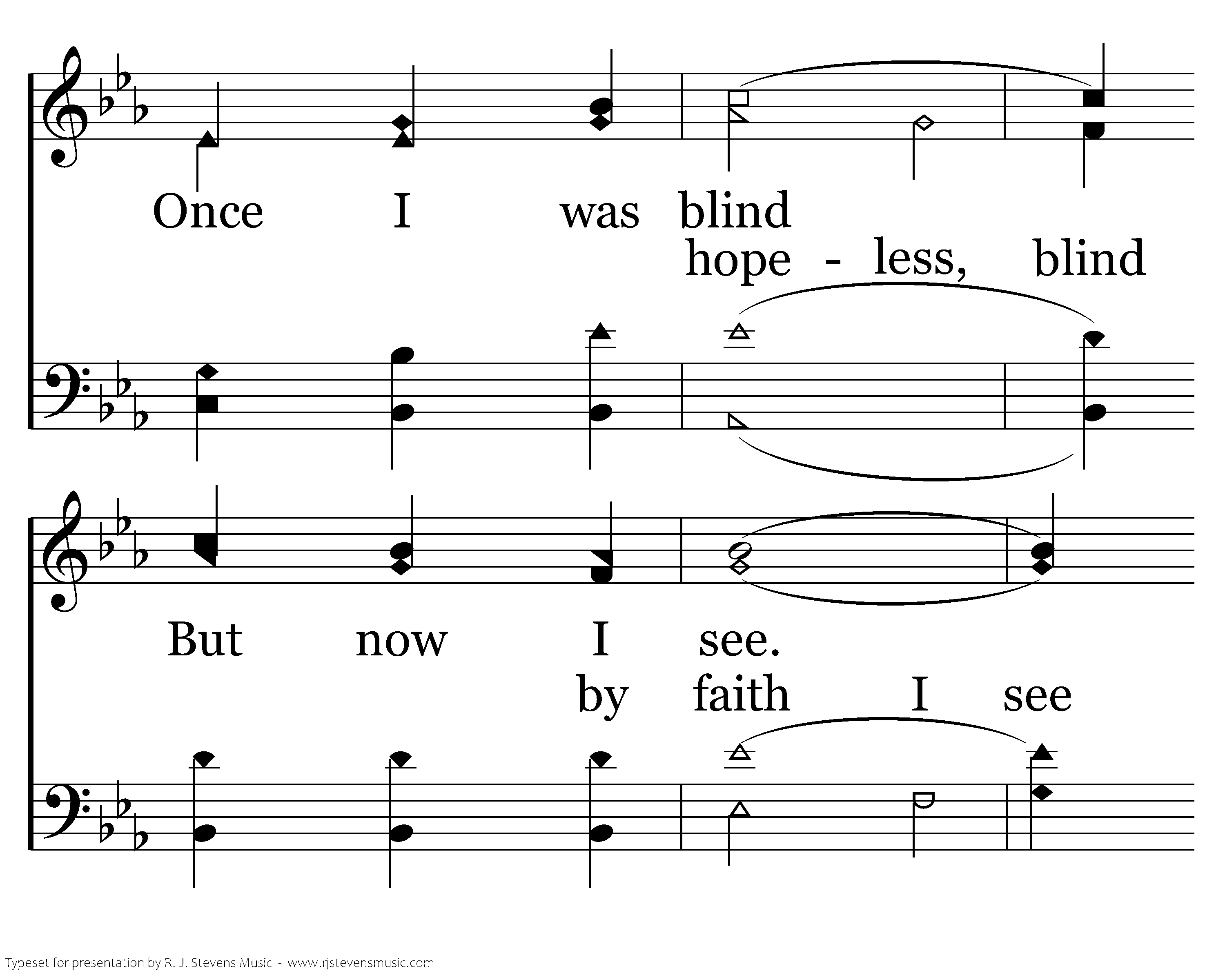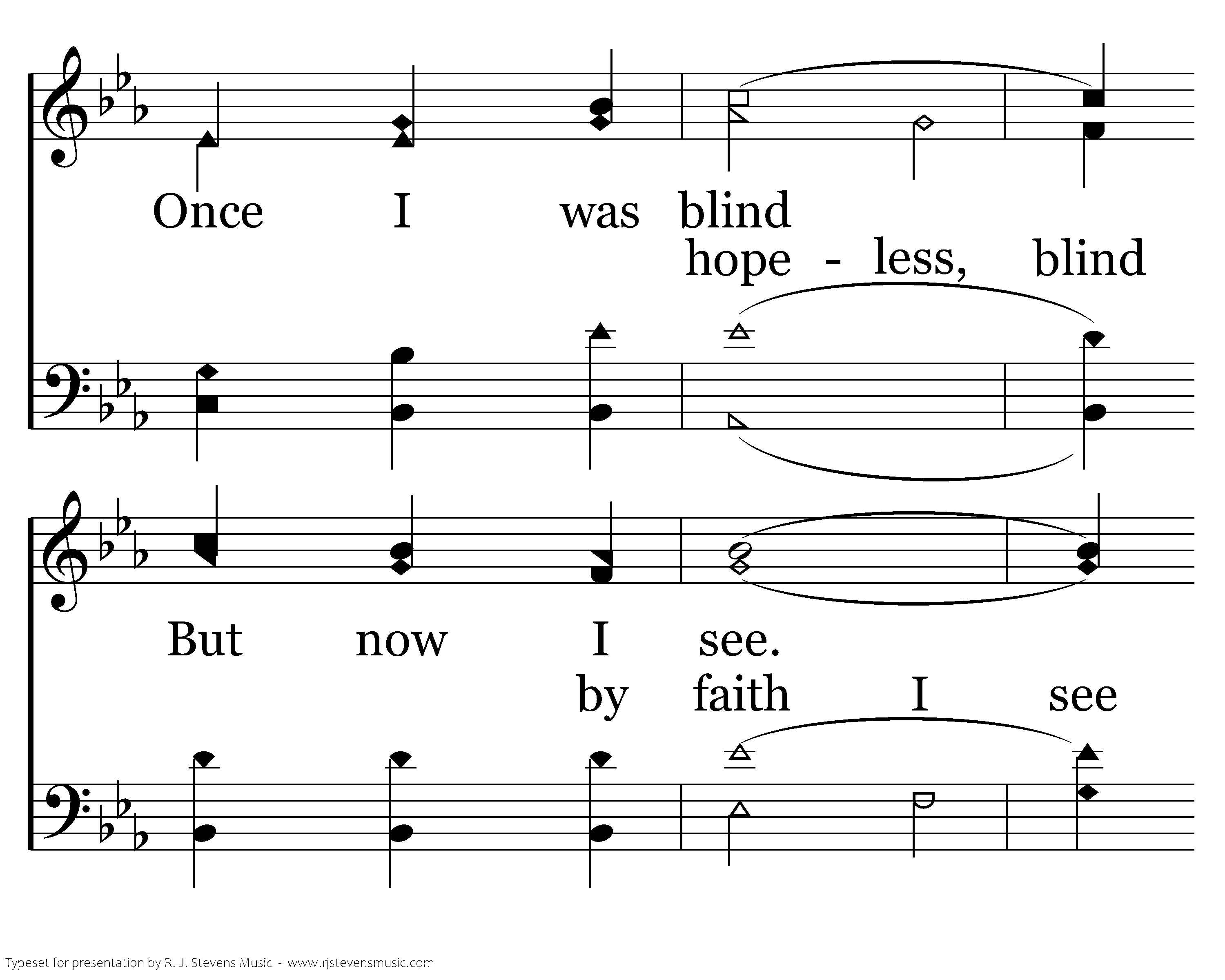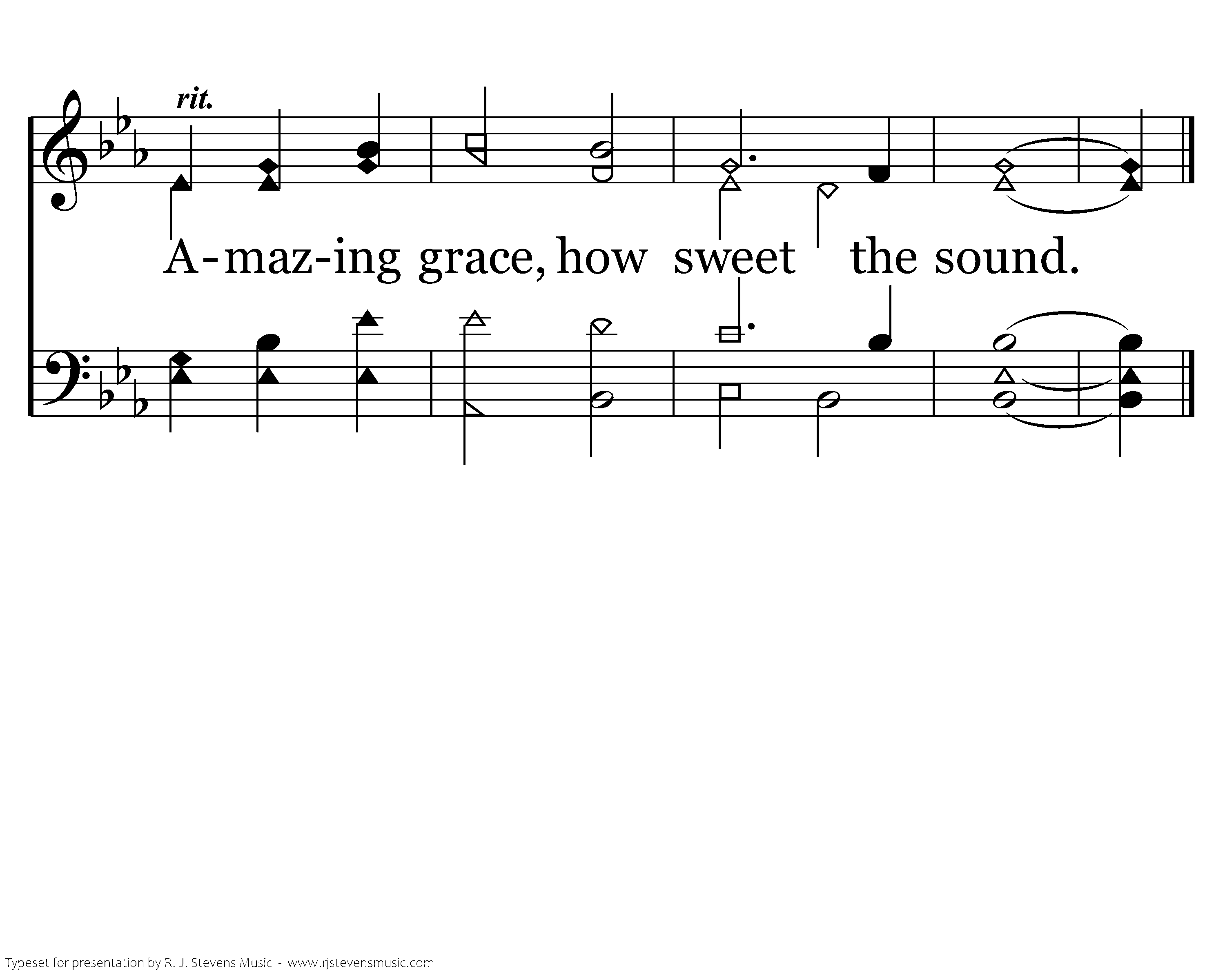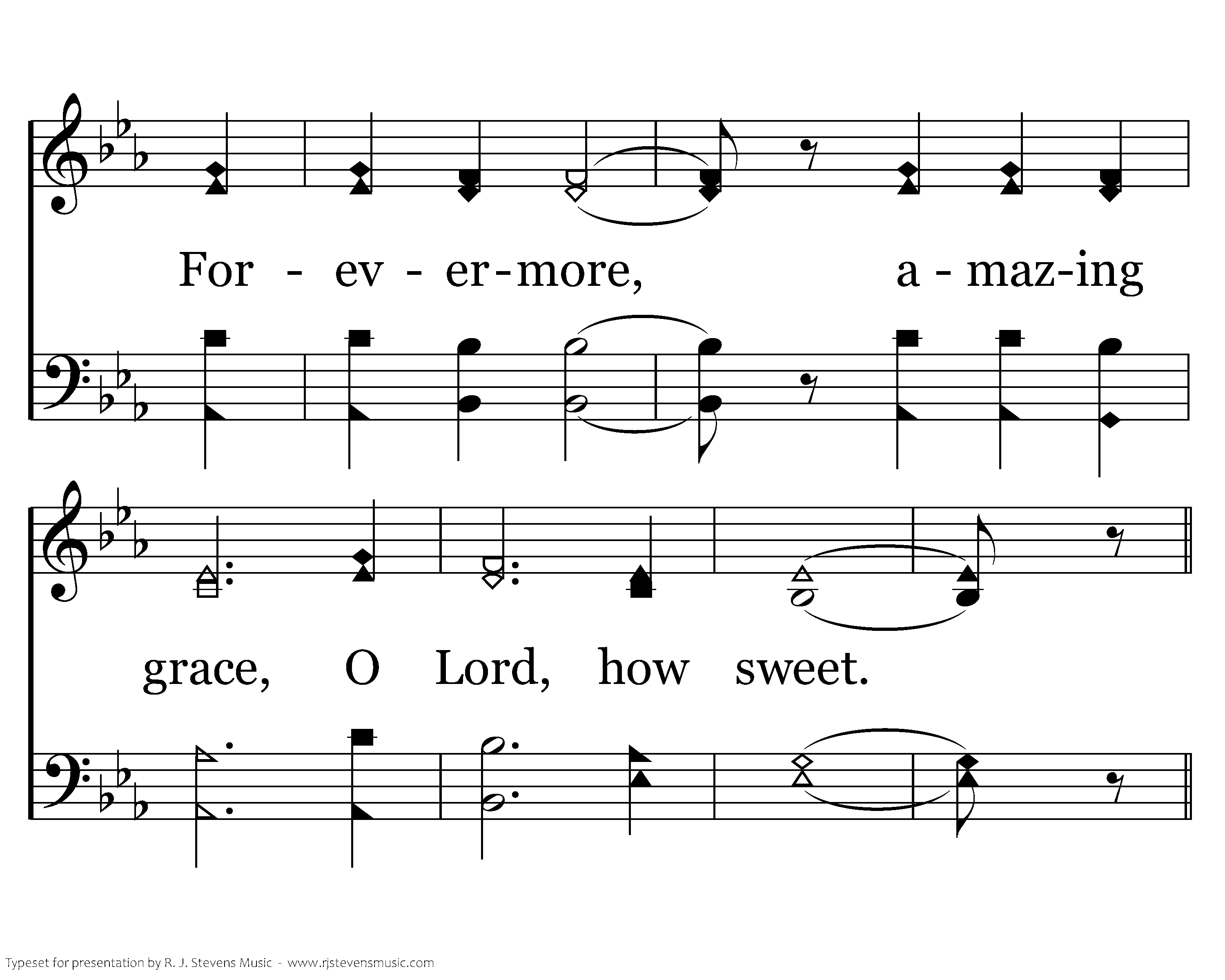 Amazing grace, how sweet the sound is to my soul, That I should be from sin set free. Once I was lost but now I'm found. Forevermore, amazing grace has rescued me. Now by that grace I am redeemed, Once I was blind But now I see. Ten thousand years, and then forevermore, Amazing grace shall be my plea.
