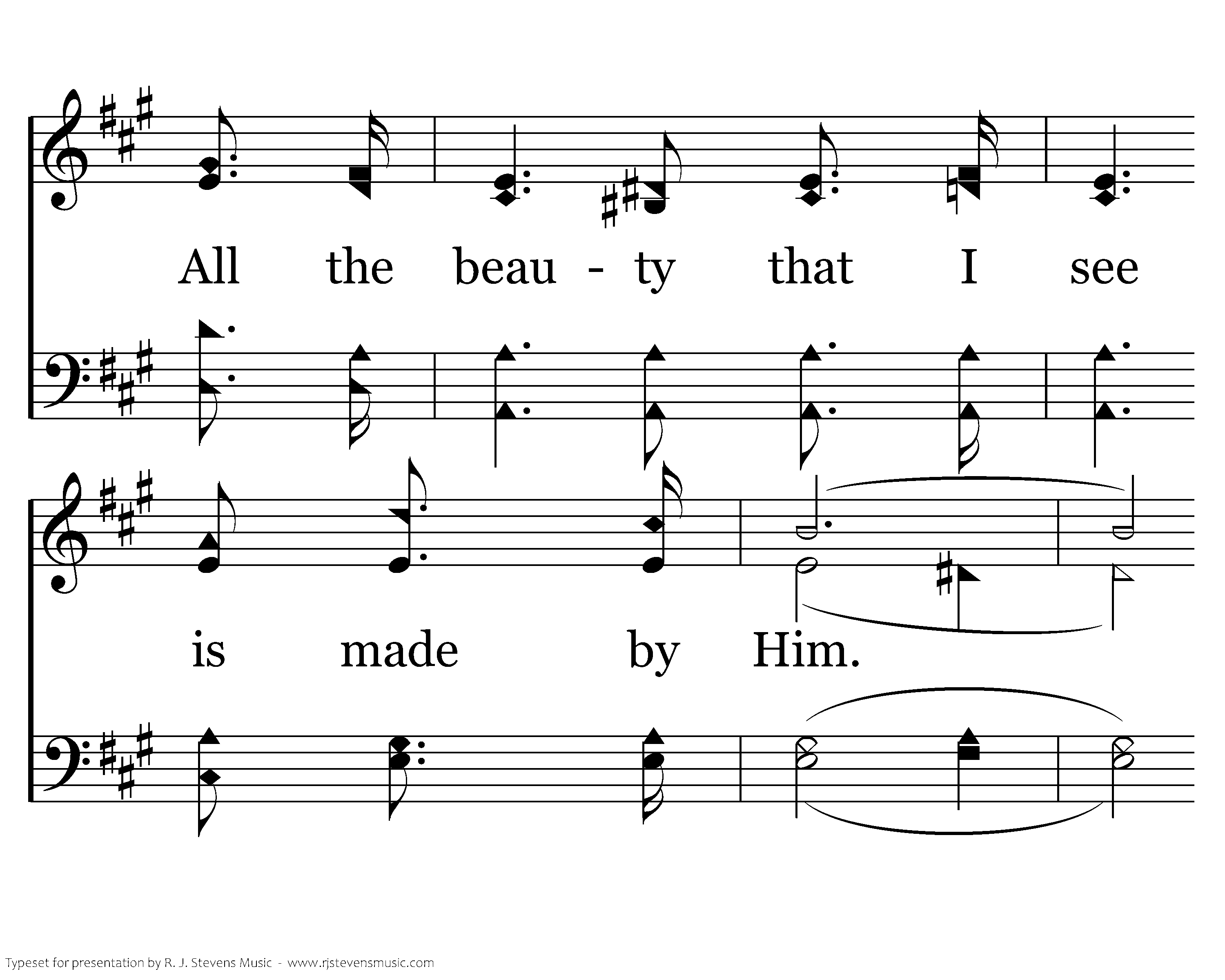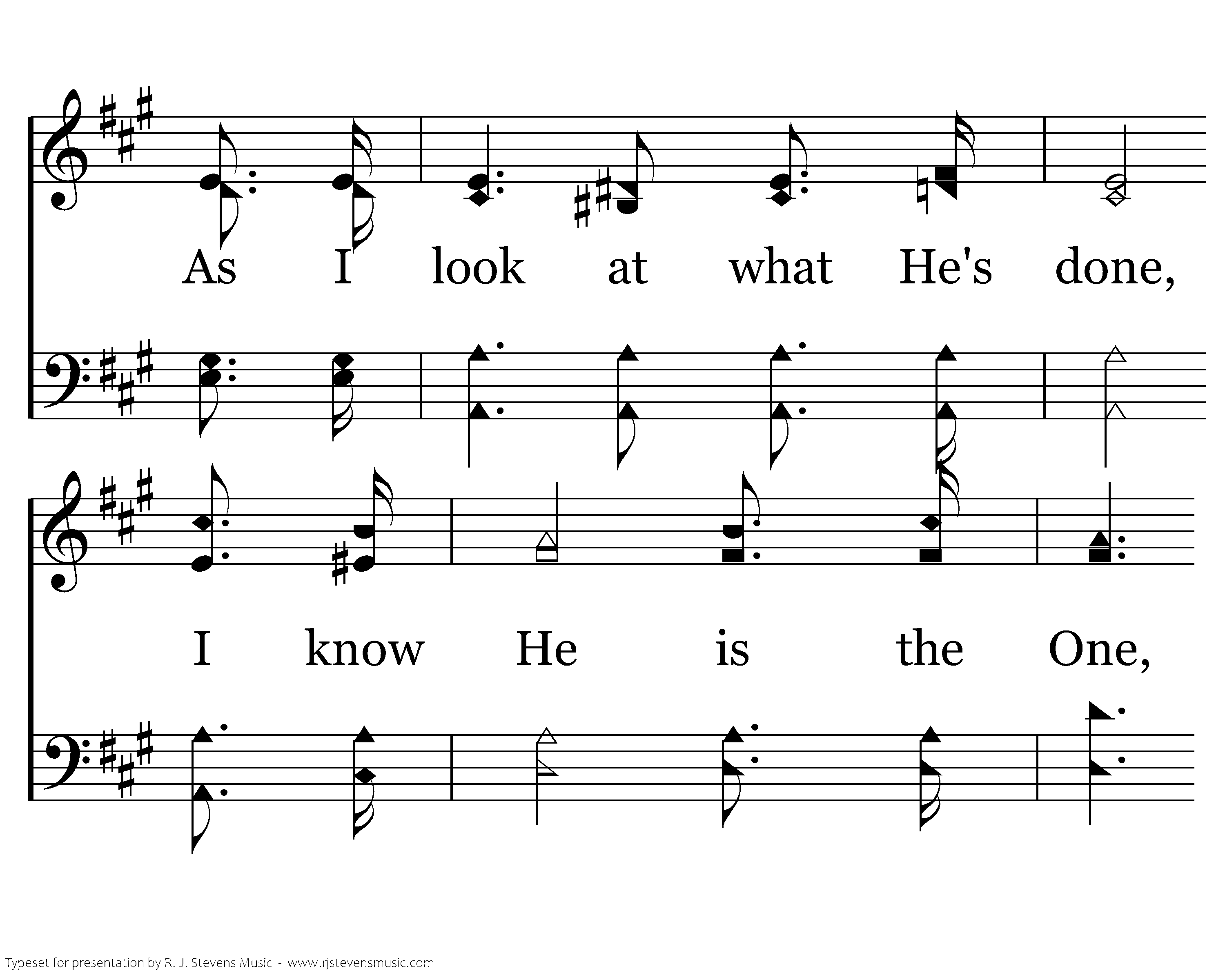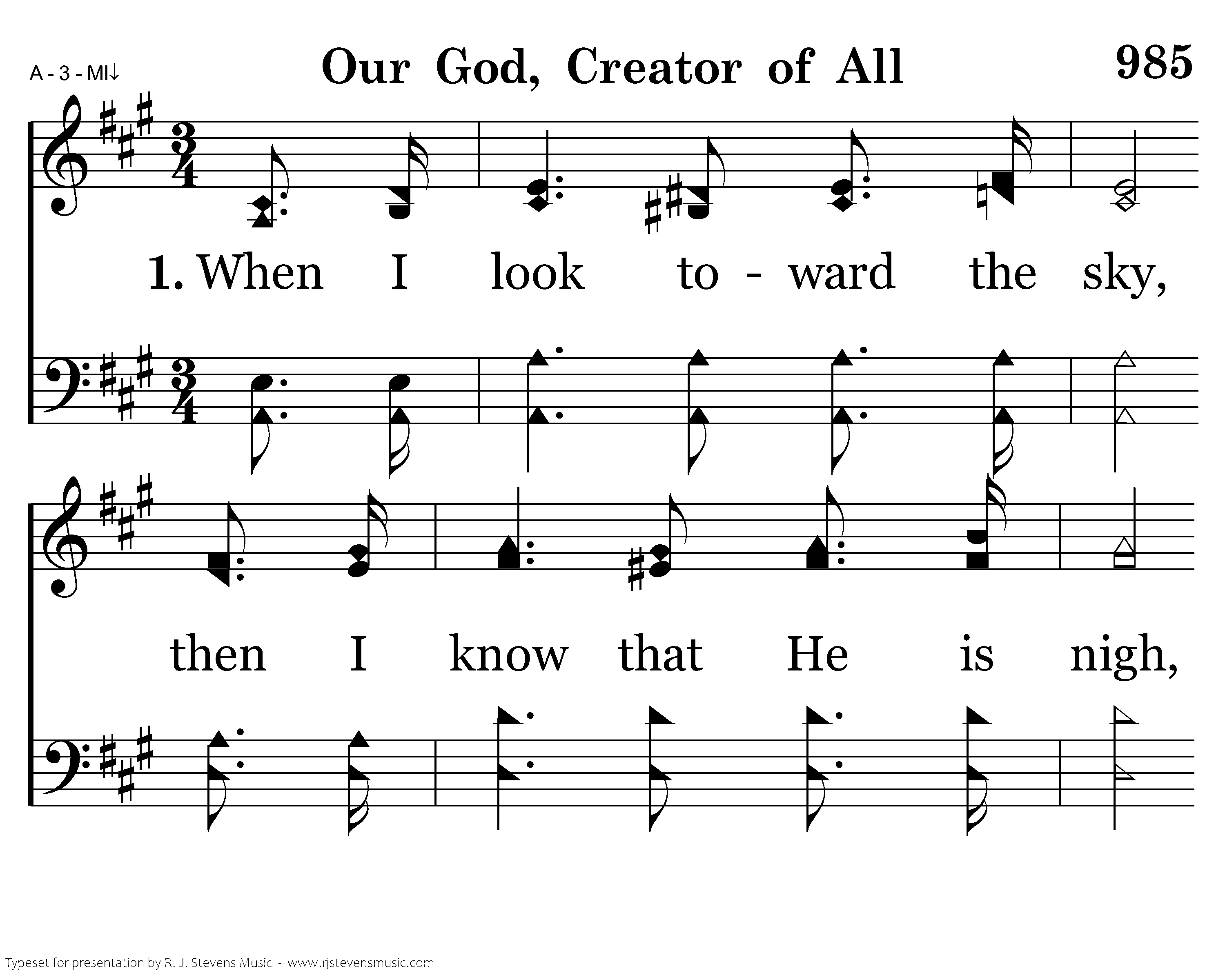 When I look toward the sky, then I know that He is nigh, All the beauty that I see is made by Him. As I look at what He's done, I know He is the One, the only God, our Father above.