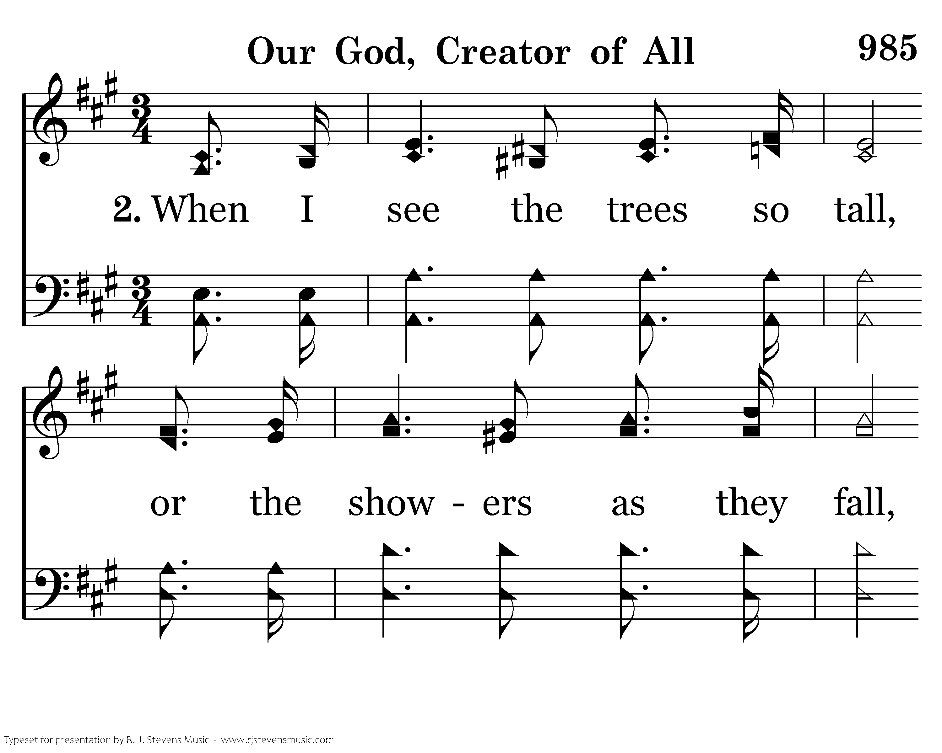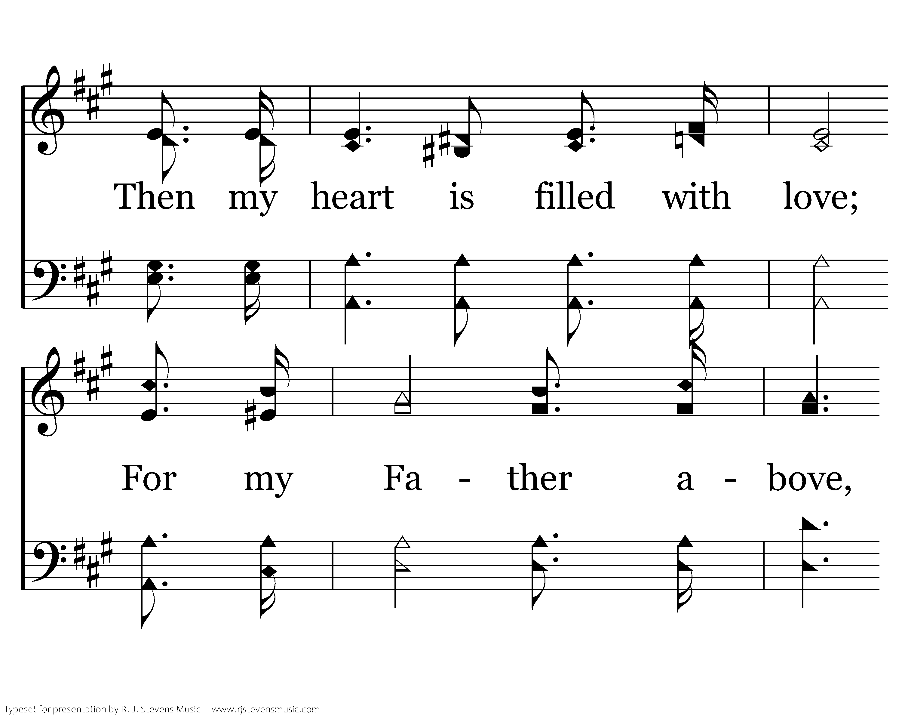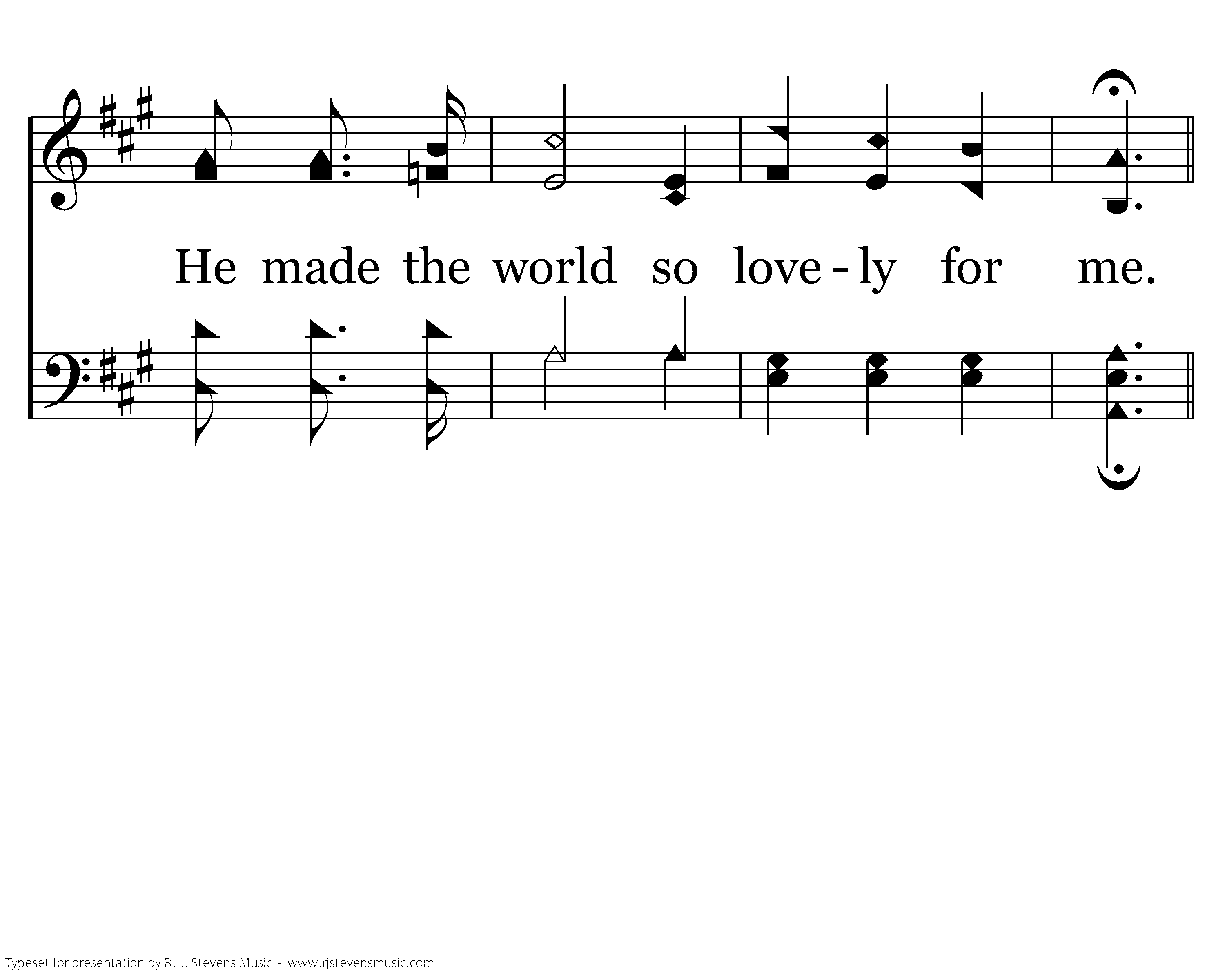 When I see the trees so tall, or the showers as they fall, As I watch the sunset hide behind the hill, Then my heart is filled with love; For my Father above, He made the world so lovely for me.