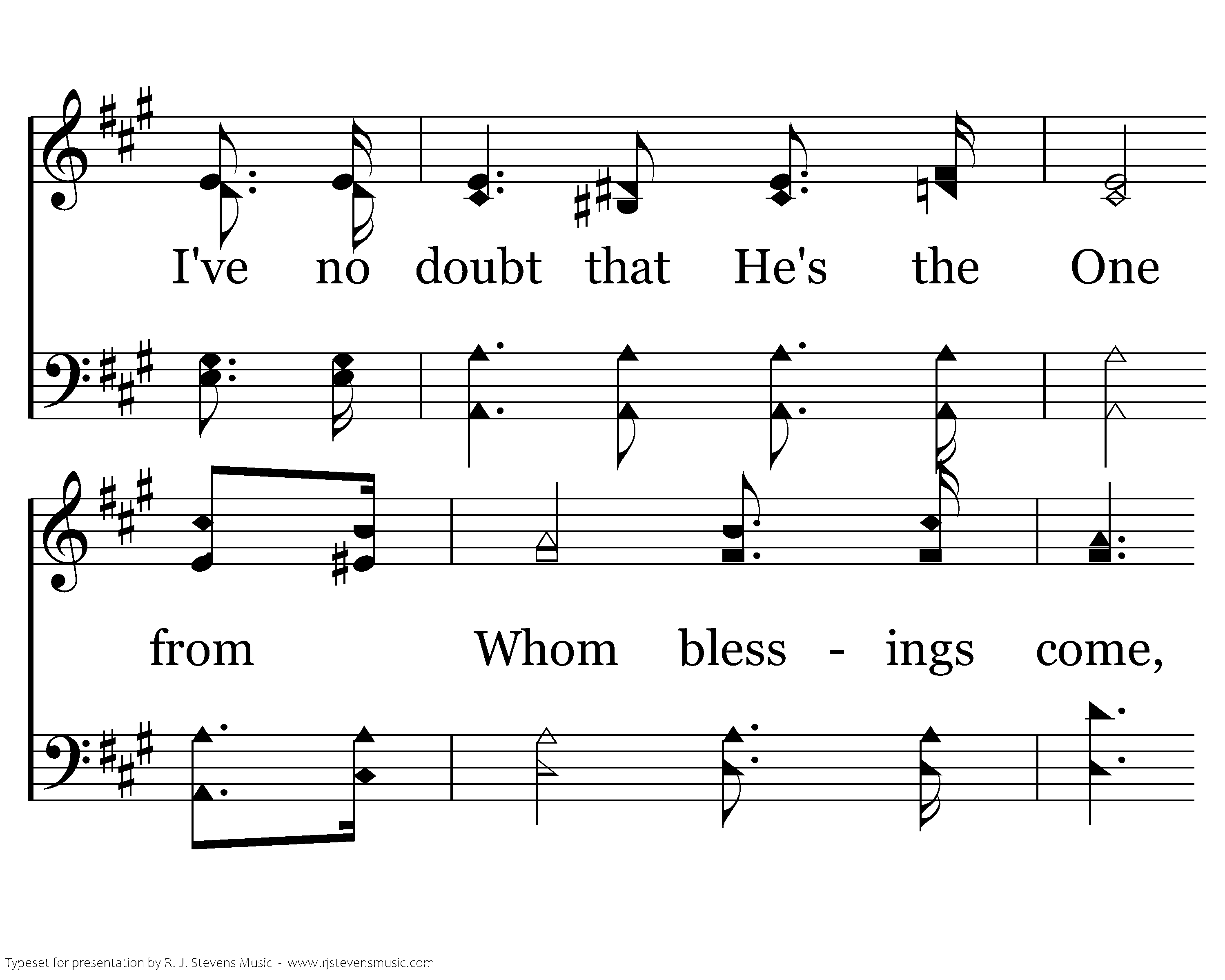 As I watch a bird in flight, or see twinkling stars at night, When I feel a gentle breeze upon my face, I've no doubt that He's the One from Whom blessings come, Almighty God, our Father and King.