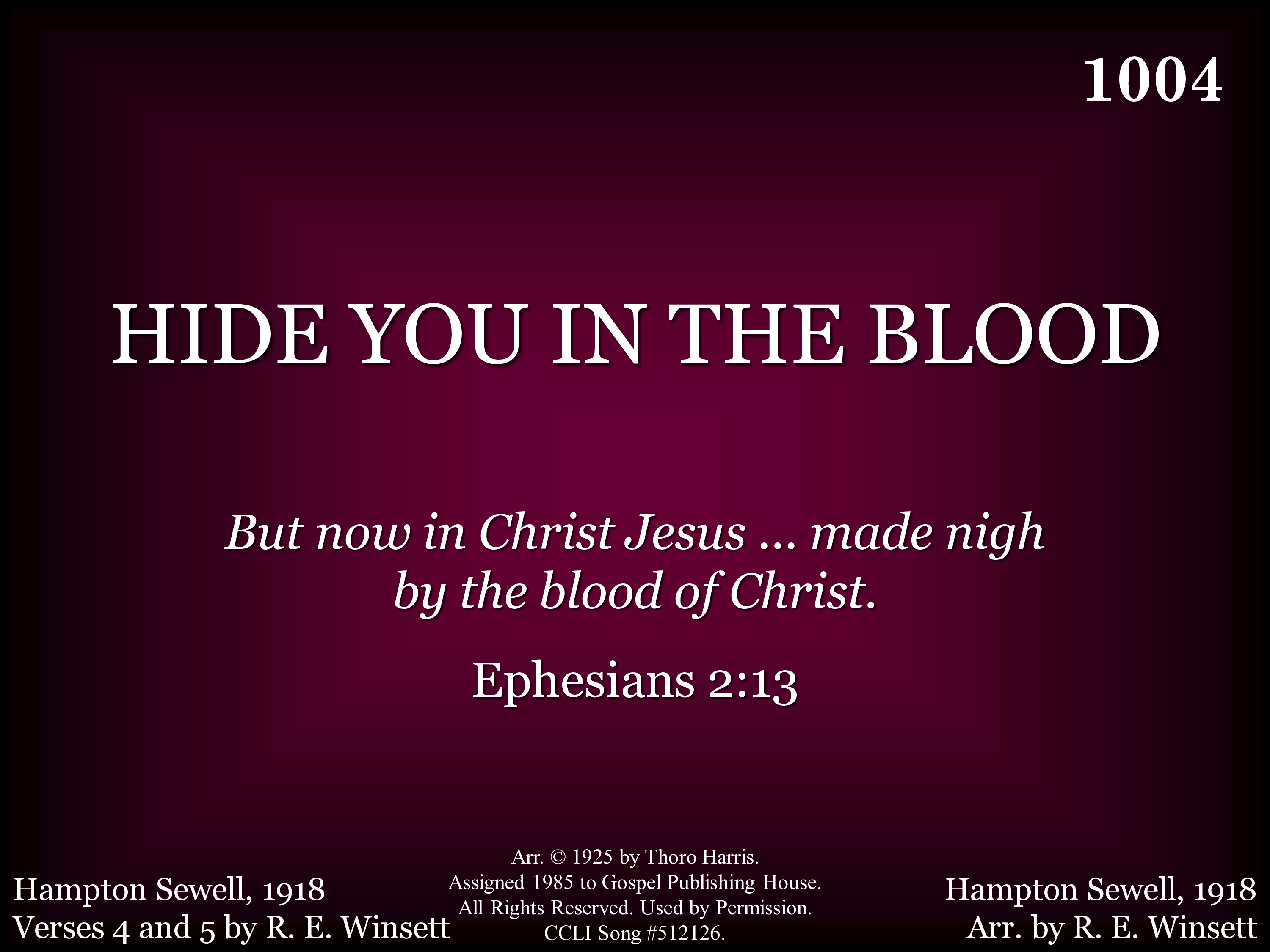 O hide you in the blood, For the storms are raging high, O hide you in the blood, Till the dangers pass you by.