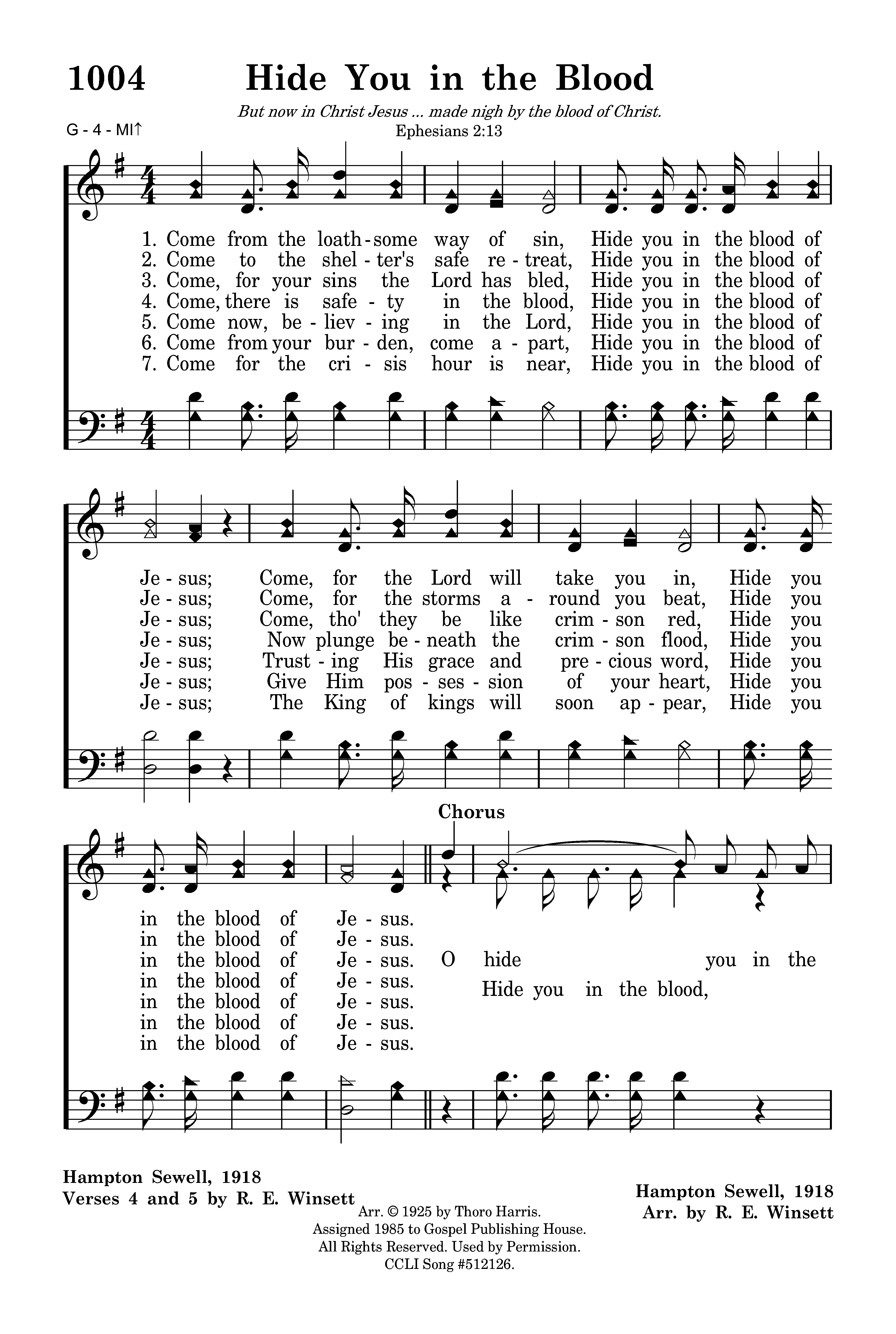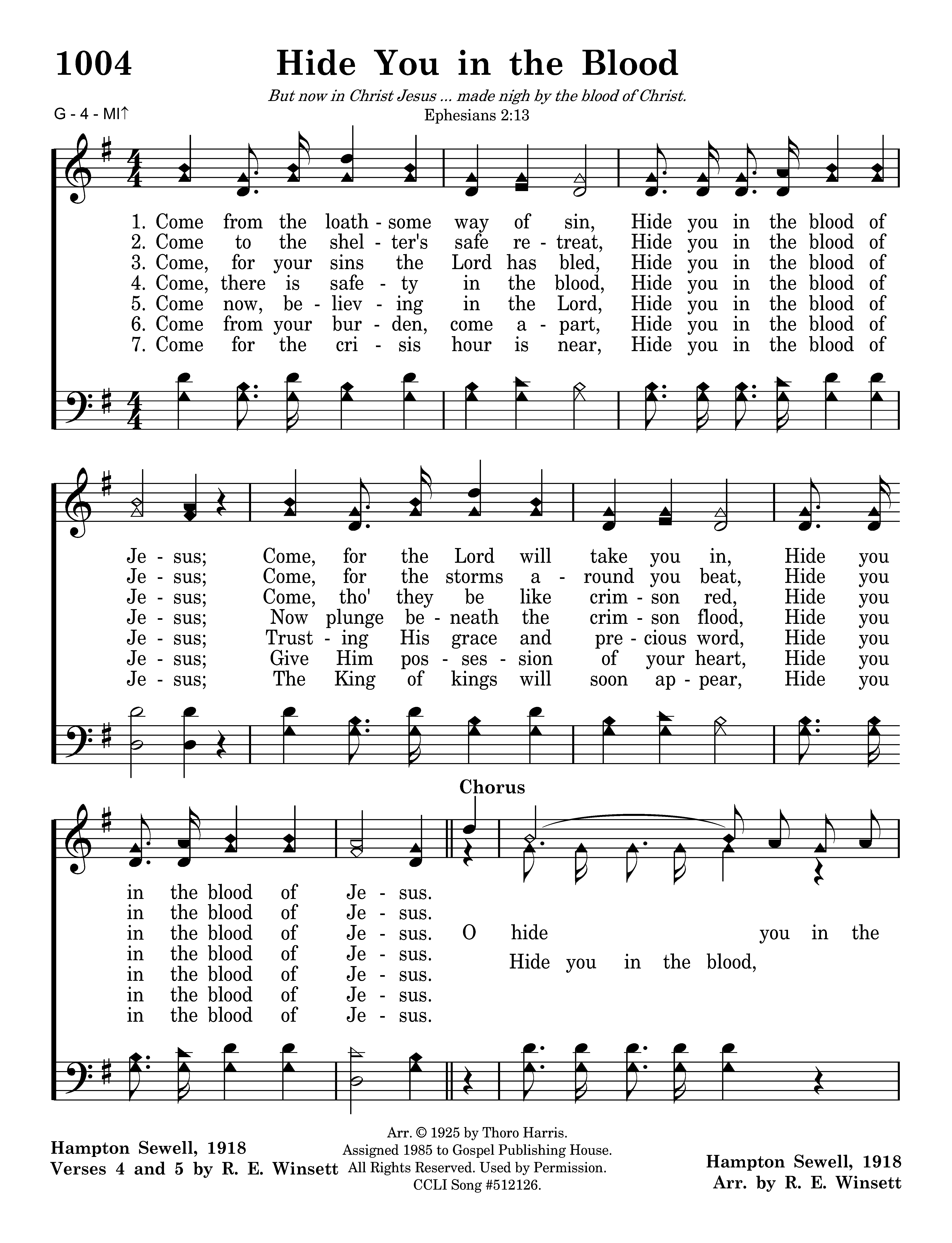 - Arr. © 1925 by Thoro Harris. Assigned 1985 to Gospel Publishing House. Vvs. 4-5 by R. E. Winsett. (Admin. by R. E. Winsett Sacred Selections LLC.) All Rights Reserved. Used by Permission.