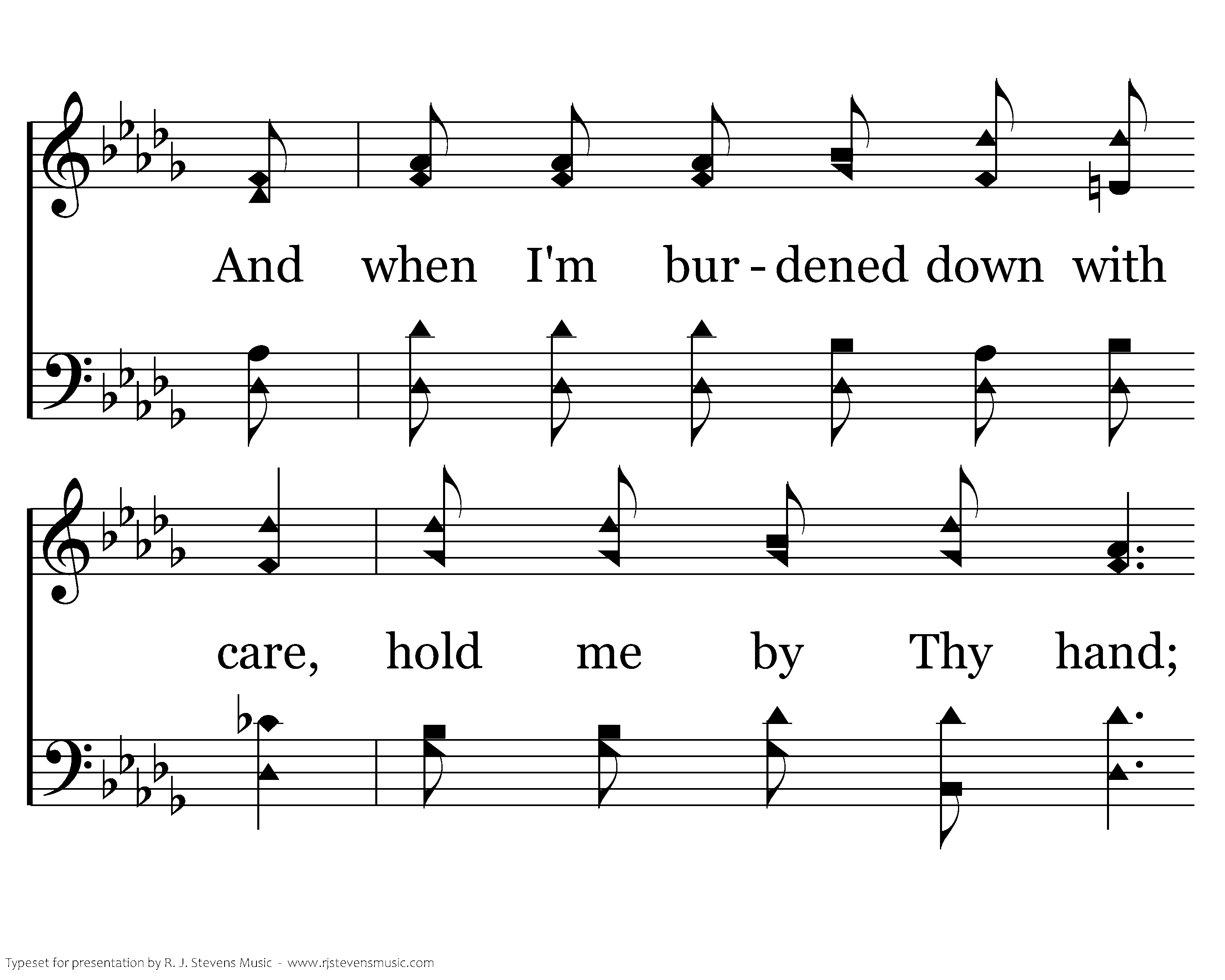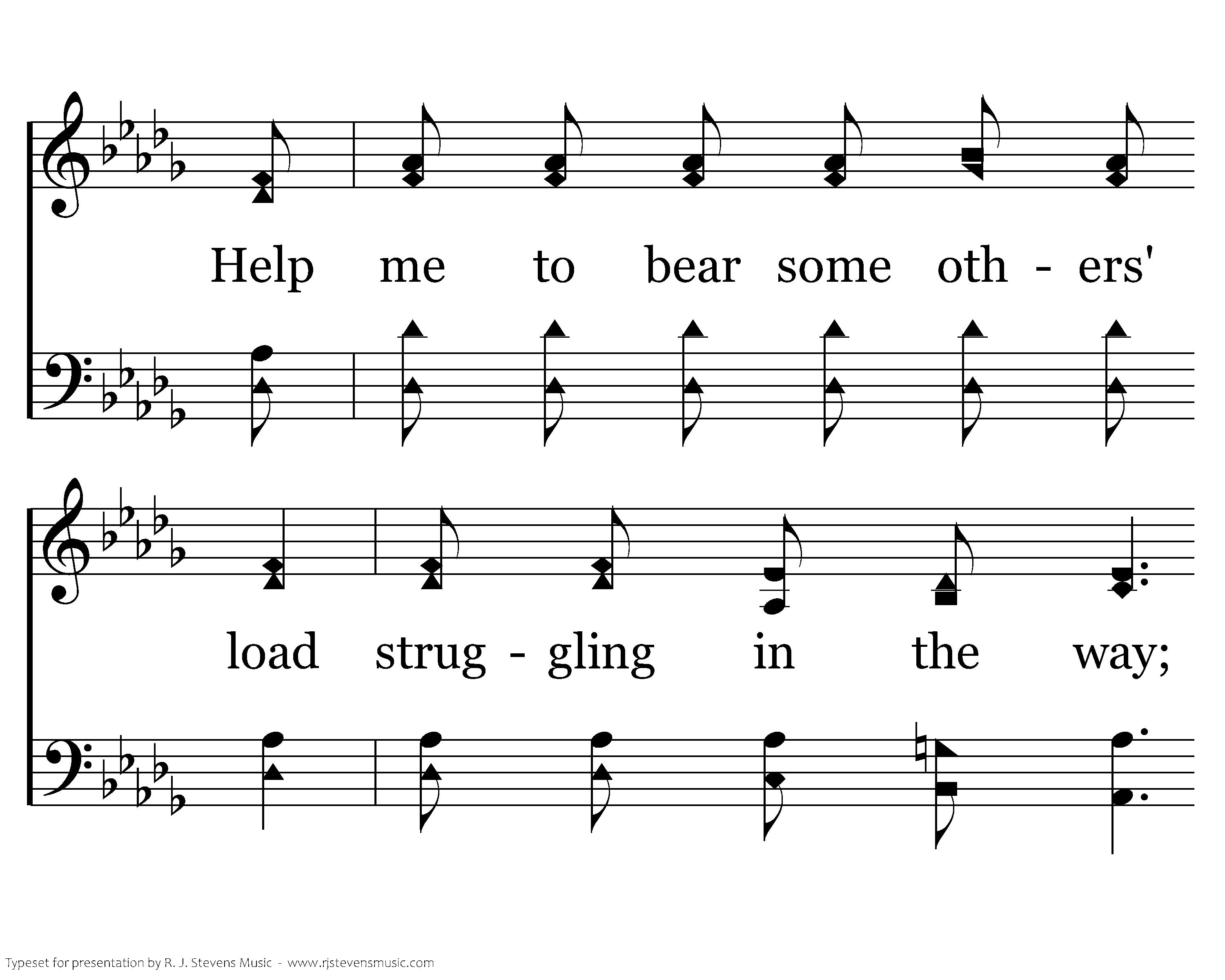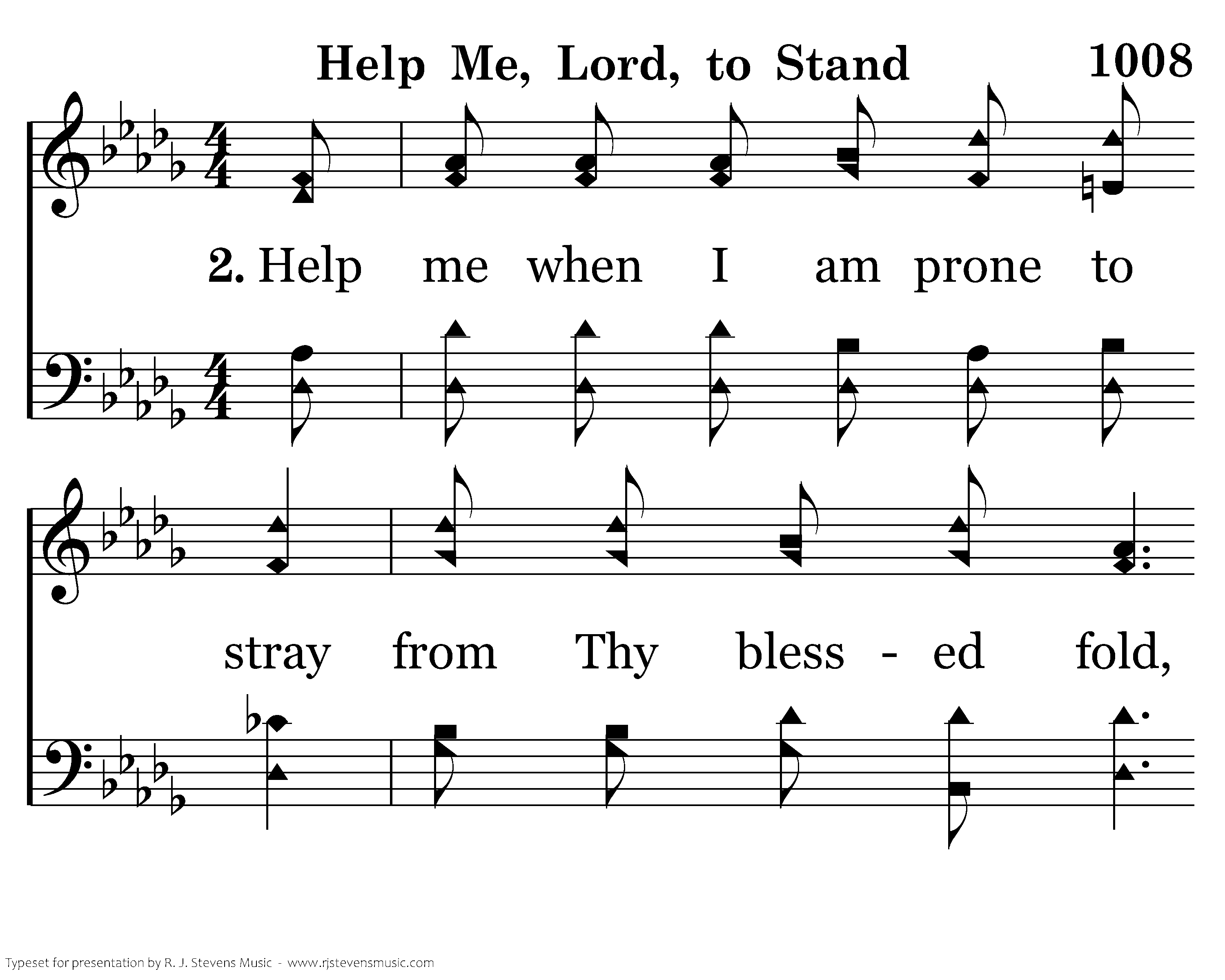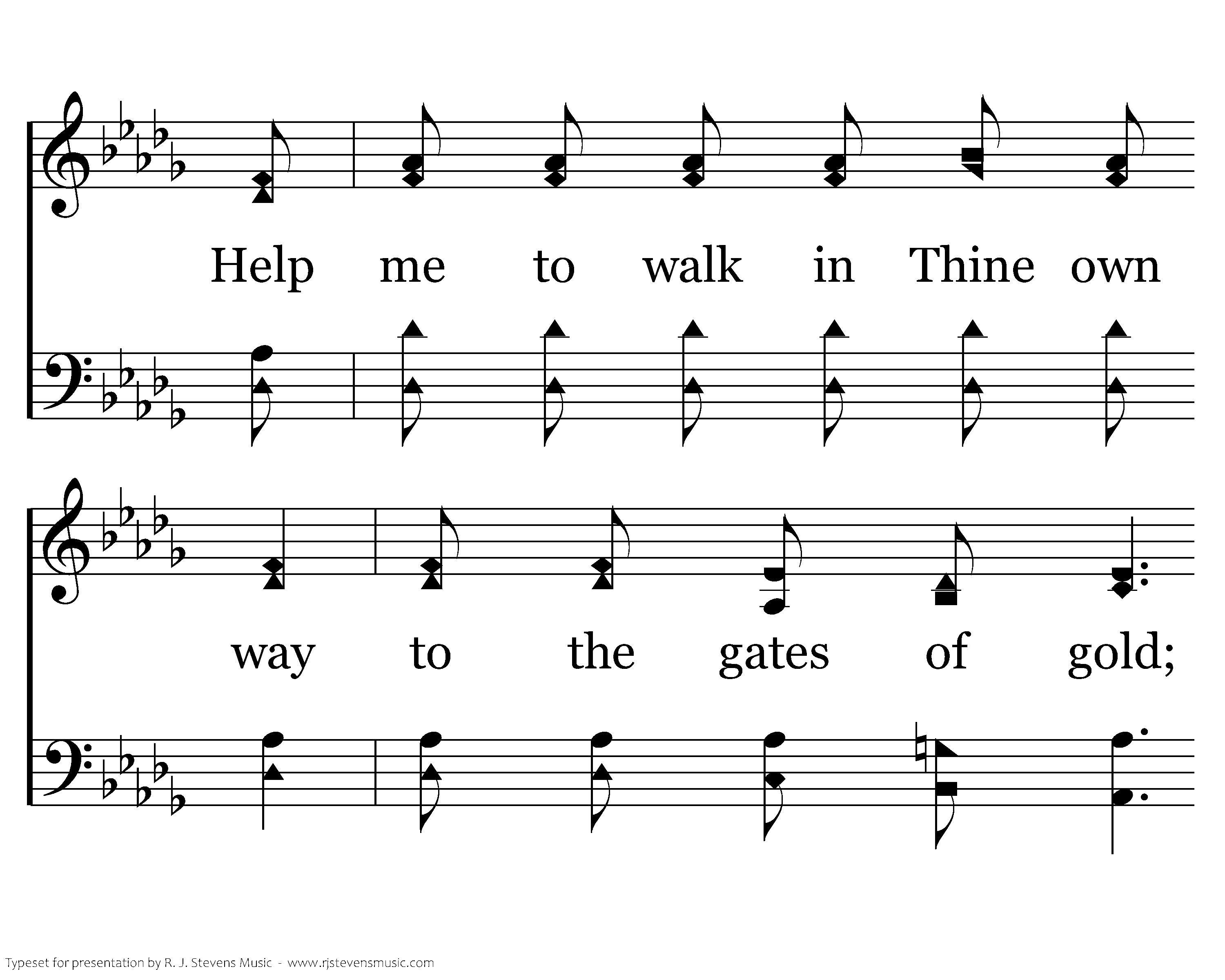 Help me when I am prone to stray from Thy blessed fold, Help me to walk in Thine own way to the gates of gold; And when I'm burdened down with care, hold me by Thy hand; And when my load is hard to bear, Help me, Lord, to stand.